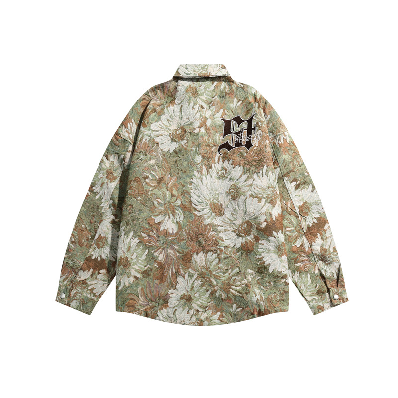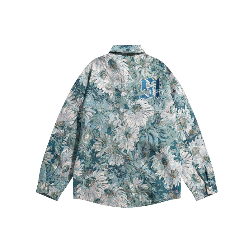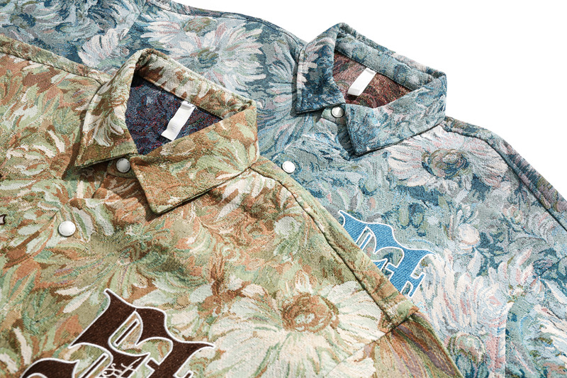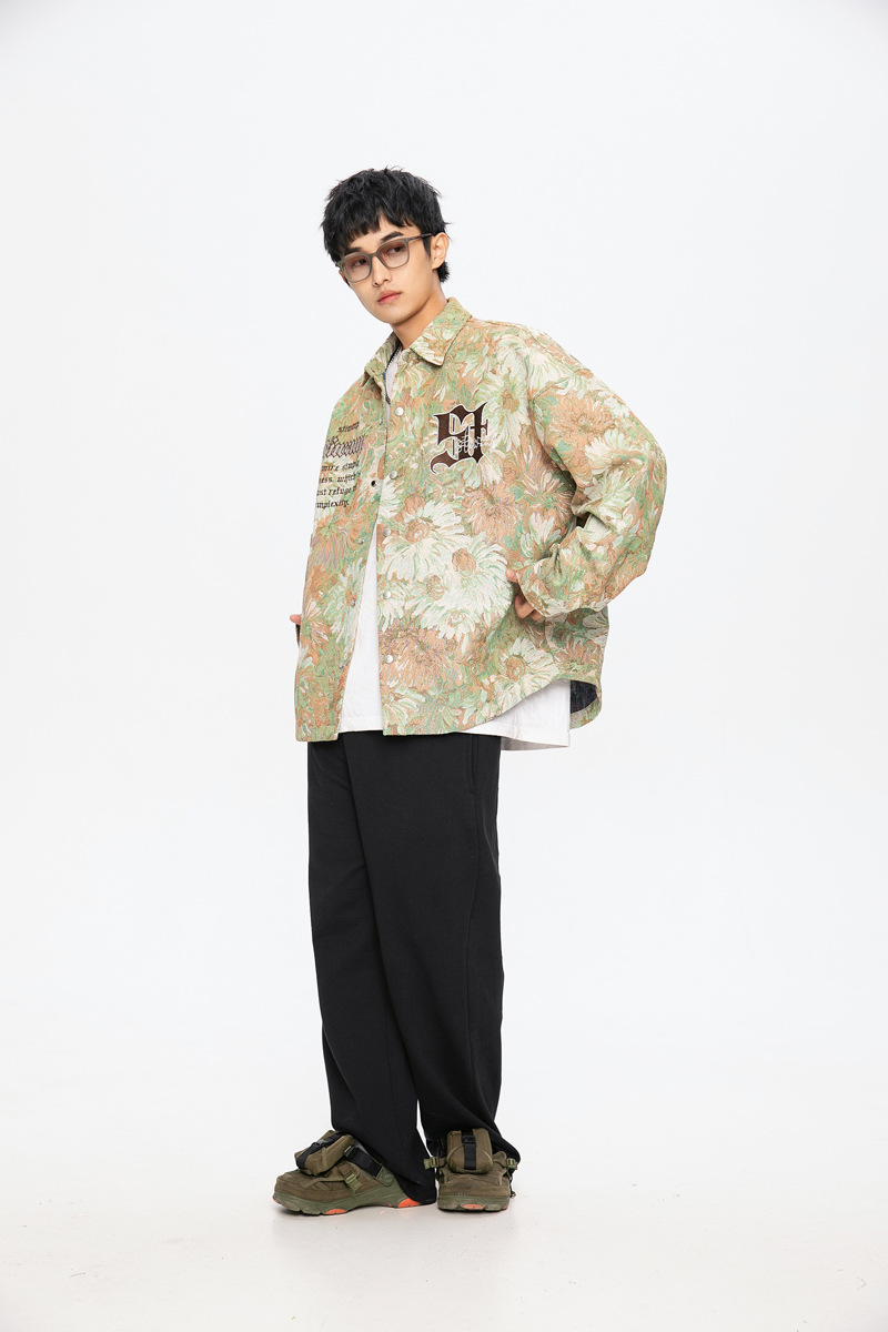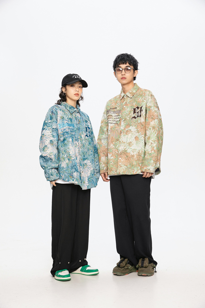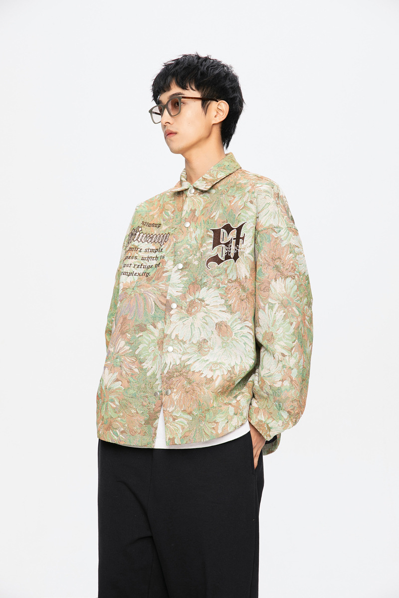 봄과 가을 전국 패션 디자인 센스 셔츠 남성 느슨한 편지 자수 미국 빈티지 유화 긴 소매 셔츠 여성용 코트