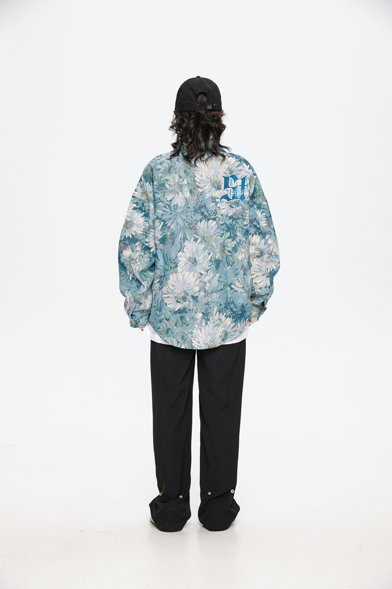 봄과 가을 전국 패션 디자인 센스 셔츠 남성 느슨한 편지 자수 미국 빈티지 유화 긴 소매 셔츠 여성용 코트스토어 가기