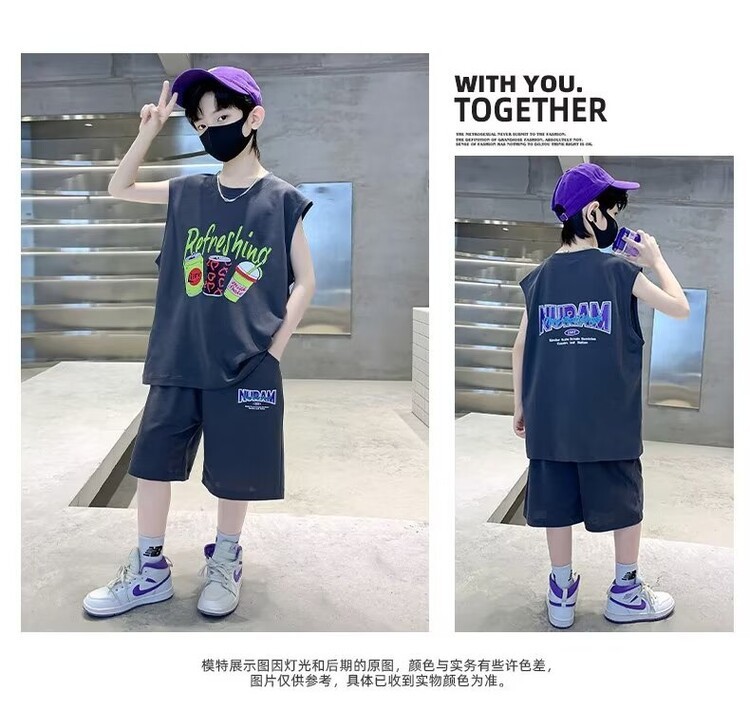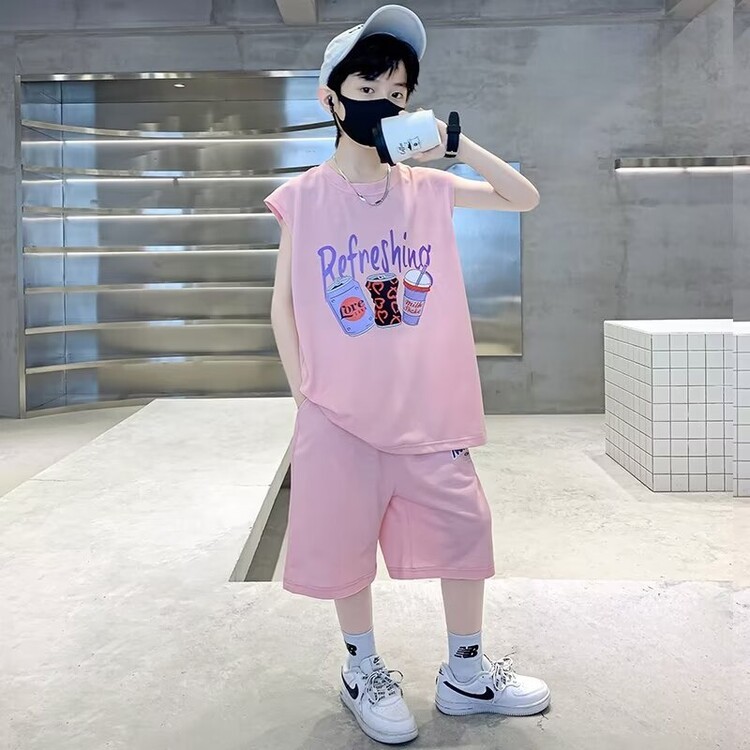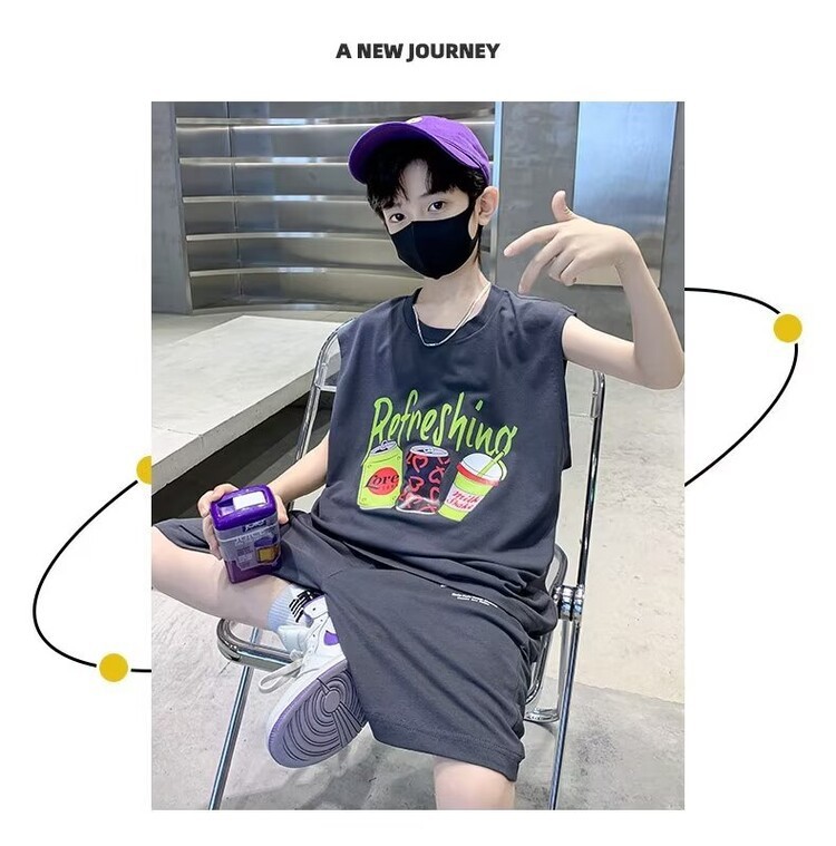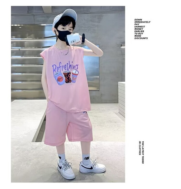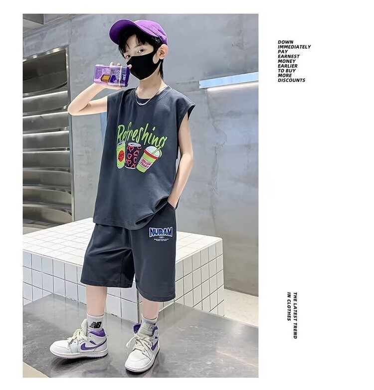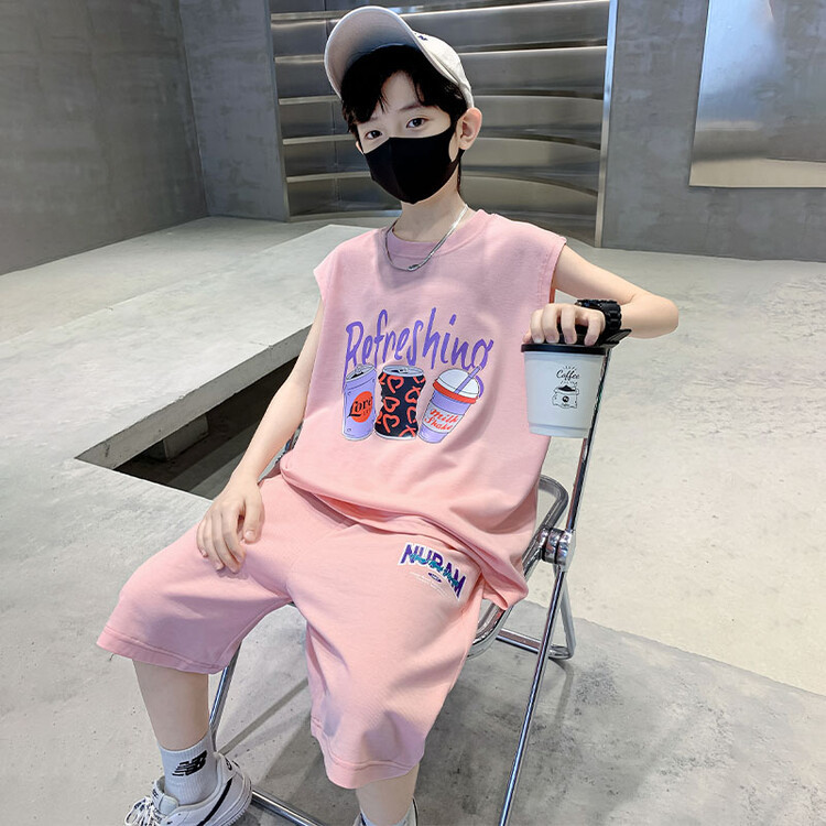 남자 여름 의류 세트 2024 새로운 어린이 여름 반팔 티셔츠 운동복 큰 어린이 여름 잘 생긴스토어 가기
