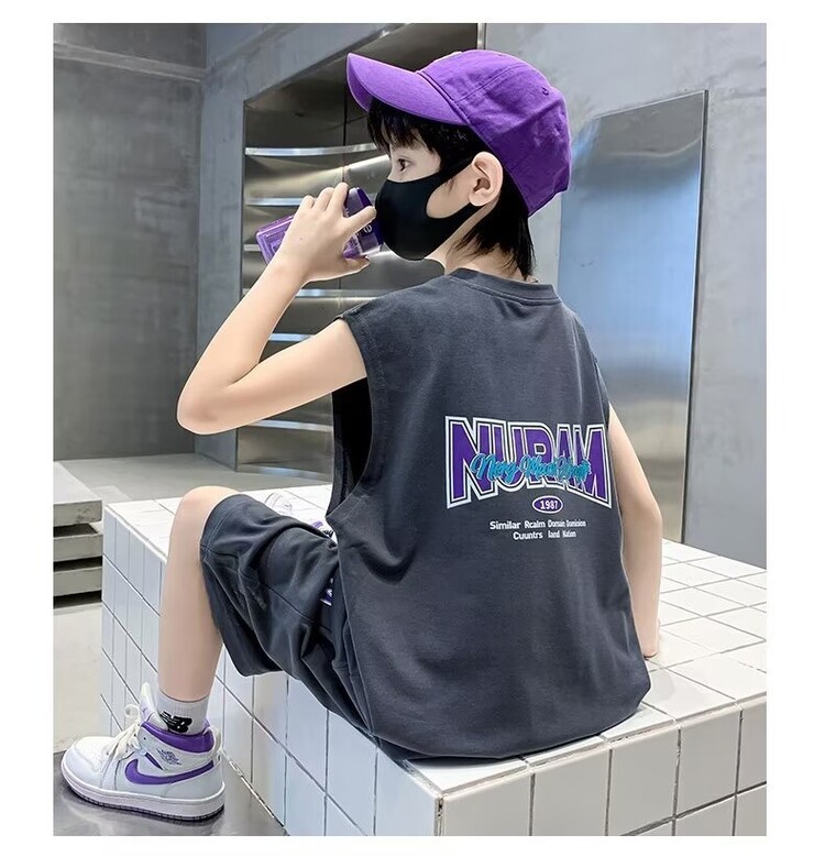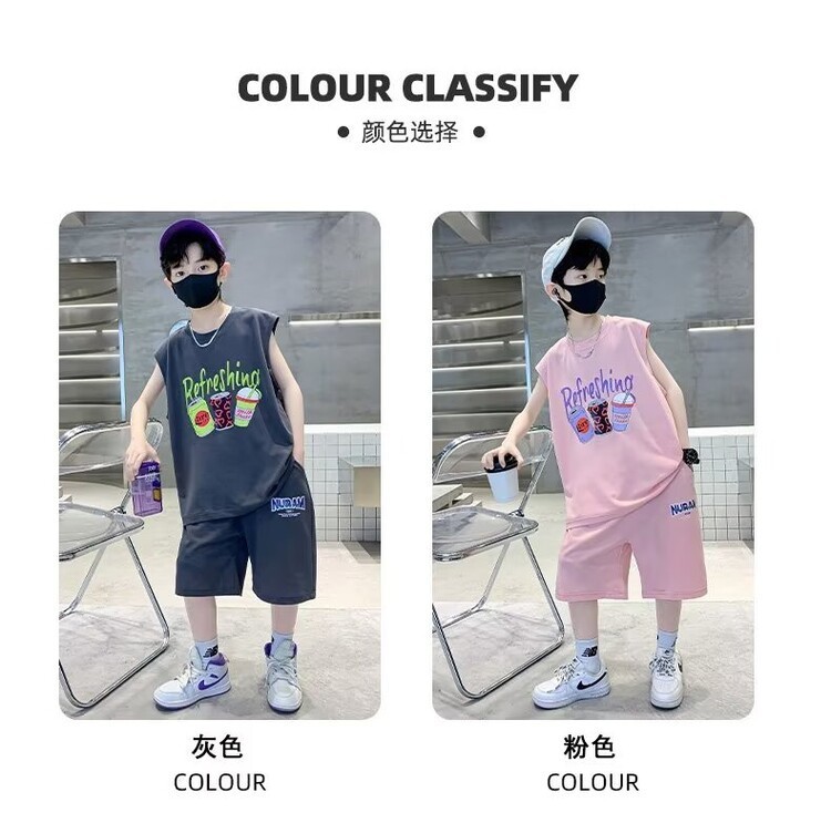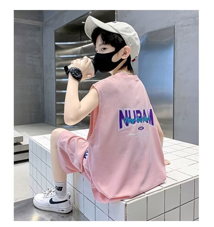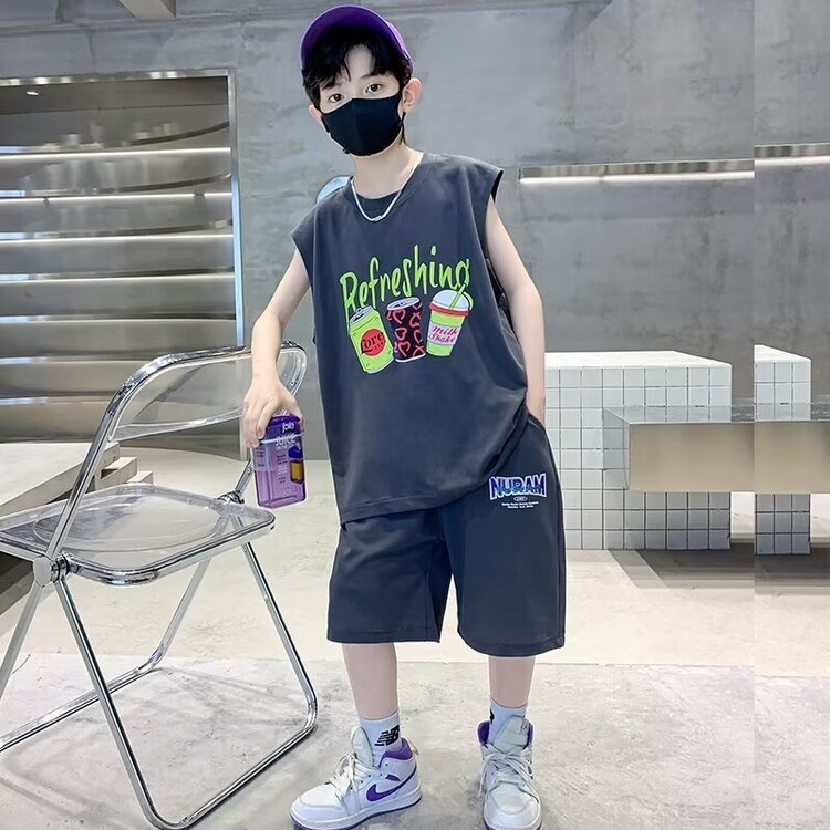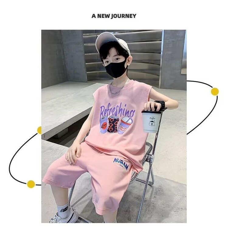 남자 여름 의류 세트 2024 새로운 어린이 여름 반팔 티셔츠 운동복 큰 어린이 여름 잘 생긴스토어 가기