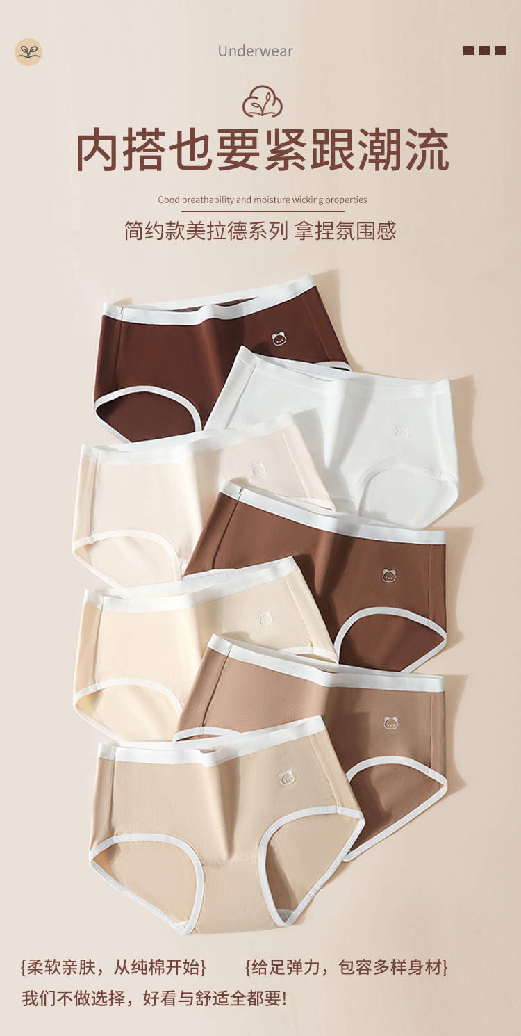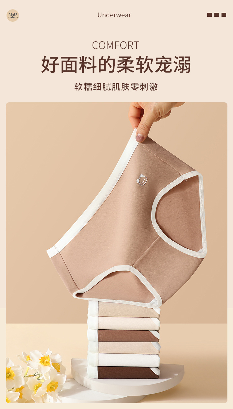 도매 순면 여성용 팬티 중간 허리 메일라드 컬러 시리즈 항균 삼각 팬티 여성용 무봉제 달콤한 소녀 팬티