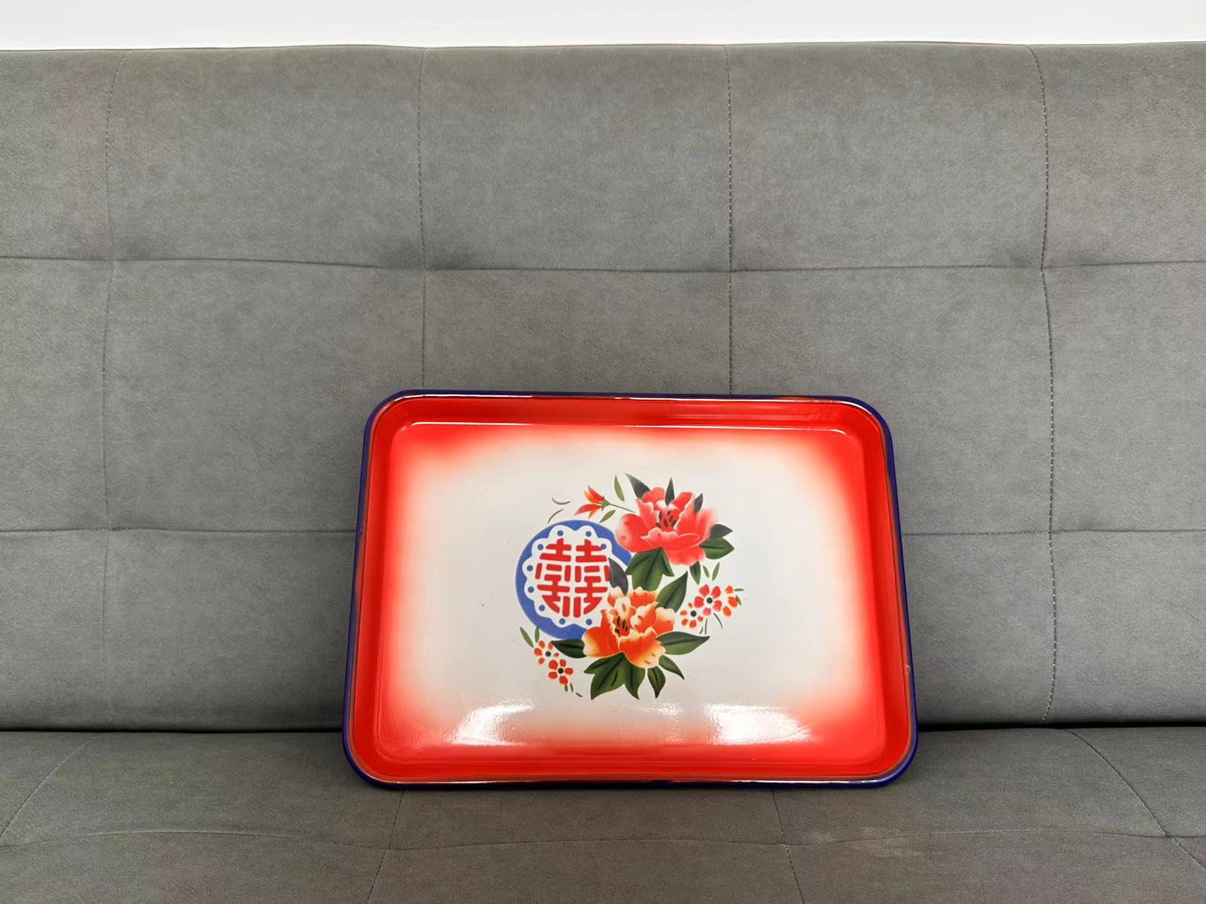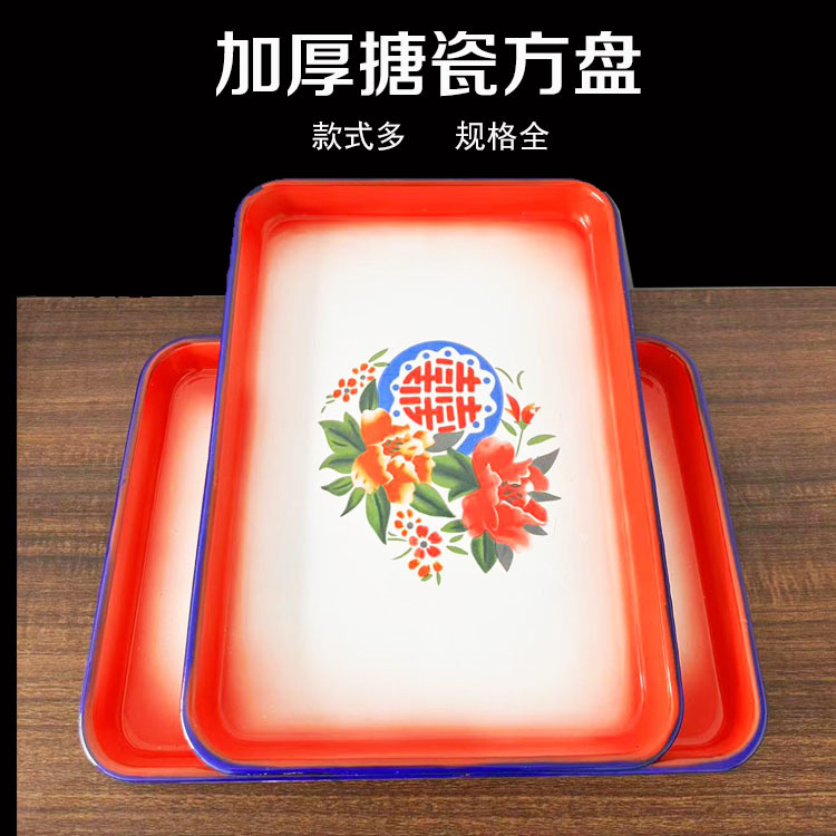 구식 에나멜 플레이트 직사각형 간쑤 말라 탕 큰 티 플레이트 80 년대 향수를 불러 일으키는 스톨 냄비 접시