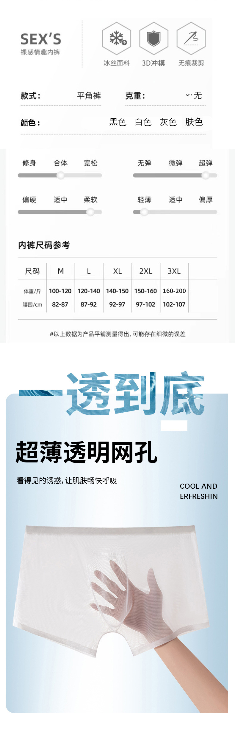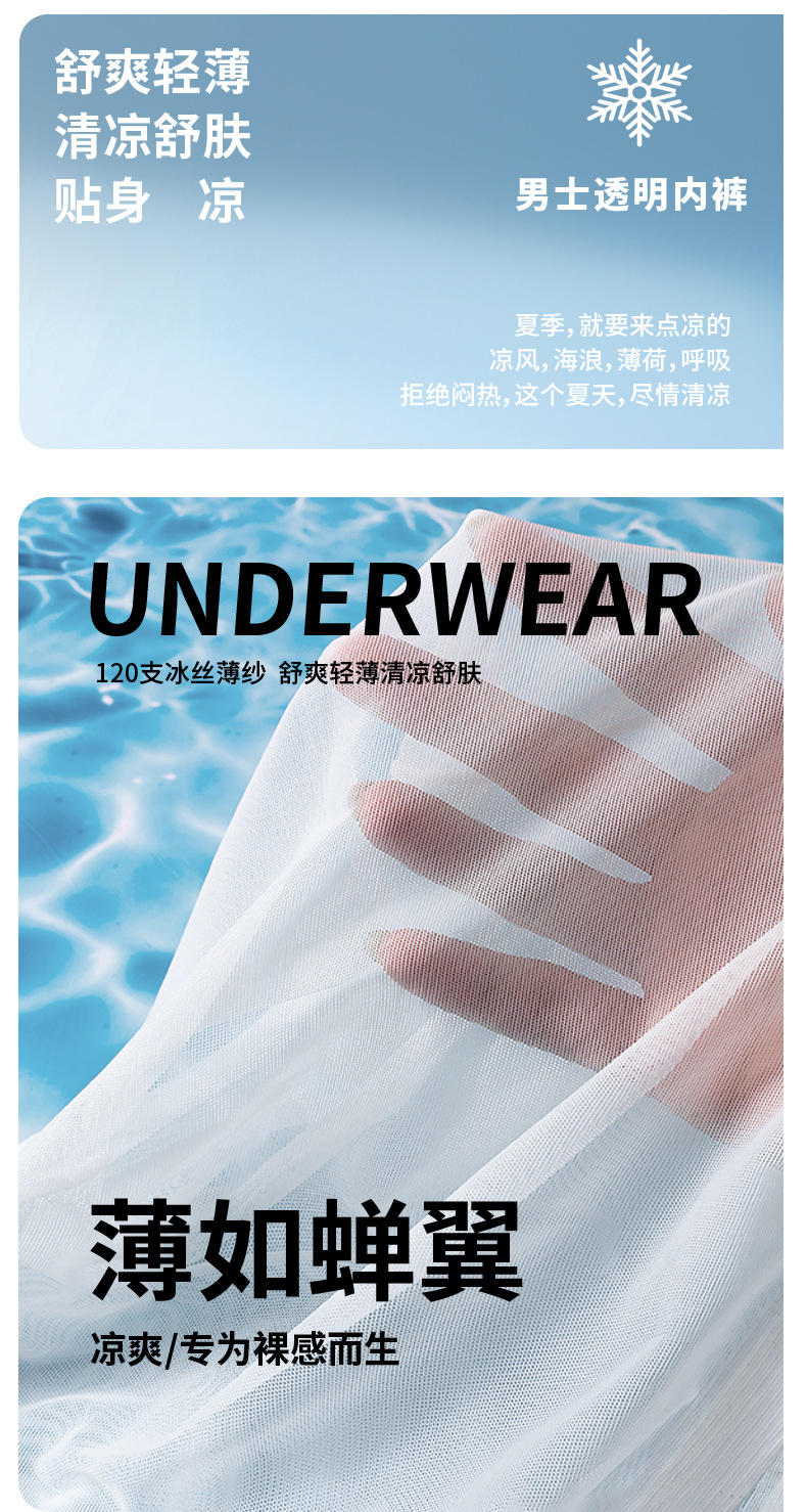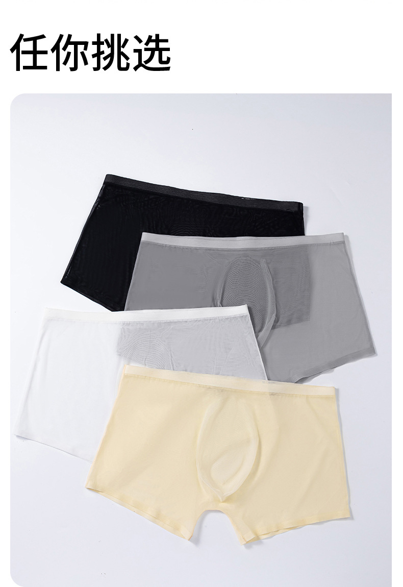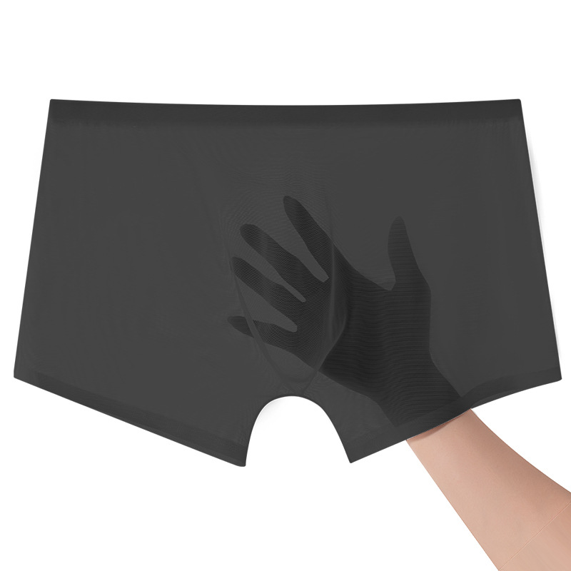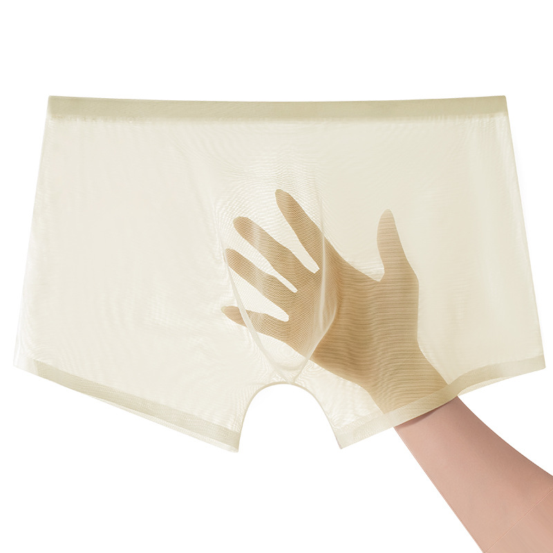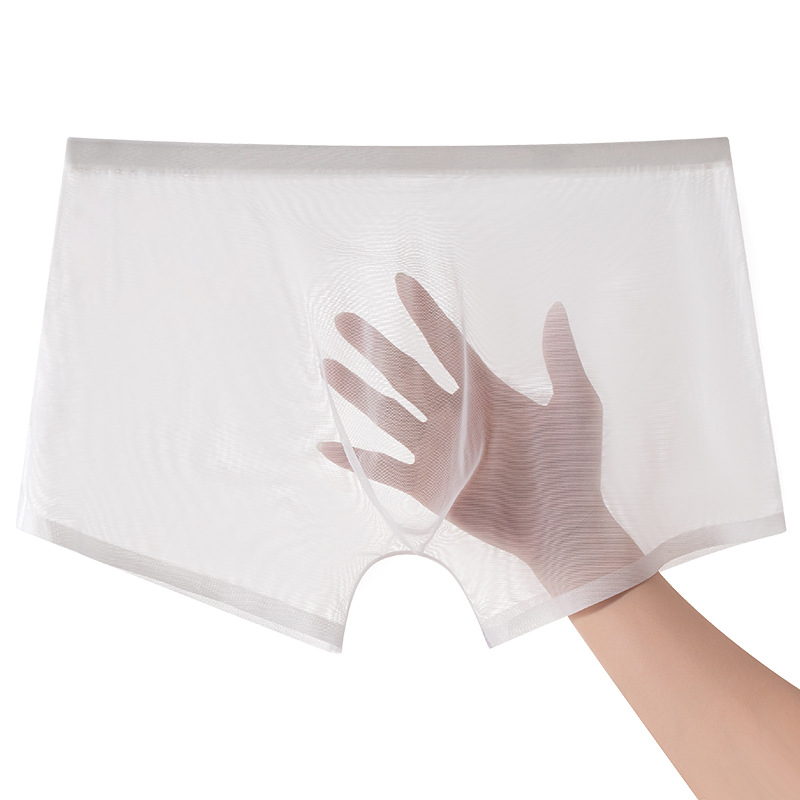 남성 속옷 여름 얇은 통기성 섹시 전체 투명 아이스 실크 복서 반바지 없음 마크 복서 남성 바지스토어 가기