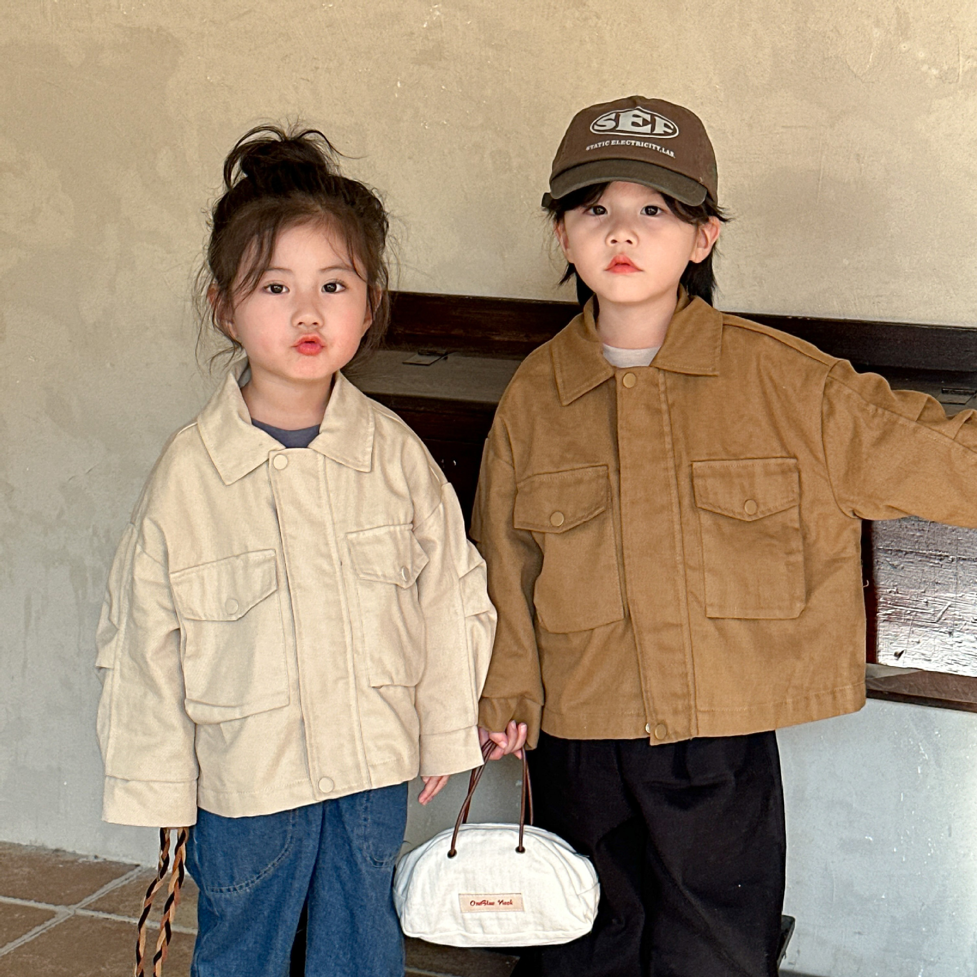 아동 작업복 재킷 2025 새로운 봄, 가을 소년 재킷 한국 스타일 느슨한 소녀 가을 의류 아기상의스토어 가기