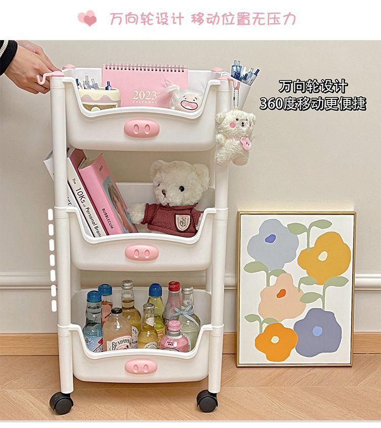 G3V 트롤리 스토리지 랙 어린이 스낵 스토리지 랙 가정용 책장 그림책 랙 움직일 수있는 다층 돼지 전체스토어 가기