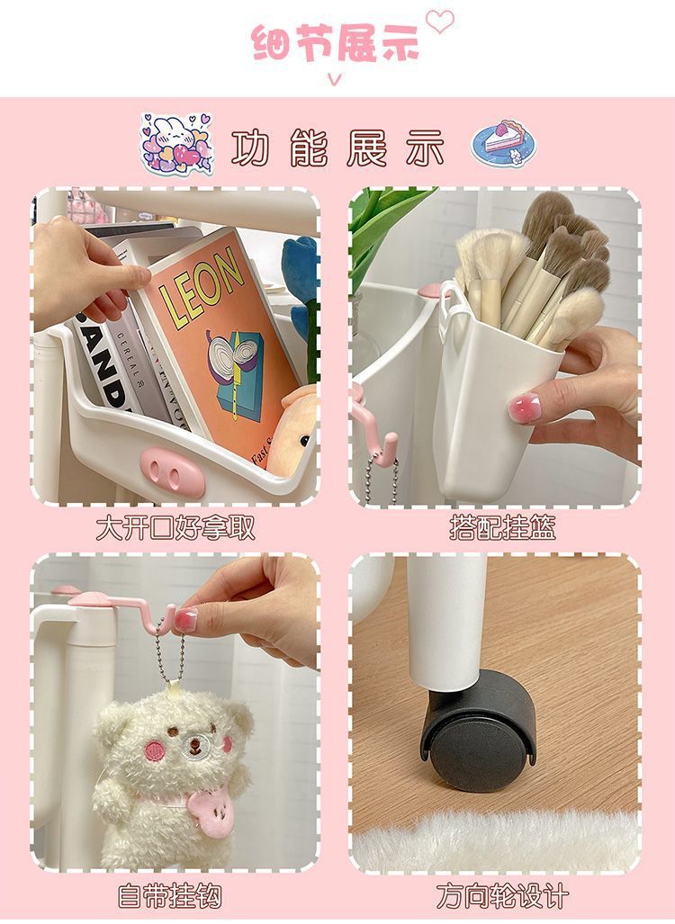 G3V 트롤리 스토리지 랙 어린이 스낵 스토리지 랙 가정용 책장 그림책 랙 움직일 수있는 다층 돼지 전체