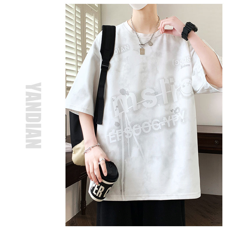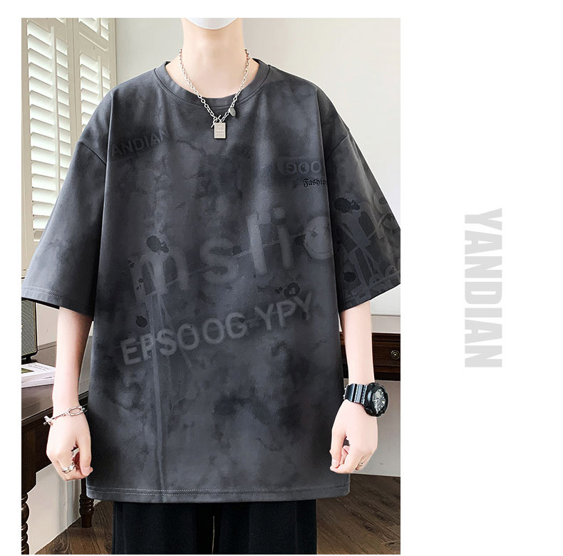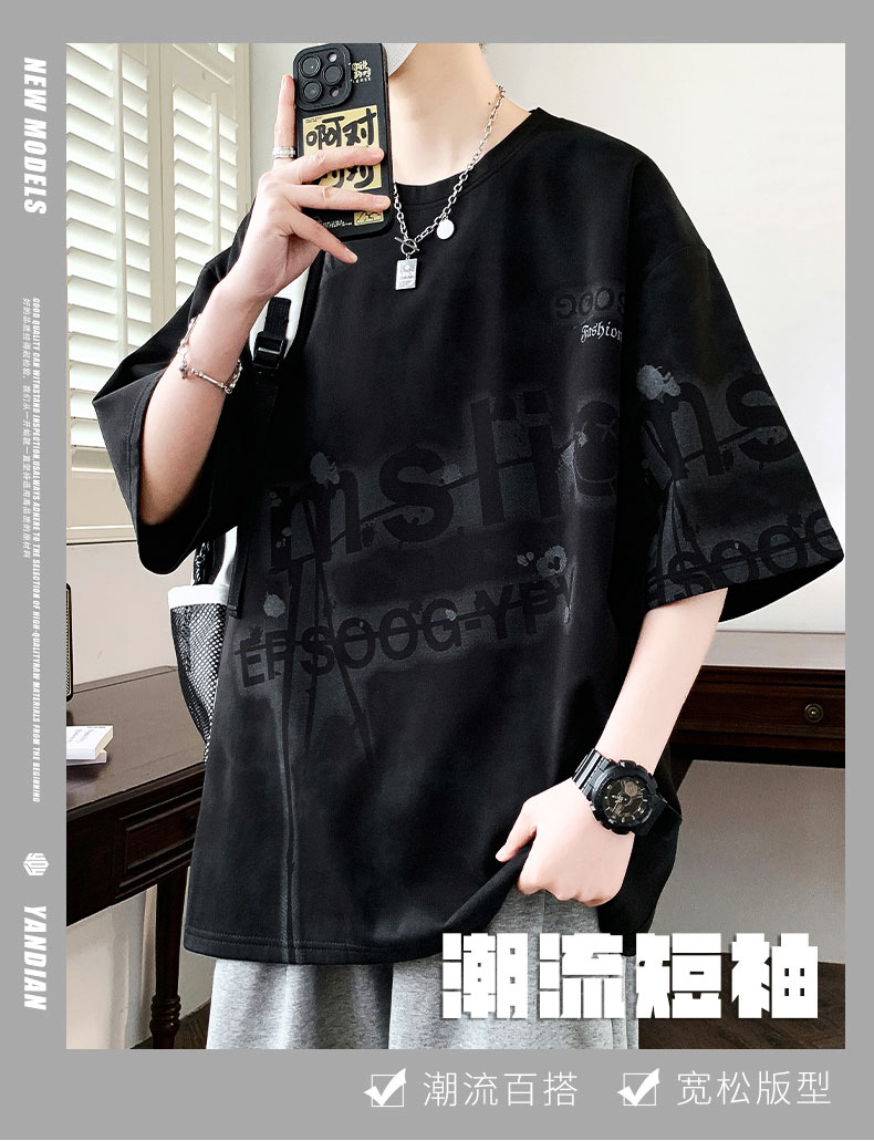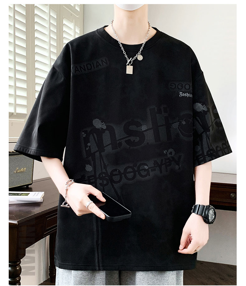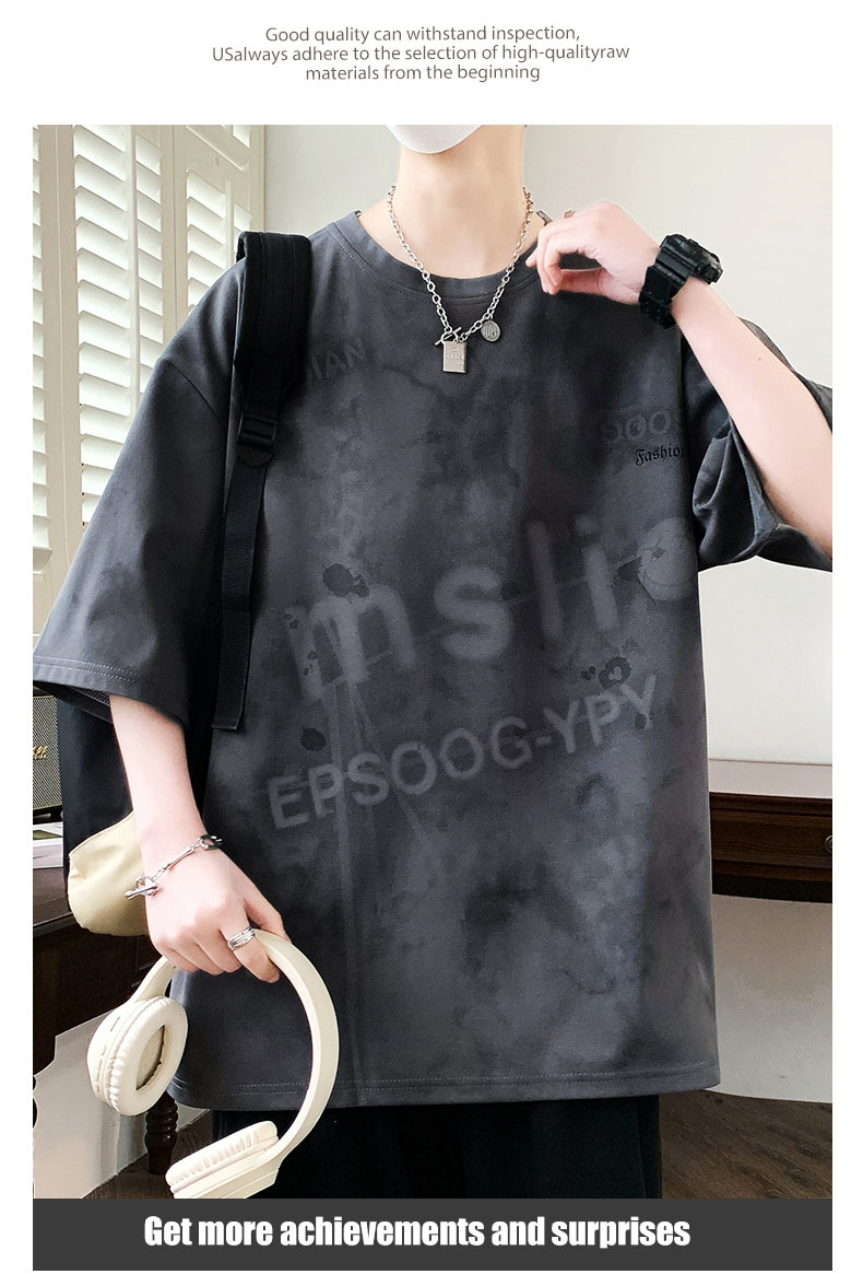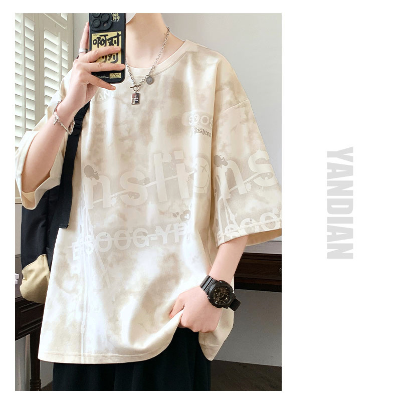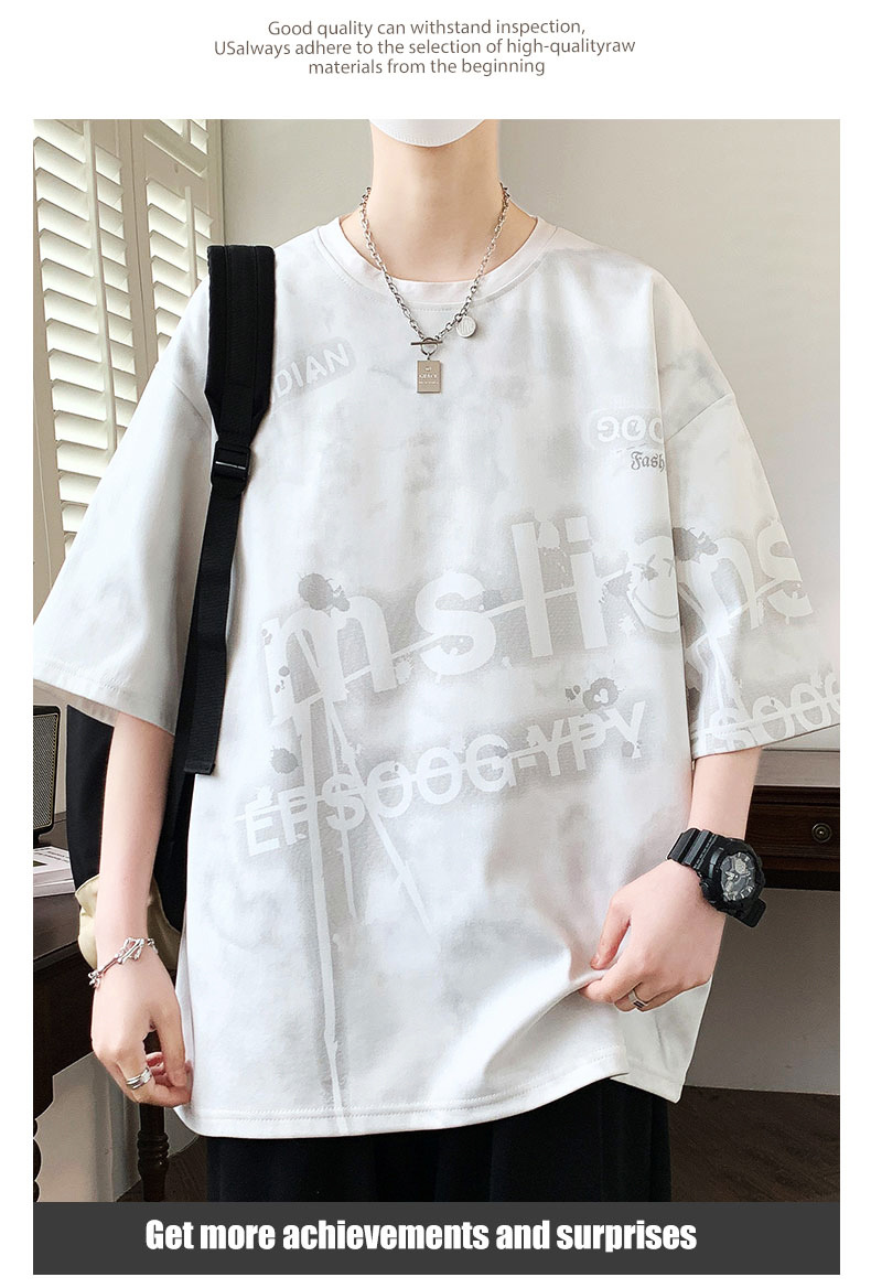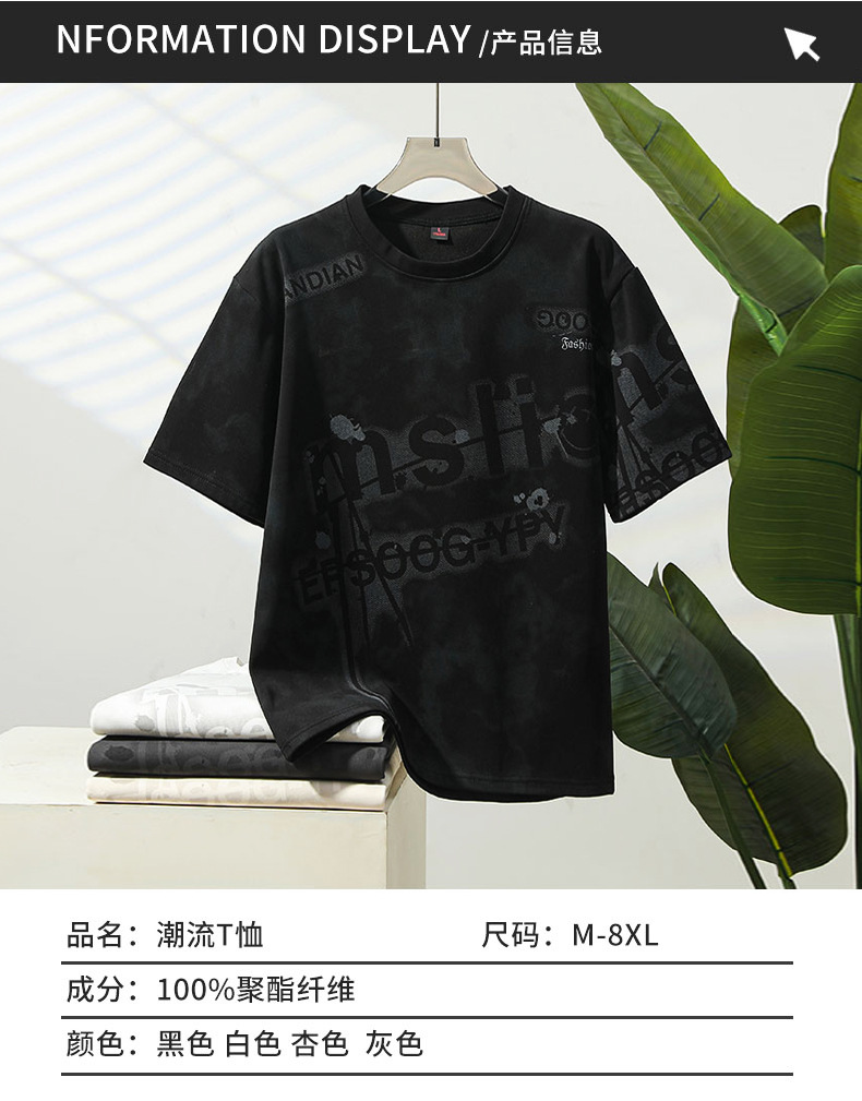 여름 유행 홍콩 스타일 남성 인쇄 라운드 넥 반팔 티셔츠 지방 남성 플러스 사이즈 플러스 사이즈 느슨한 캐주얼 티셔츠스토어 가기