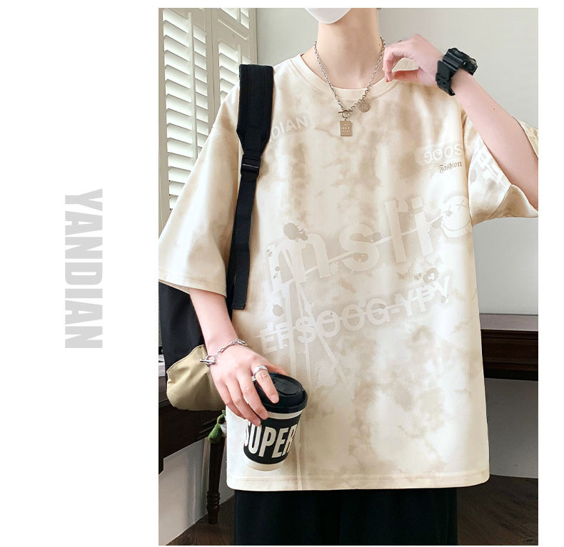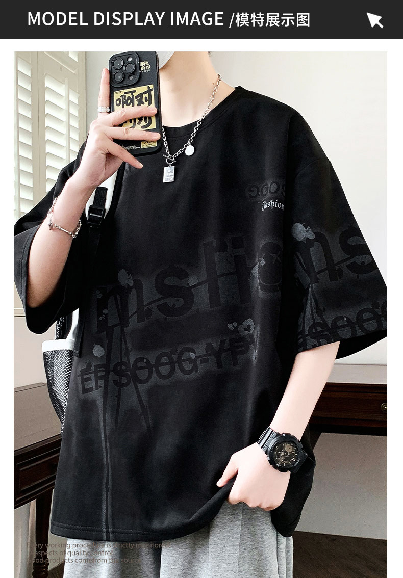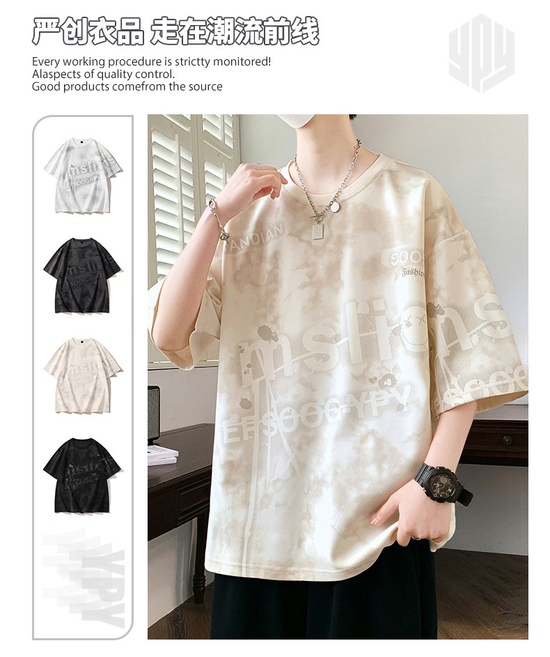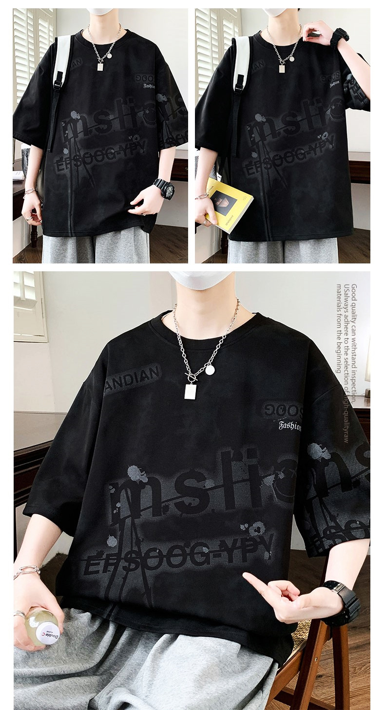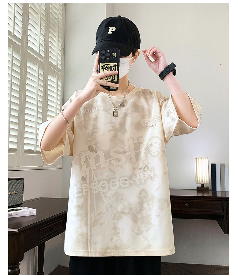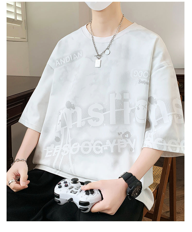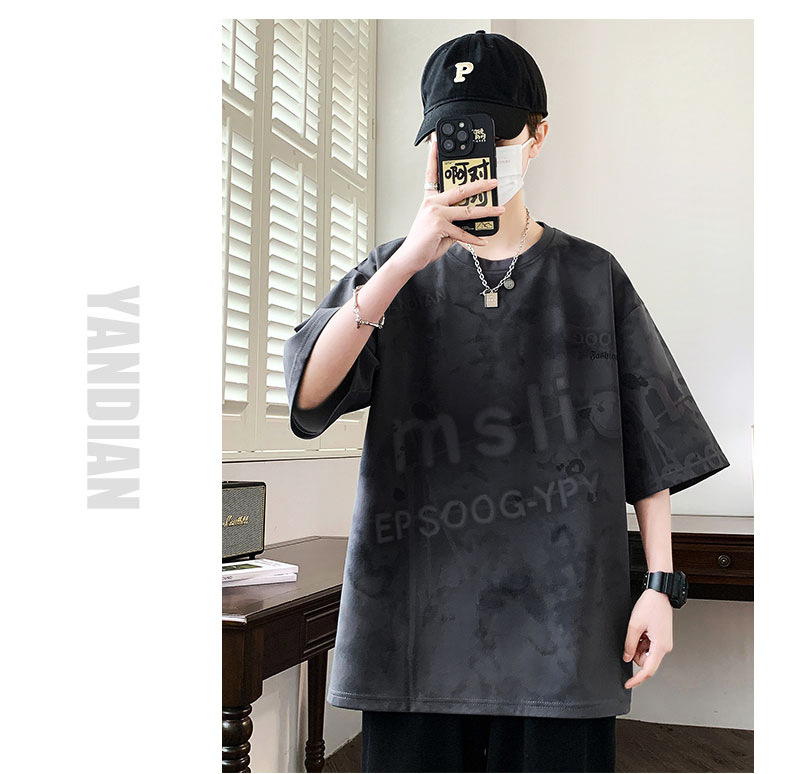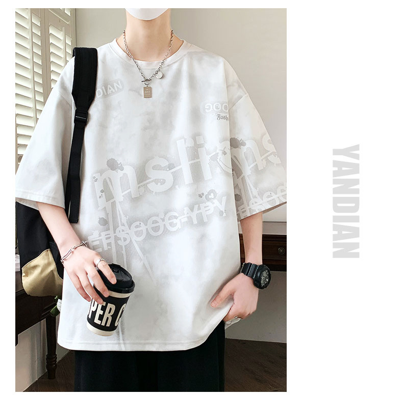 여름 유행 홍콩 스타일 남성 인쇄 라운드 넥 반팔 티셔츠 지방 남성 플러스 사이즈 플러스 사이즈 느슨한 캐주얼 티셔츠스토어 가기