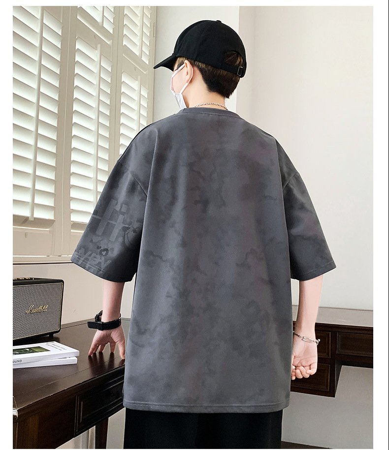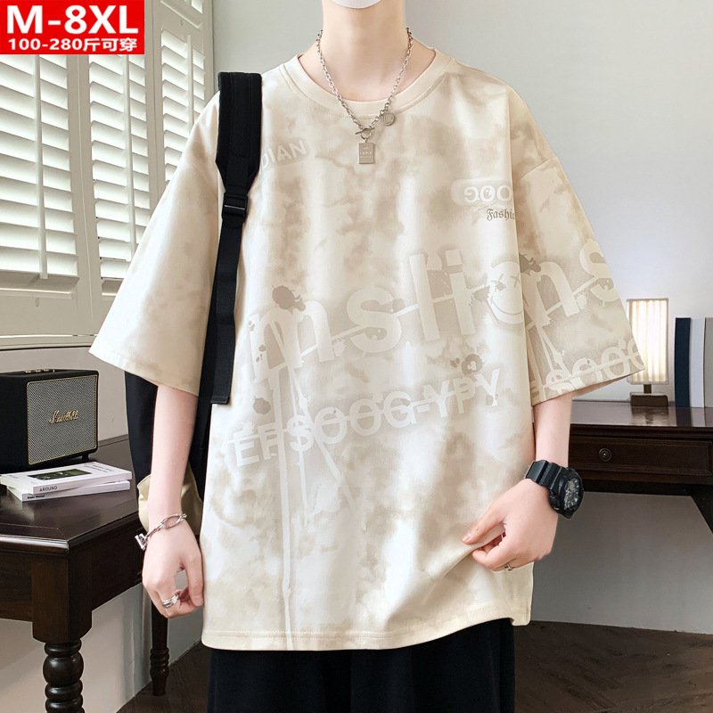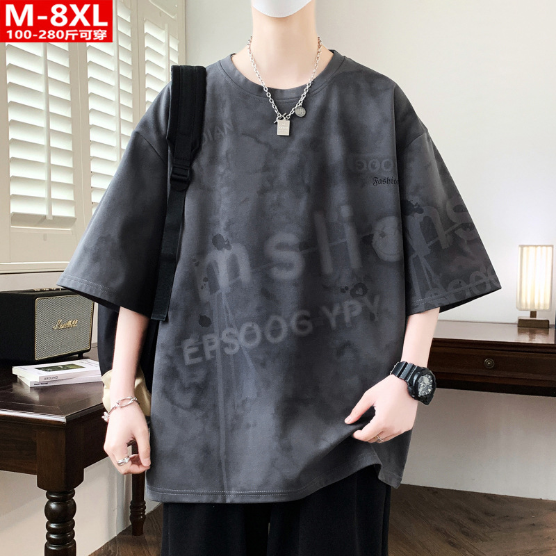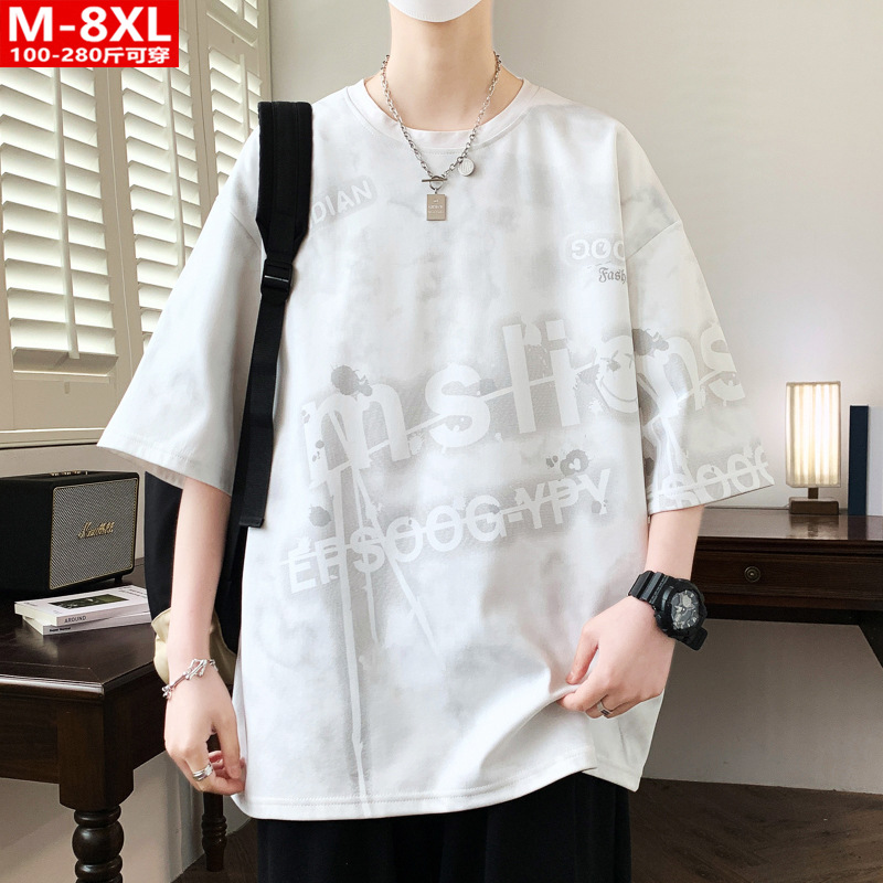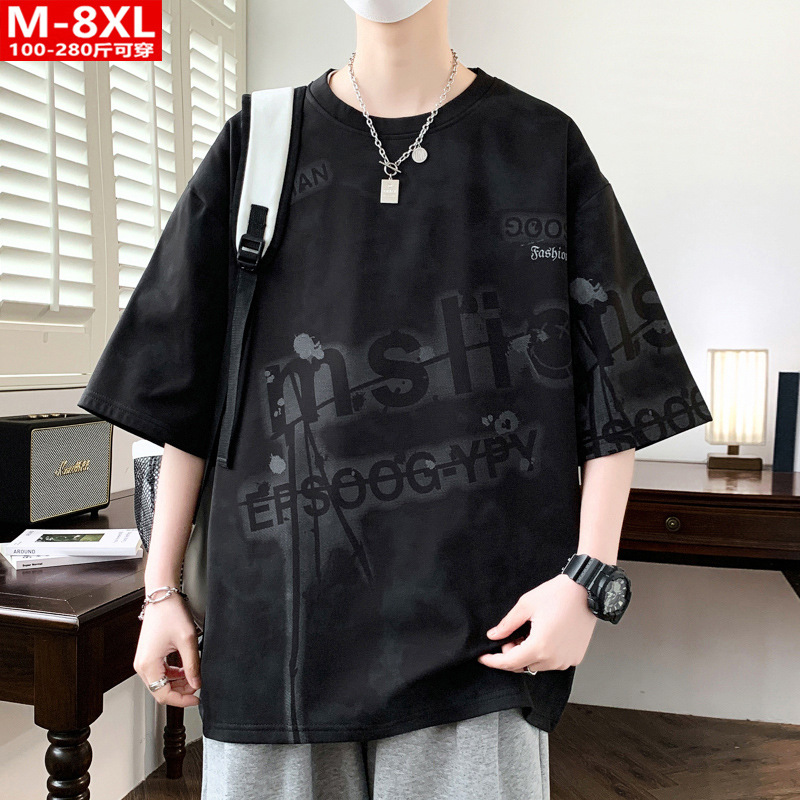 여름 유행 홍콩 스타일 남성 인쇄 라운드 넥 반팔 티셔츠 지방 남성 플러스 사이즈 플러스 사이즈 느슨한 캐주얼 티셔츠