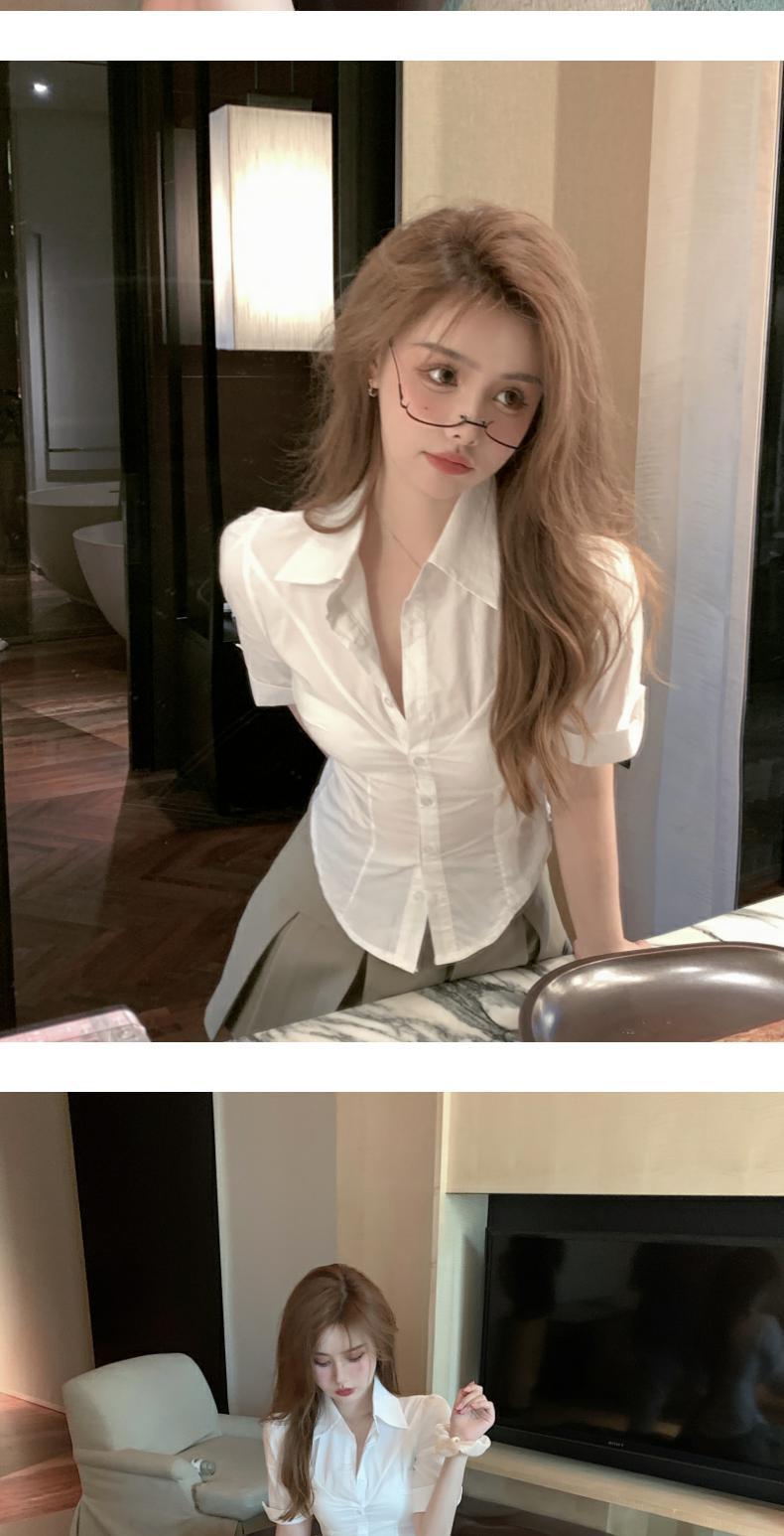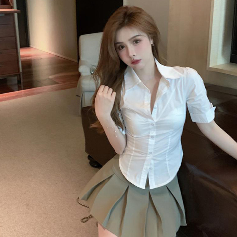 순수한 매력의 여름용 화이트 셔츠, 여학생용 슬림핏 패션, 한국 스타일 반팔 상의스토어 가기