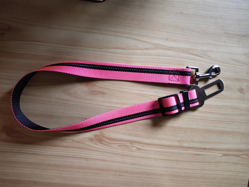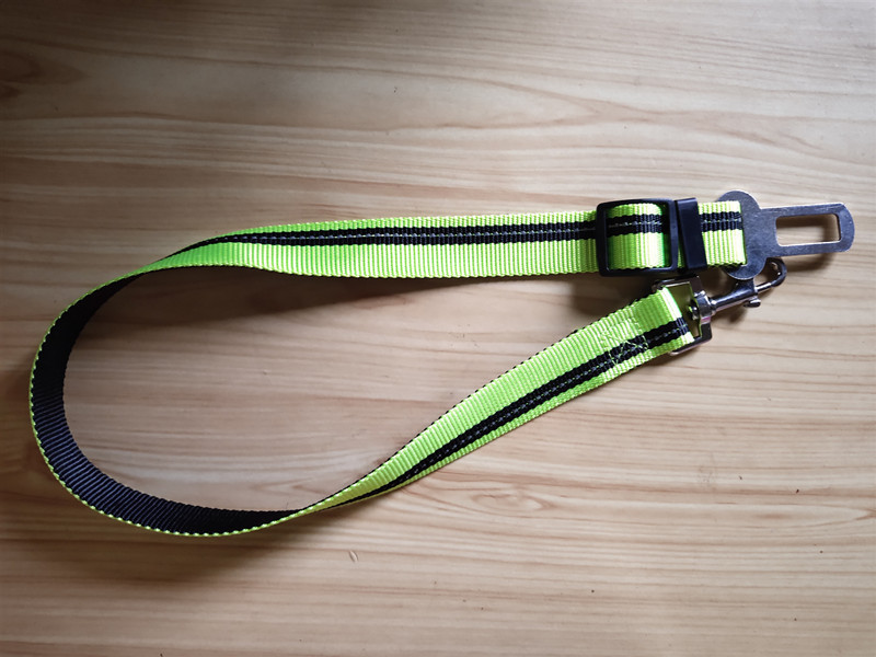 一头栓在宝贝的项圈上,一头叉在车车安全带的插口上