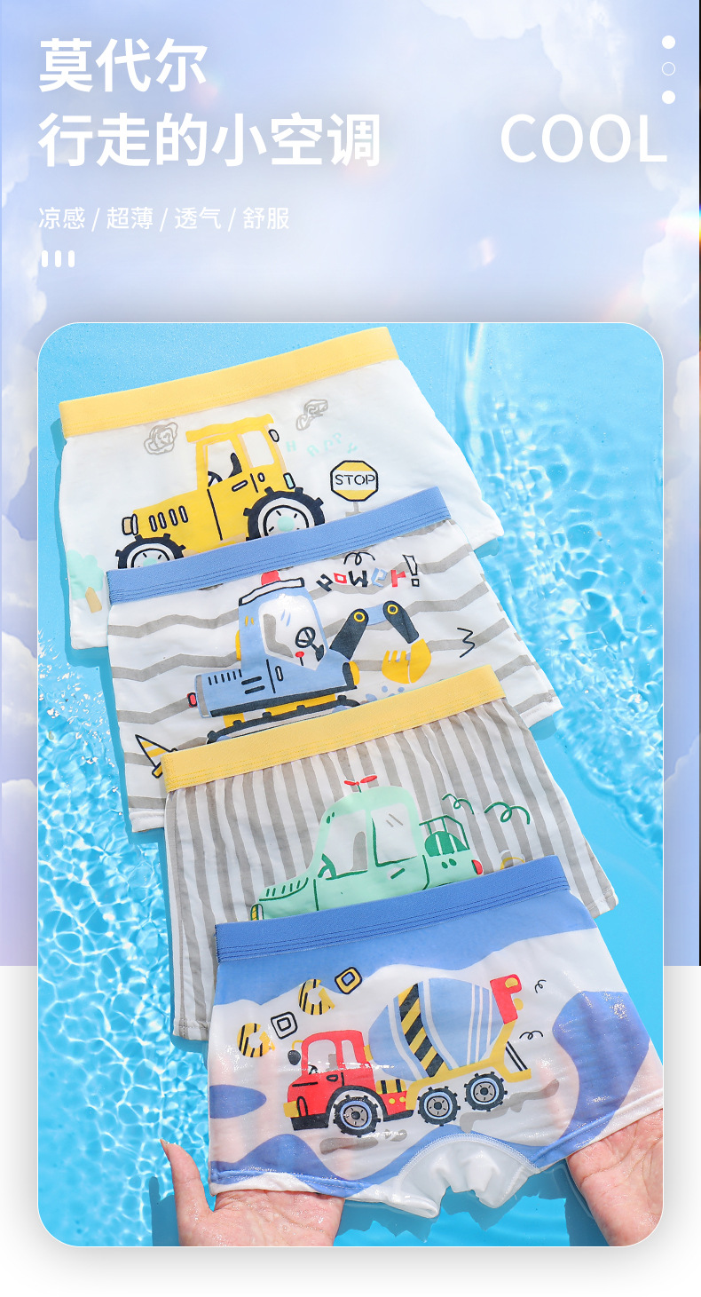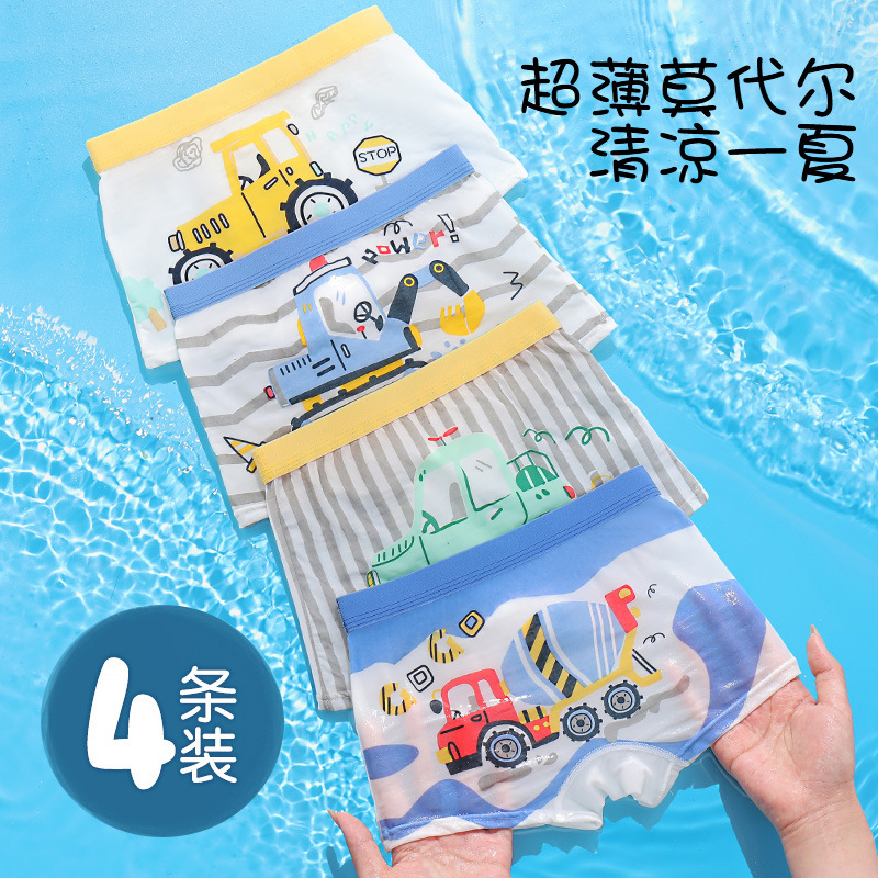 소년 속옷 모달 아이스 실크 얇은 복서 속옷 어린이 항균 편안한 방귀 박서 속옷 여름스토어 가기