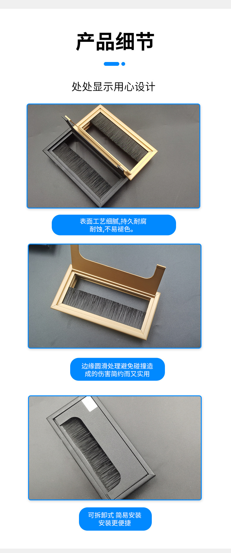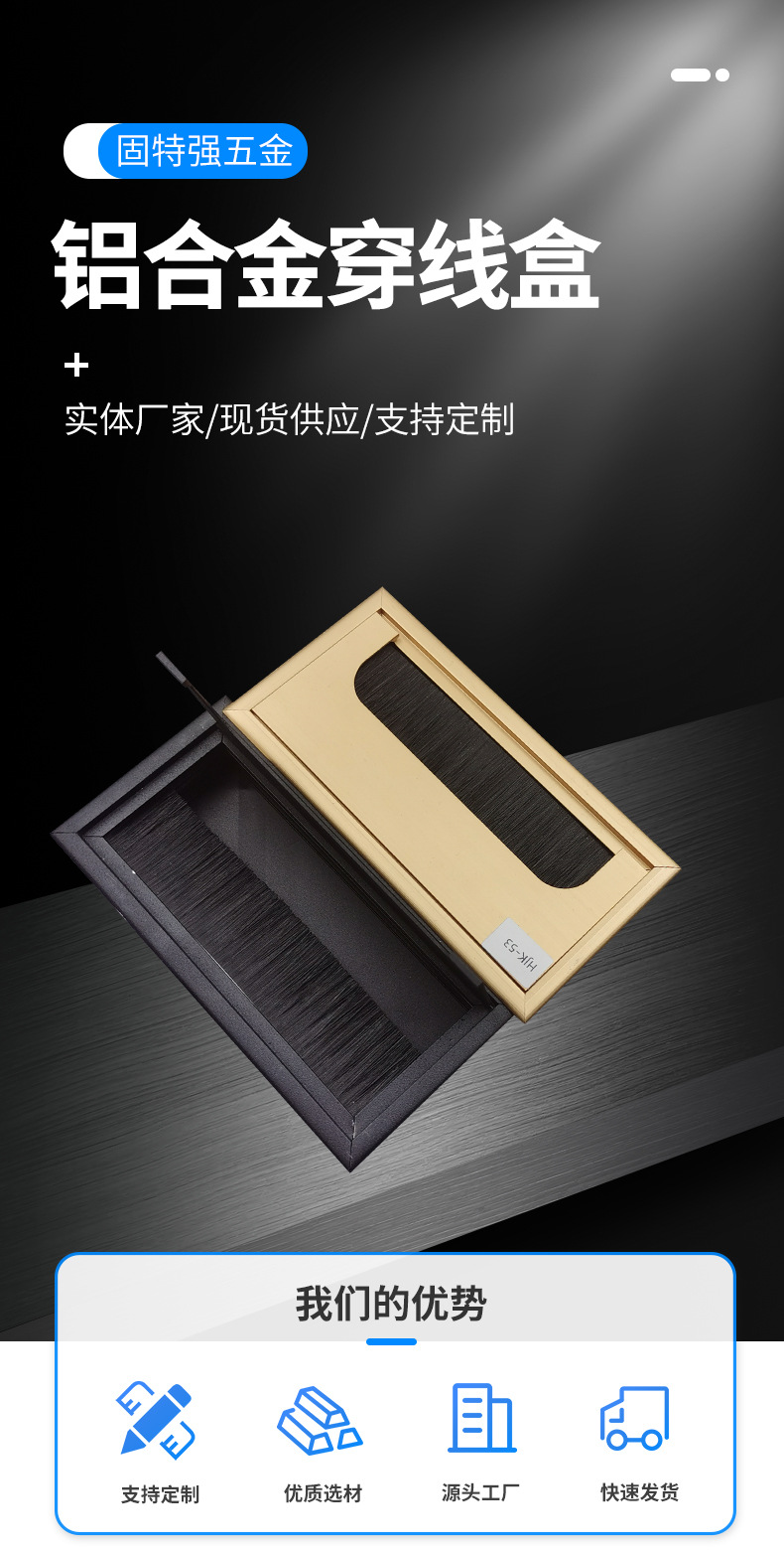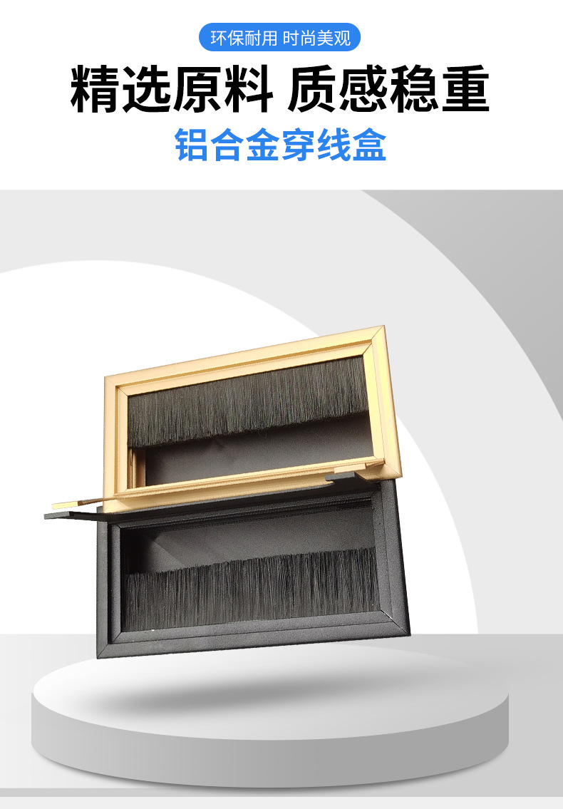 재고 책상 브러시 스레딩 박스 컴퓨터 데스크탑 배선 구멍 상자 직사각형 알루미늄 합금 스레드 상자