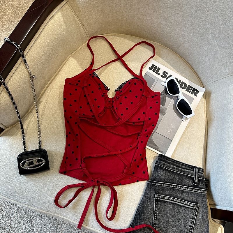 순수한 욕망 스타일 스트랩 디자인 카미솔 여성의 2024 여름 새로운 허리 슬리밍 아름다운 등 섹시한 외주 탑스토어 가기
