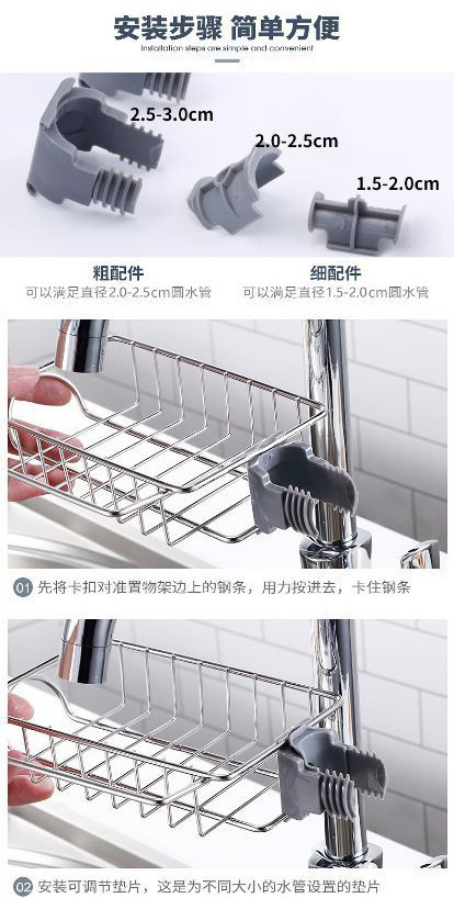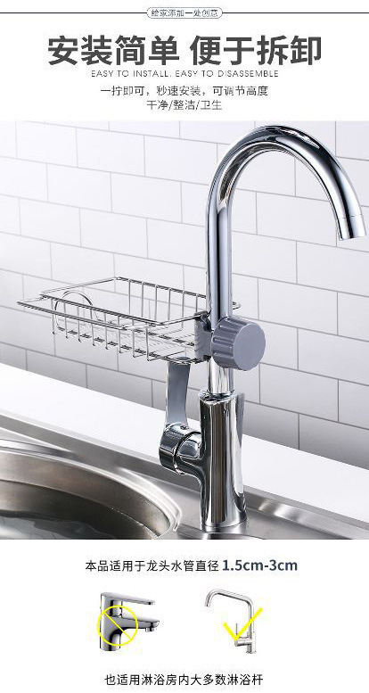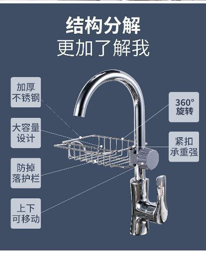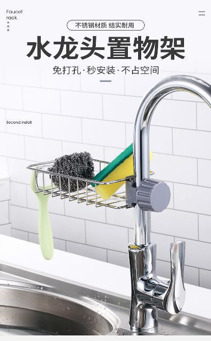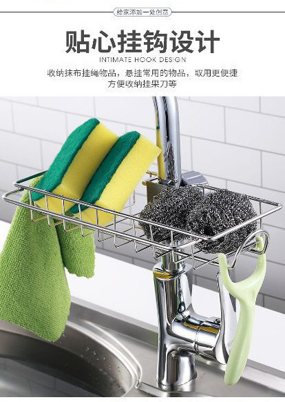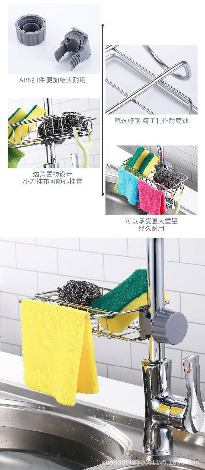 不锈钢水龙头置物架厨房收纳架海绵沥水架水槽收纳架抹布架