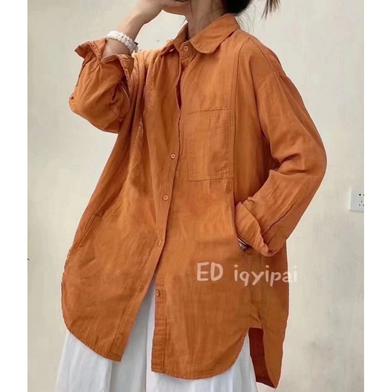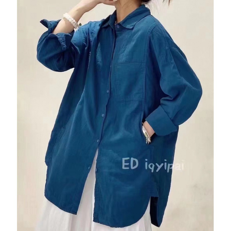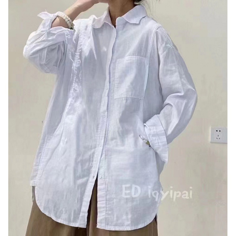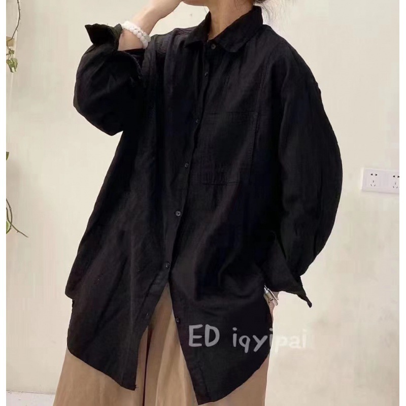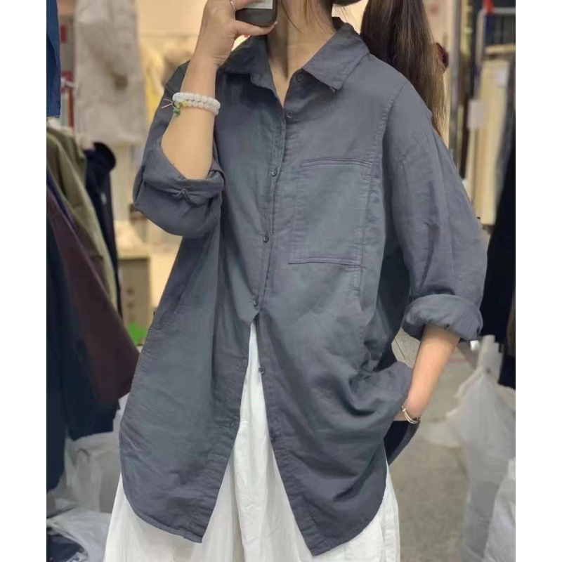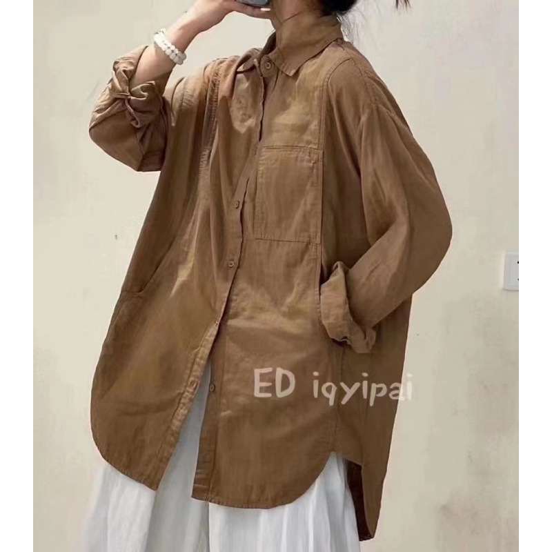 Ed iqyipai 3719 중간 길이 더블 레이어 코튼 및 리넨 셔츠 옷깃 긴 소매 셔츠 단색 카디건베이스 셔츠스토어 가기