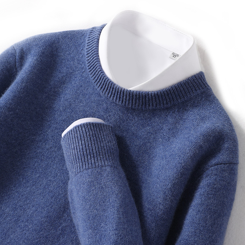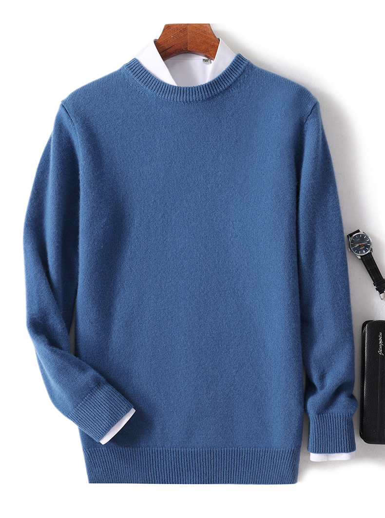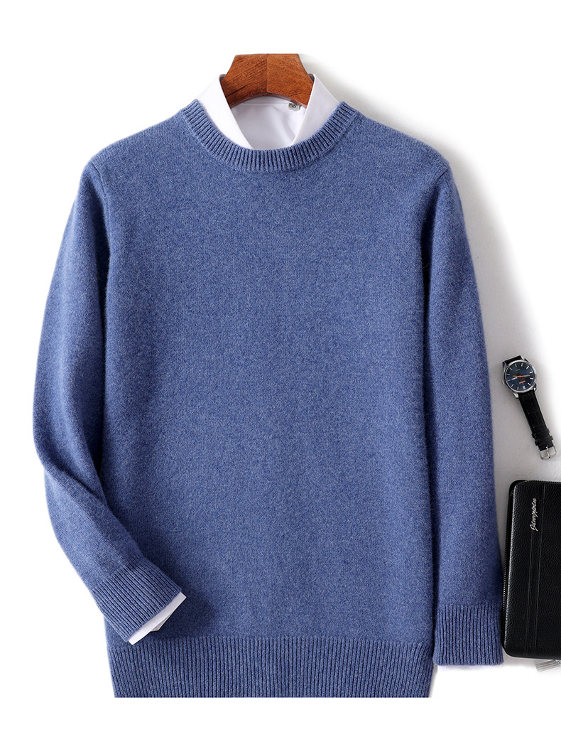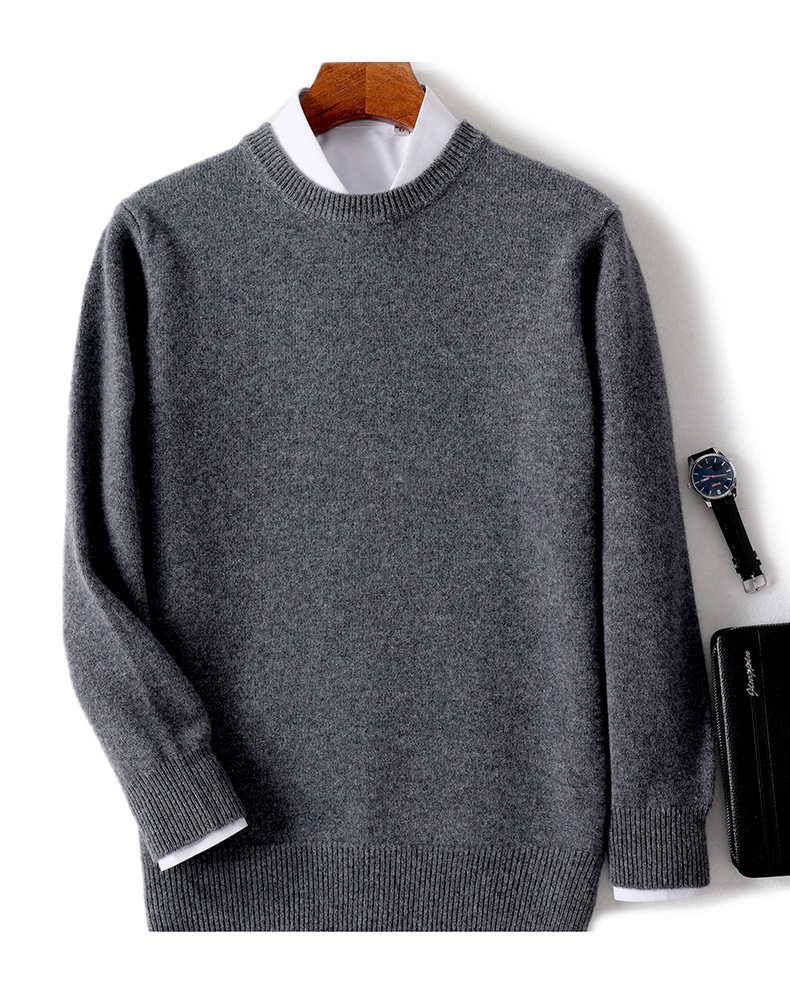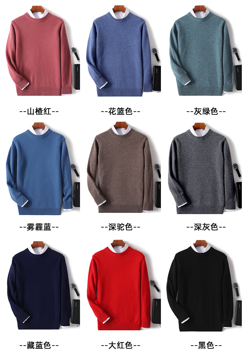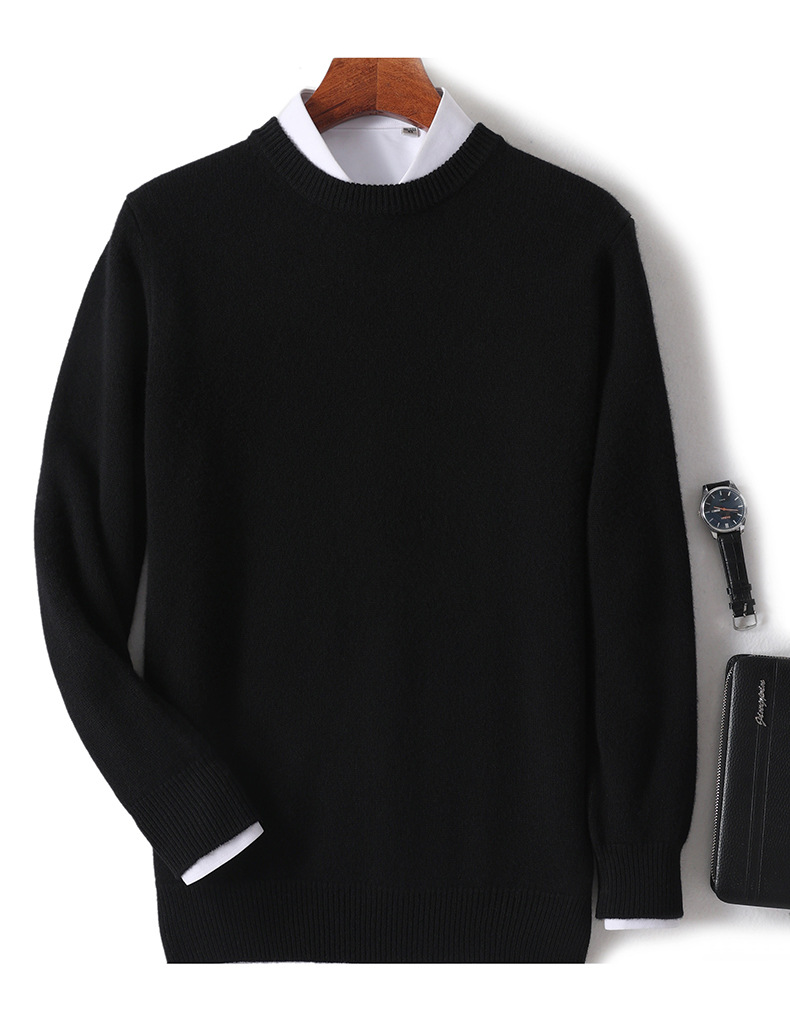 2024 가을과 겨울 새로운 순수 모직 스웨터 남성용 크루 넥베이스 니트 스웨터 두꺼운 비즈니스 캐주얼 솔리드 컬러