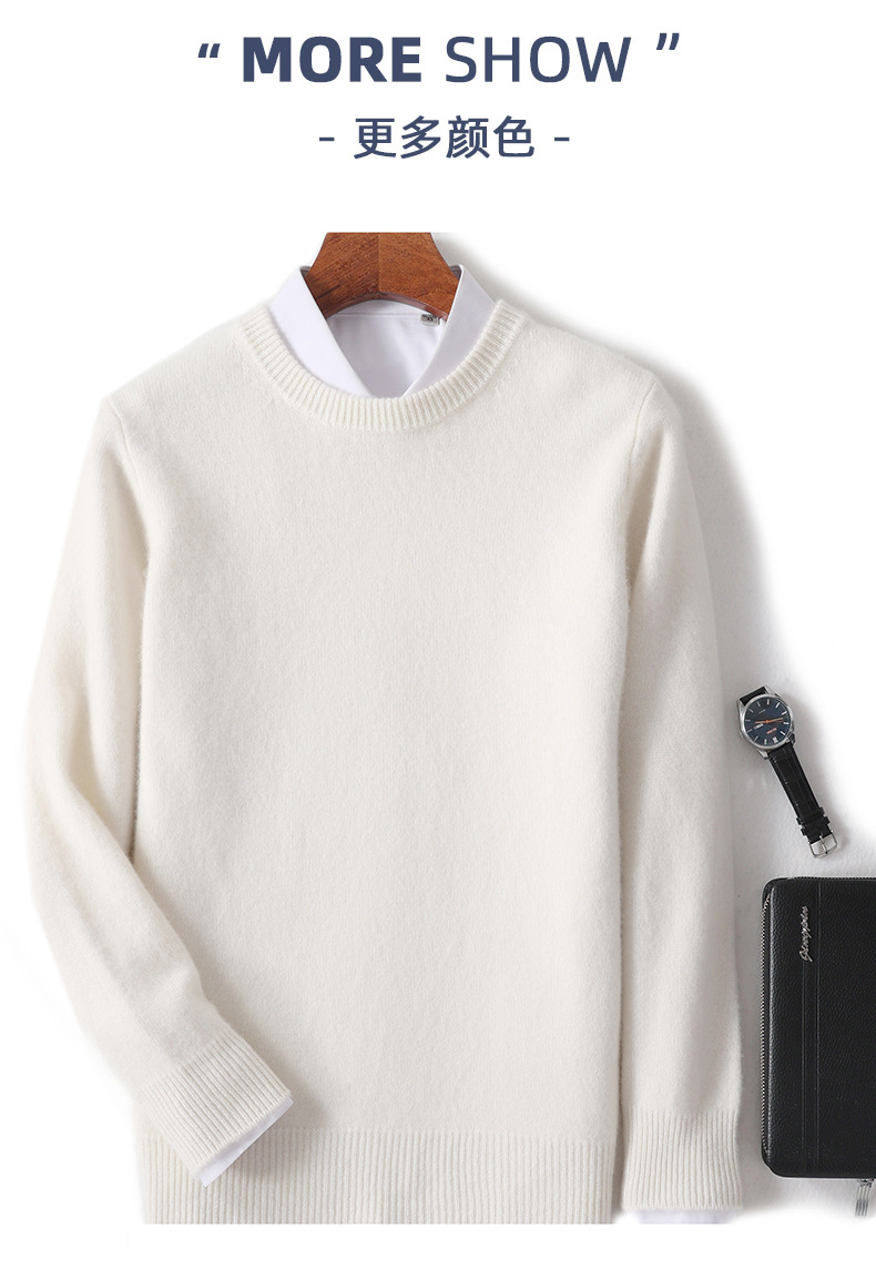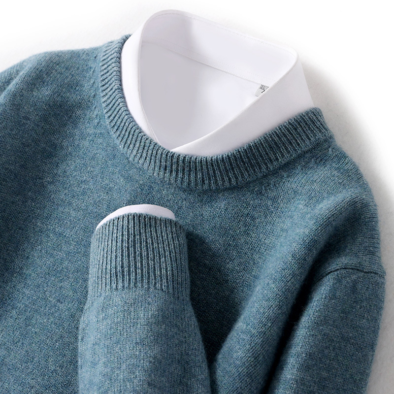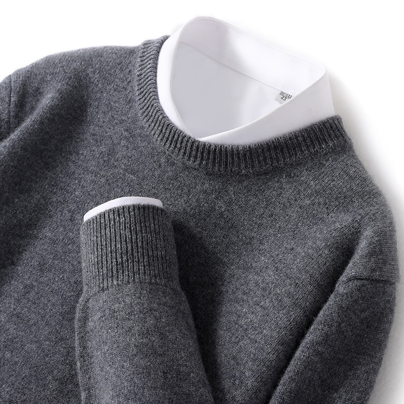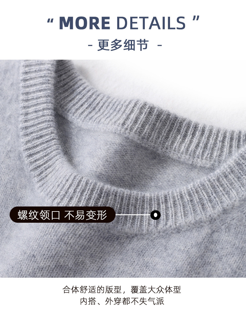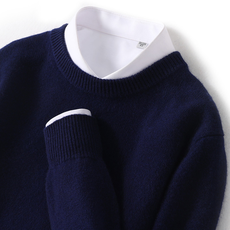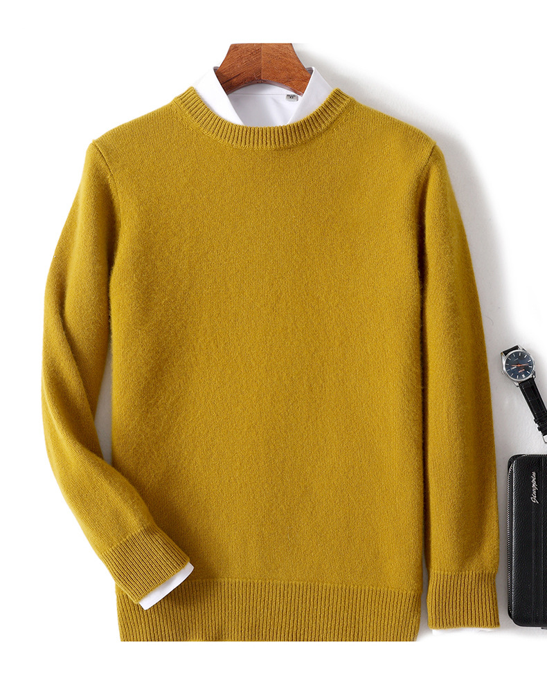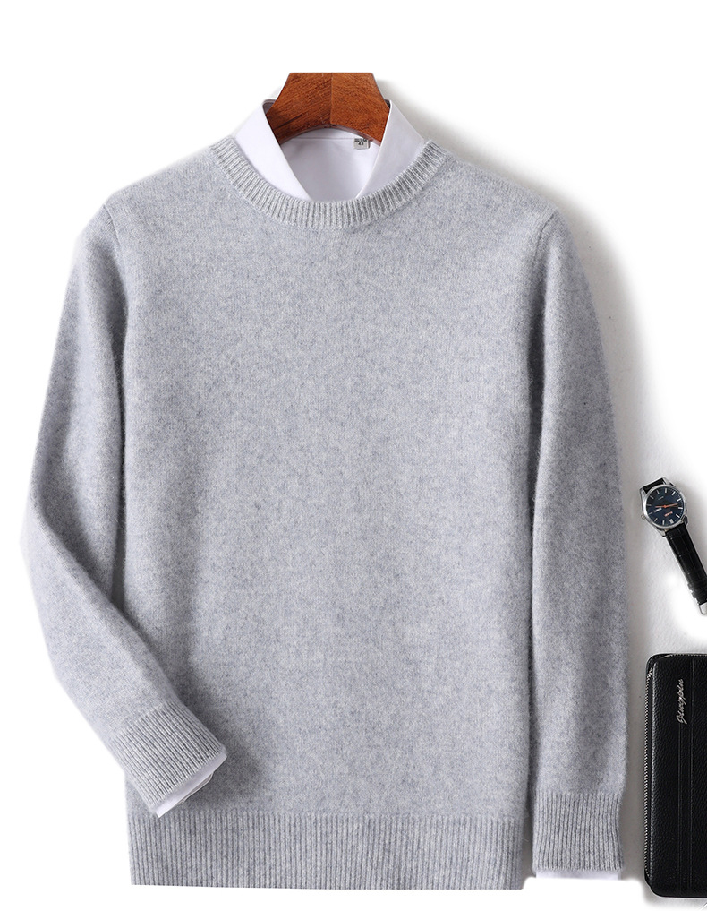 2024 가을과 겨울 새로운 순수 모직 스웨터 남성용 크루 넥베이스 니트 스웨터 두꺼운 비즈니스 캐주얼 솔리드 컬러