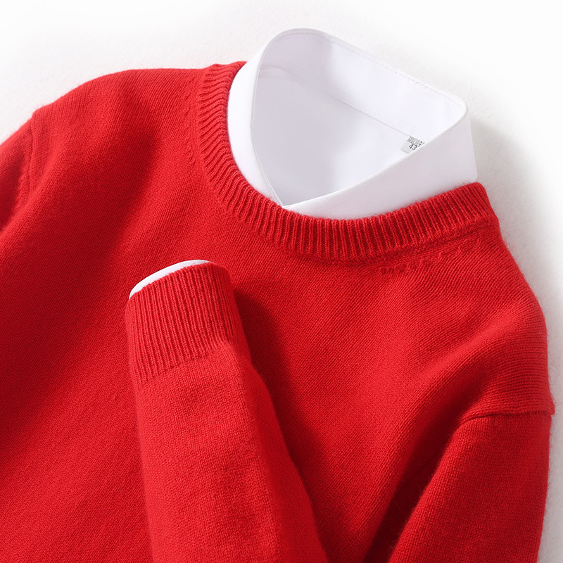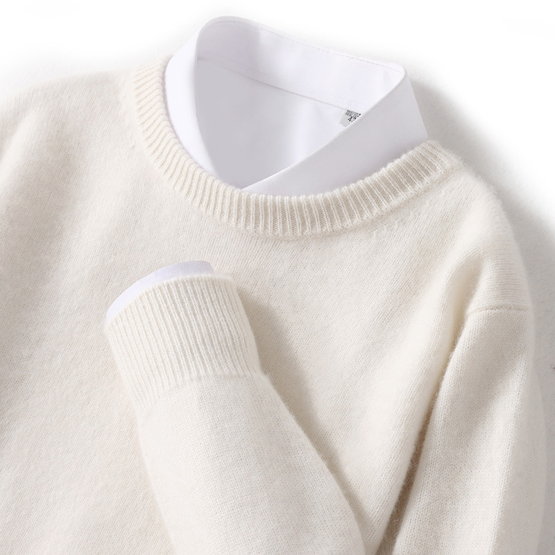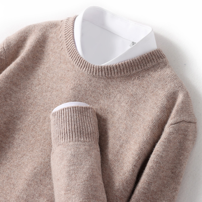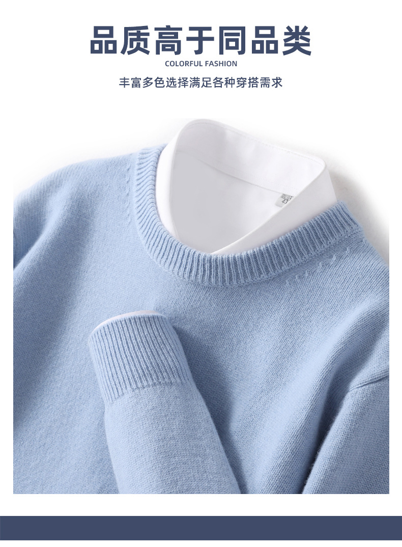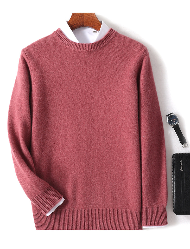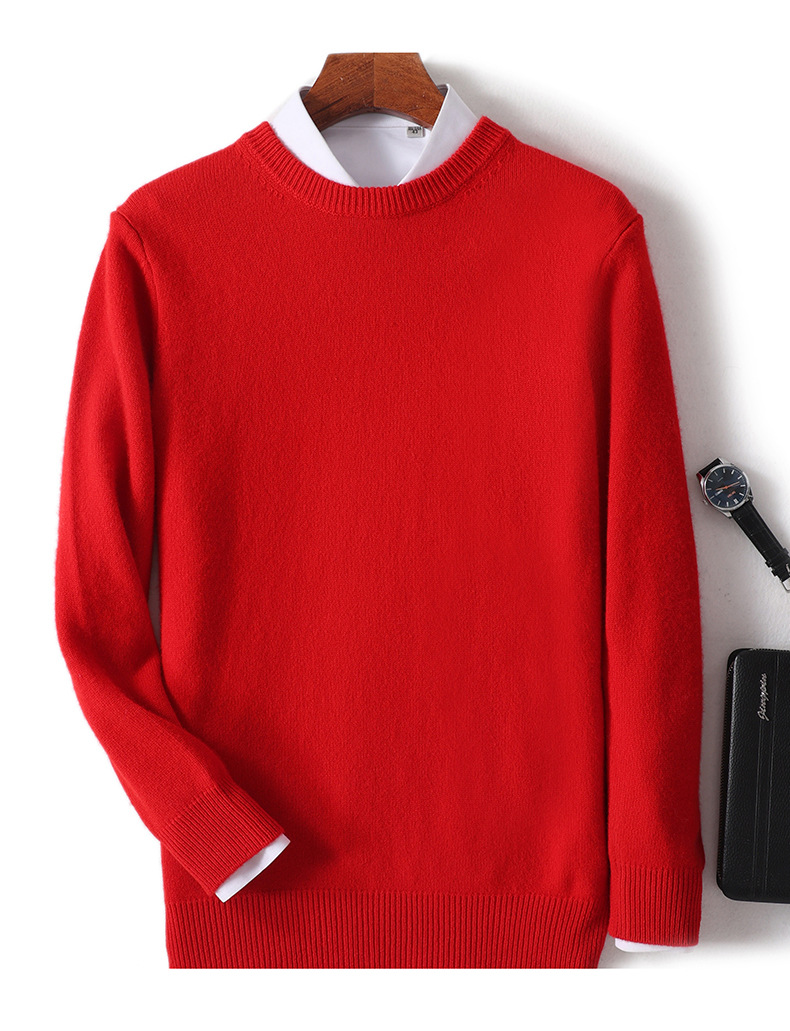 2024 가을과 겨울 새로운 순수 모직 스웨터 남성용 크루 넥베이스 니트 스웨터 두꺼운 비즈니스 캐주얼 솔리드 컬러