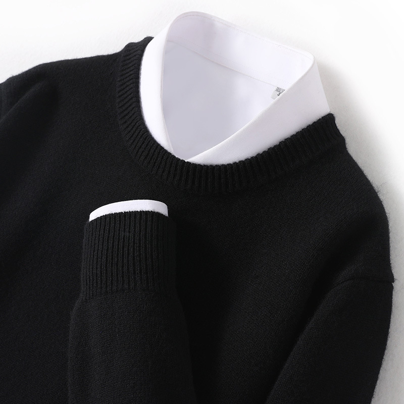 2024 가을과 겨울 새로운 순수 모직 스웨터 남성용 크루 넥베이스 니트 스웨터 두꺼운 비즈니스 캐주얼 솔리드 컬러스토어 가기