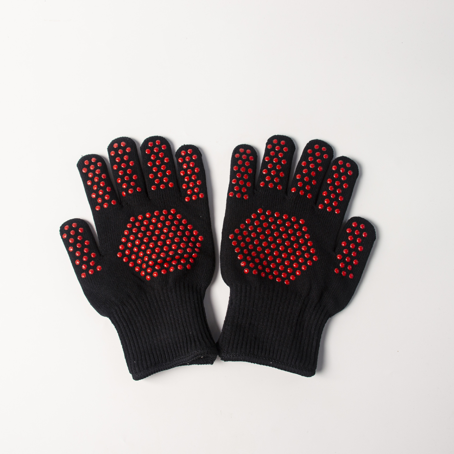 BBQ 고온 장갑 바베큐 베이킹 주방 5 인조 더블 레이어 두꺼운 실리콘 비 슬립 코튼 장갑 안티 스케일링 및 단열스토어 가기