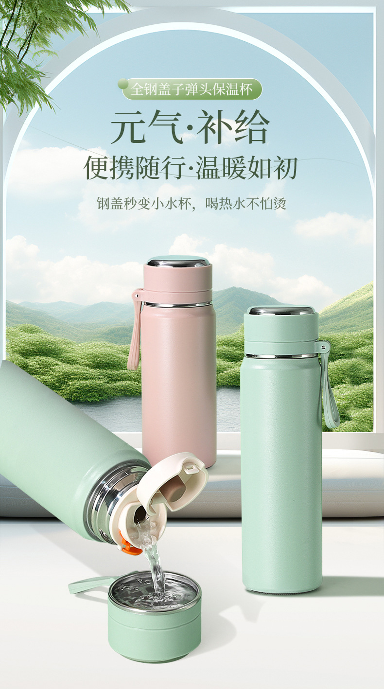 총알 모양 보온병 316 스테인리스 스틸 고급스러운 디자인 남녀 학생 커플 차량용 보온 물병 선물 맞춤 제작스토어 가기
