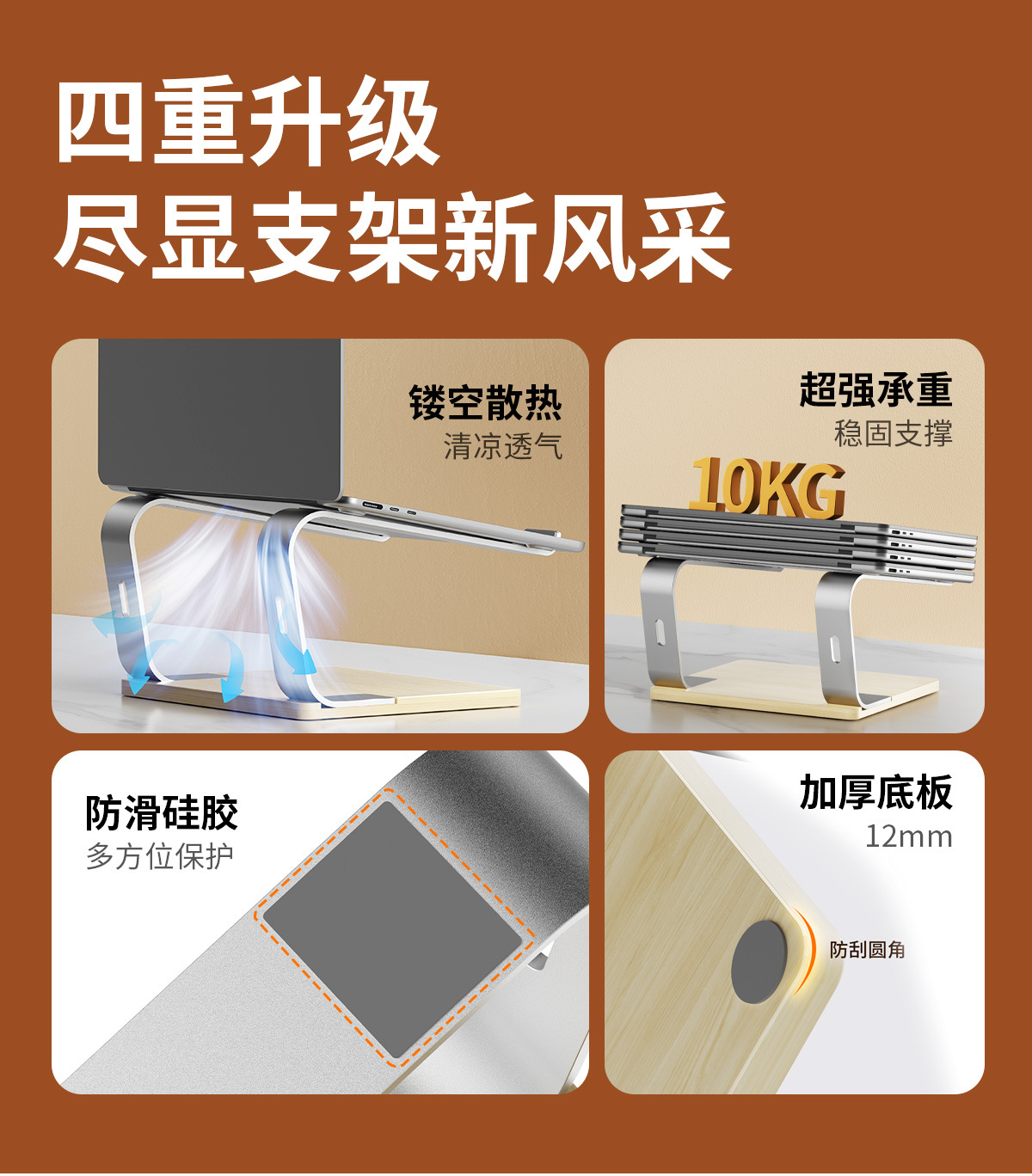 노트북 알루미늄 합금 컴퓨터 브래킷 메이플베이스 데스크탑 높은 중공 열 분산 휴대용 컴퓨터 지원 프레임스토어 가기