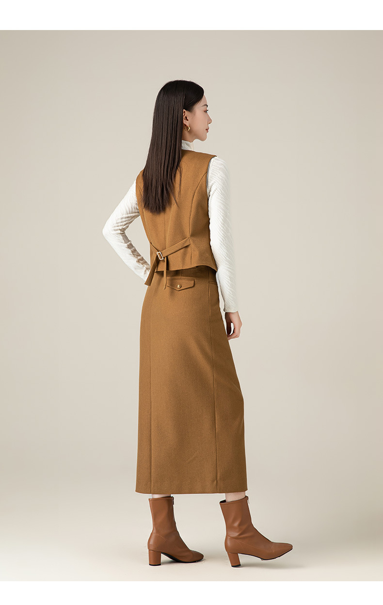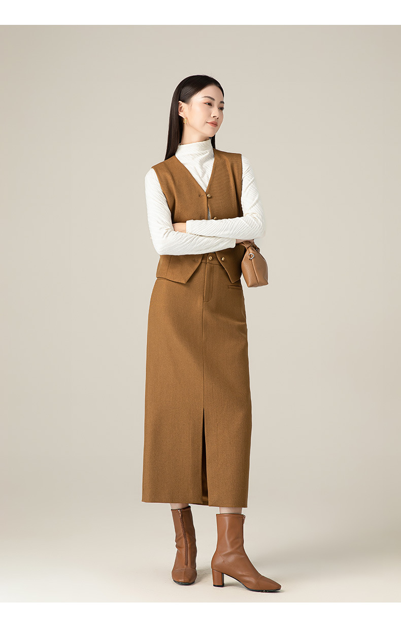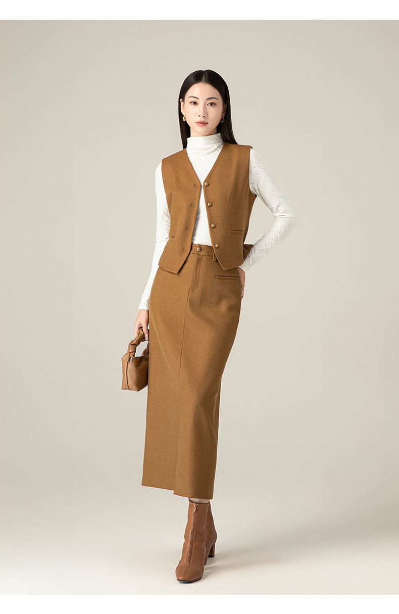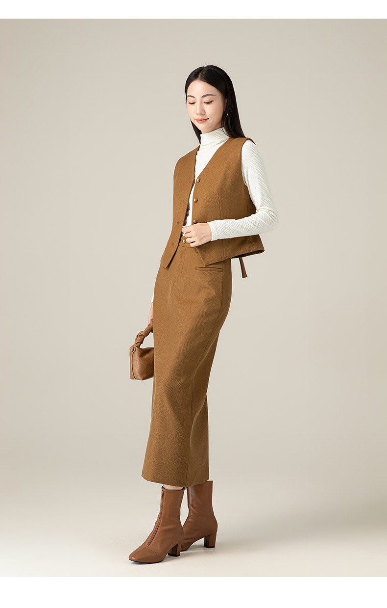Xinge City 라이트 럭셔리 울 올드 머니 스타일 세트 조끼 세트 여성의 2024 가을 겨울 마일라드웨어 세트