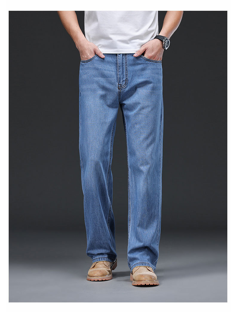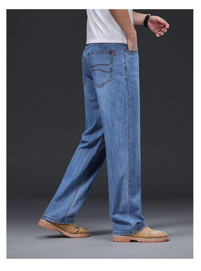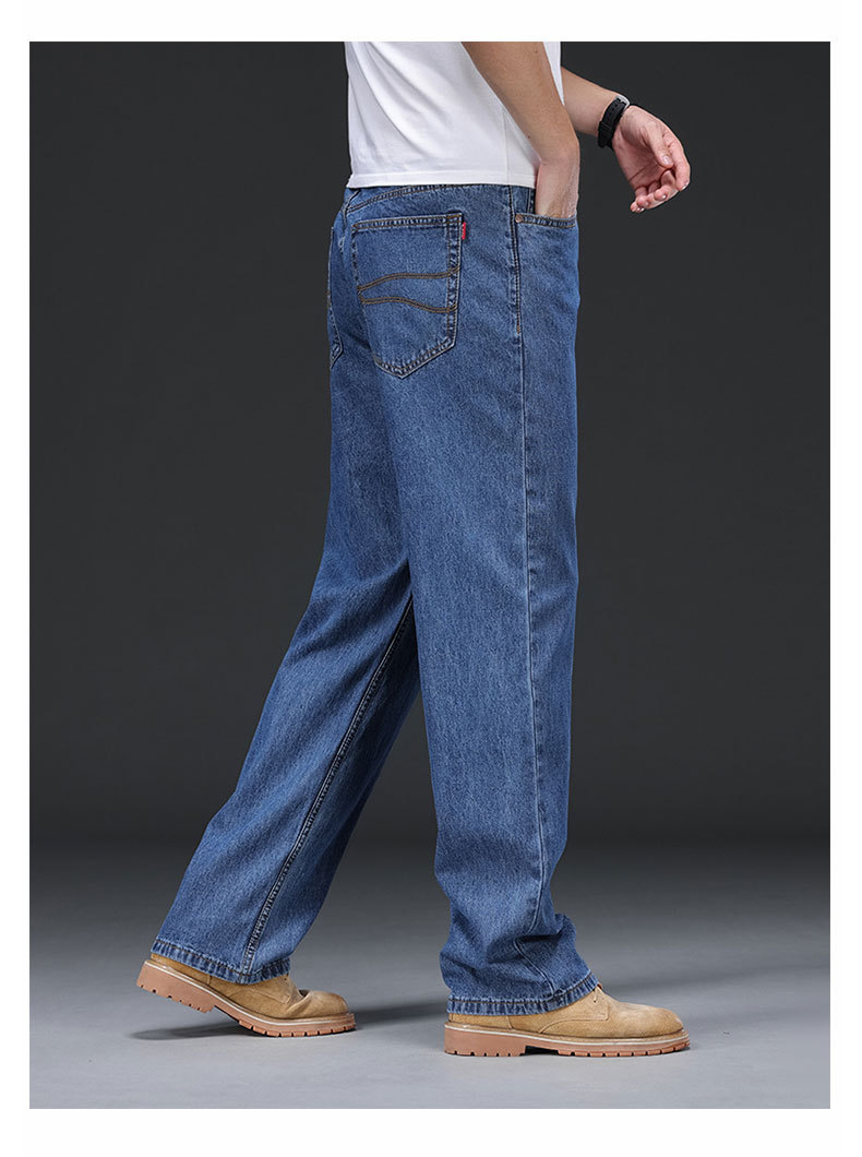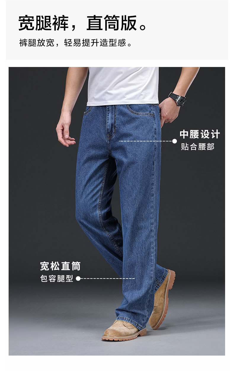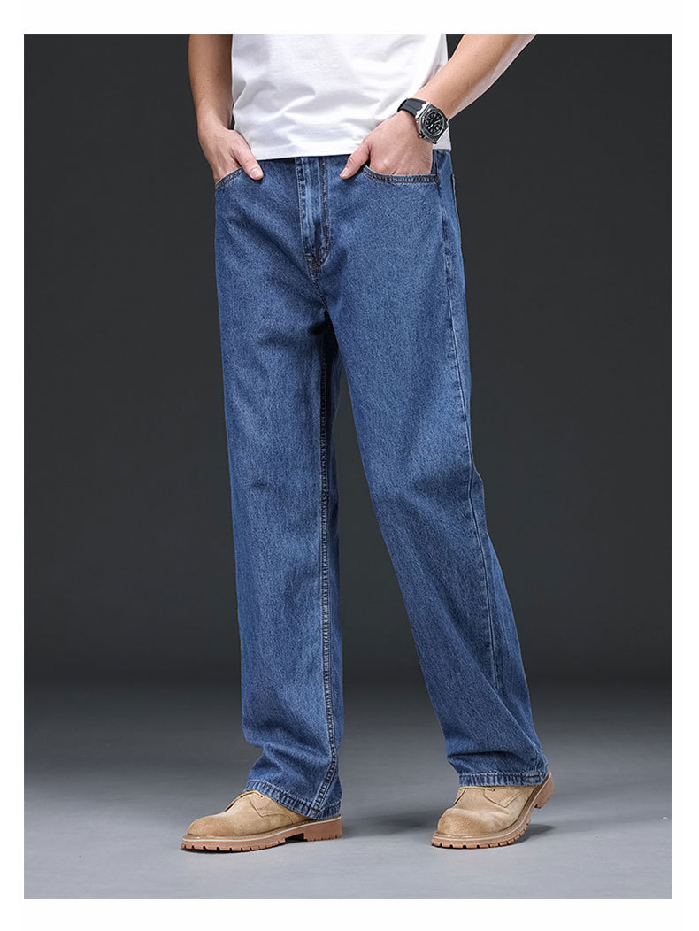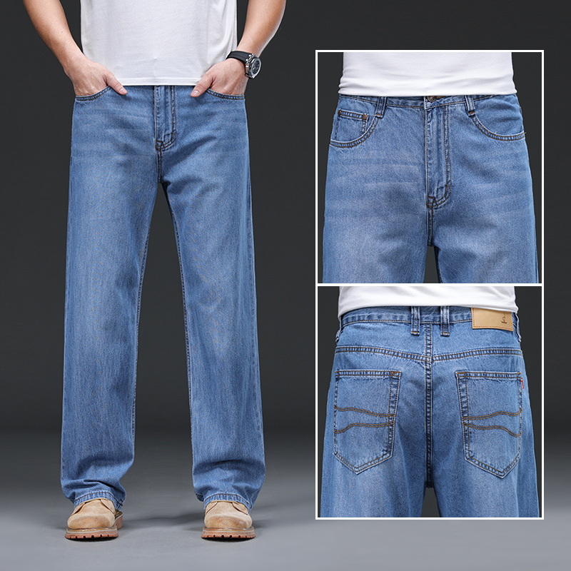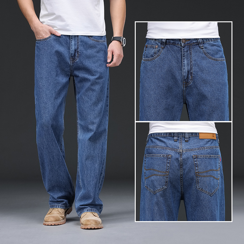 2024 여름 얇은 느슨한 직선 청바지 남자 넓은 다리 캐주얼 바지 남자 세척 쇠고기 바지 올매치스토어 가기