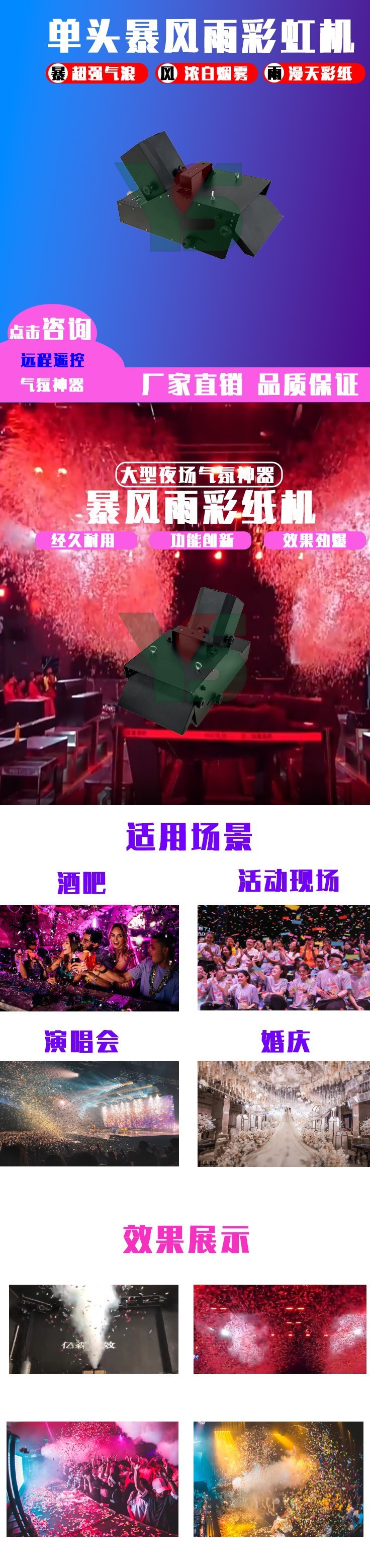 바 눈보라 색종이 기계 이산화탄소 단일 및 이중 레인보우 종이 부는 종이 분쇄기 무대 분위기 소품스토어 가기