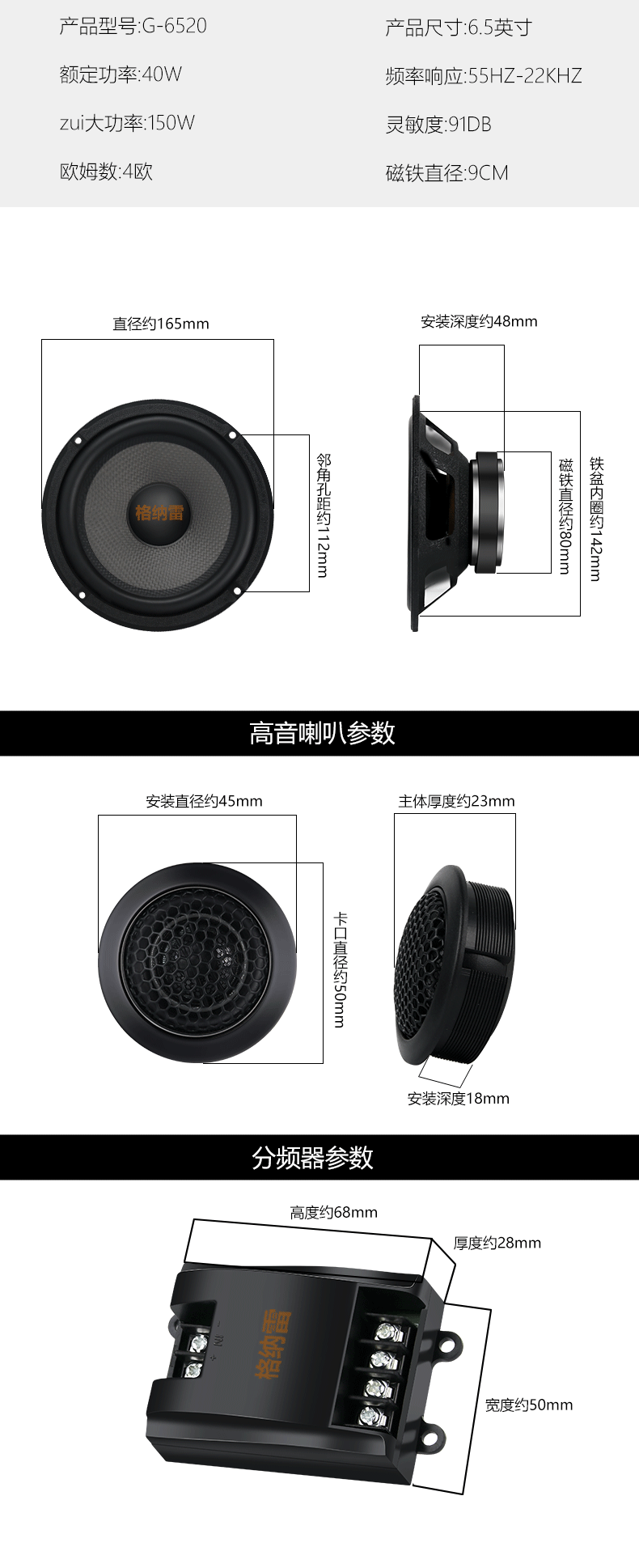 • 6.5inch 중저음 2개(쌍) + 개스킷 그릴 선물 팩