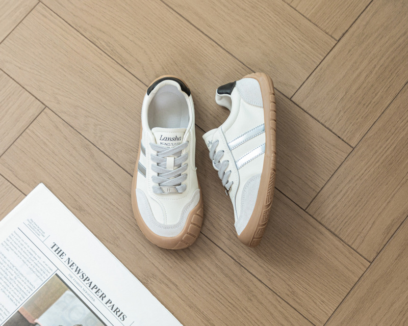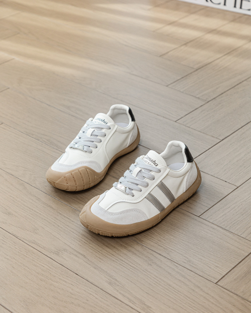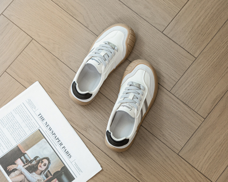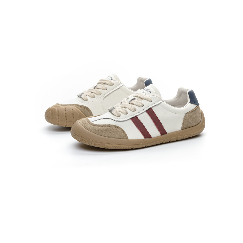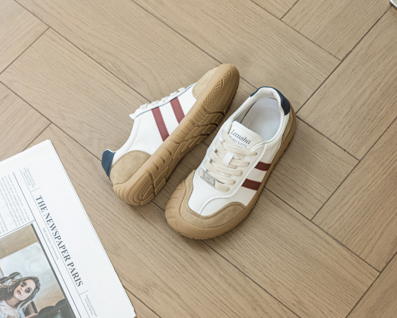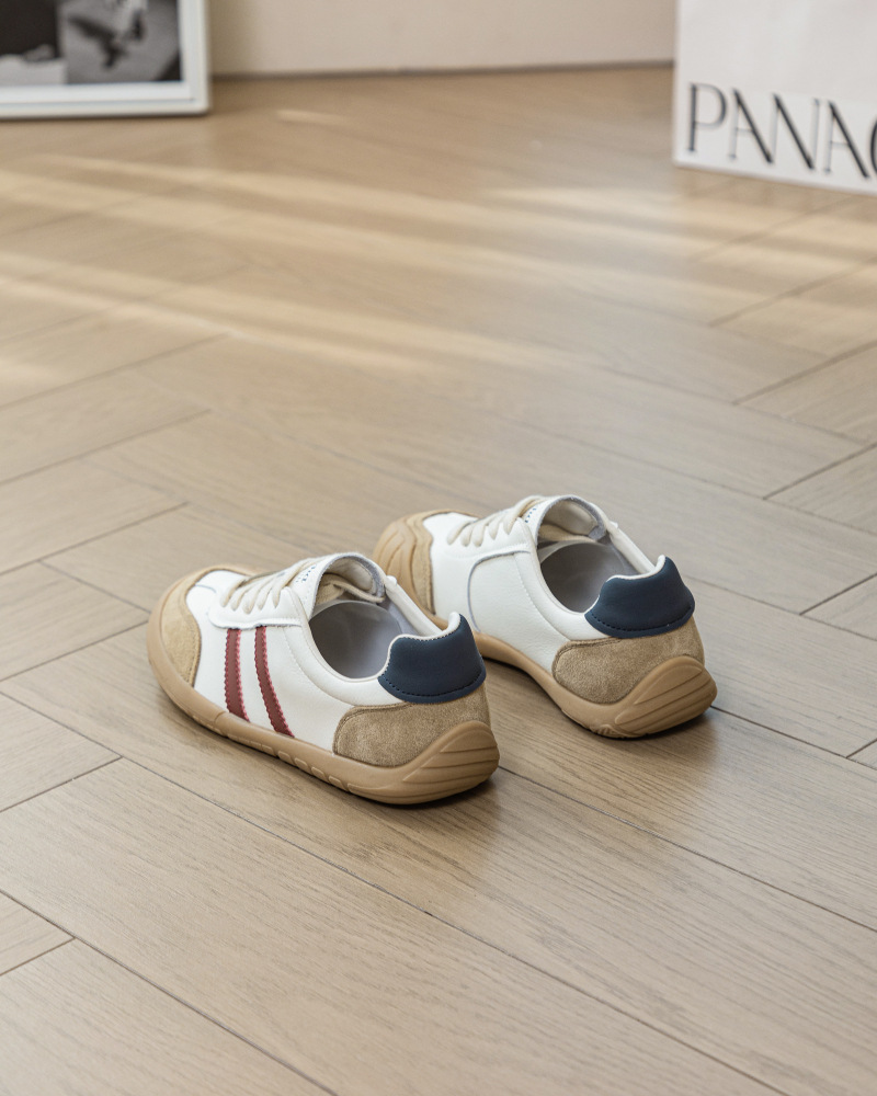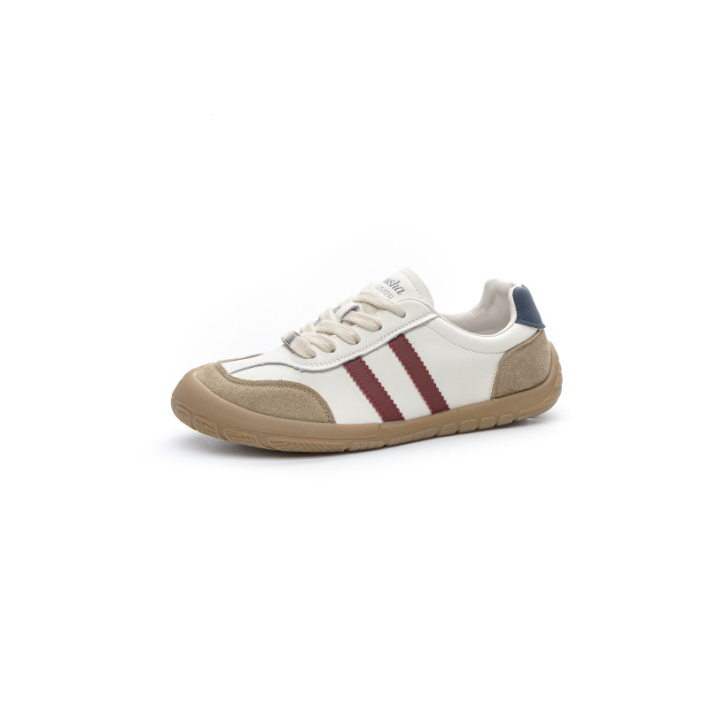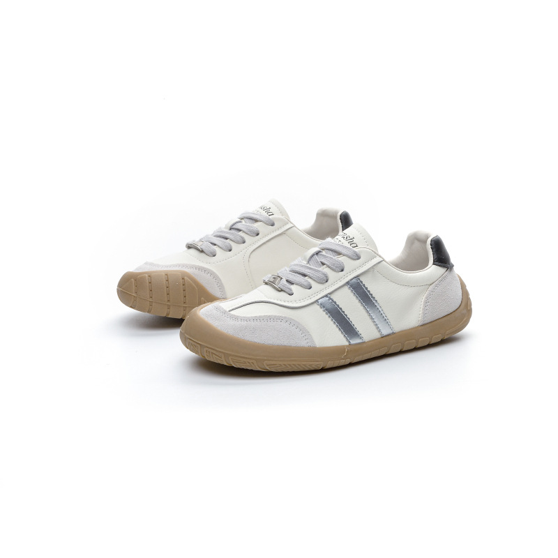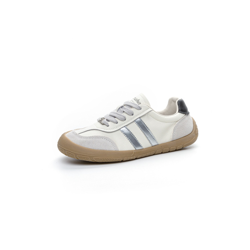 1층 소가죽 독일군 트레이닝 스타일 플랫 힐 스포츠 캐주얼 런닝화 여성용 2025년 신상 만능 아간 스니커즈 화이트 슈즈