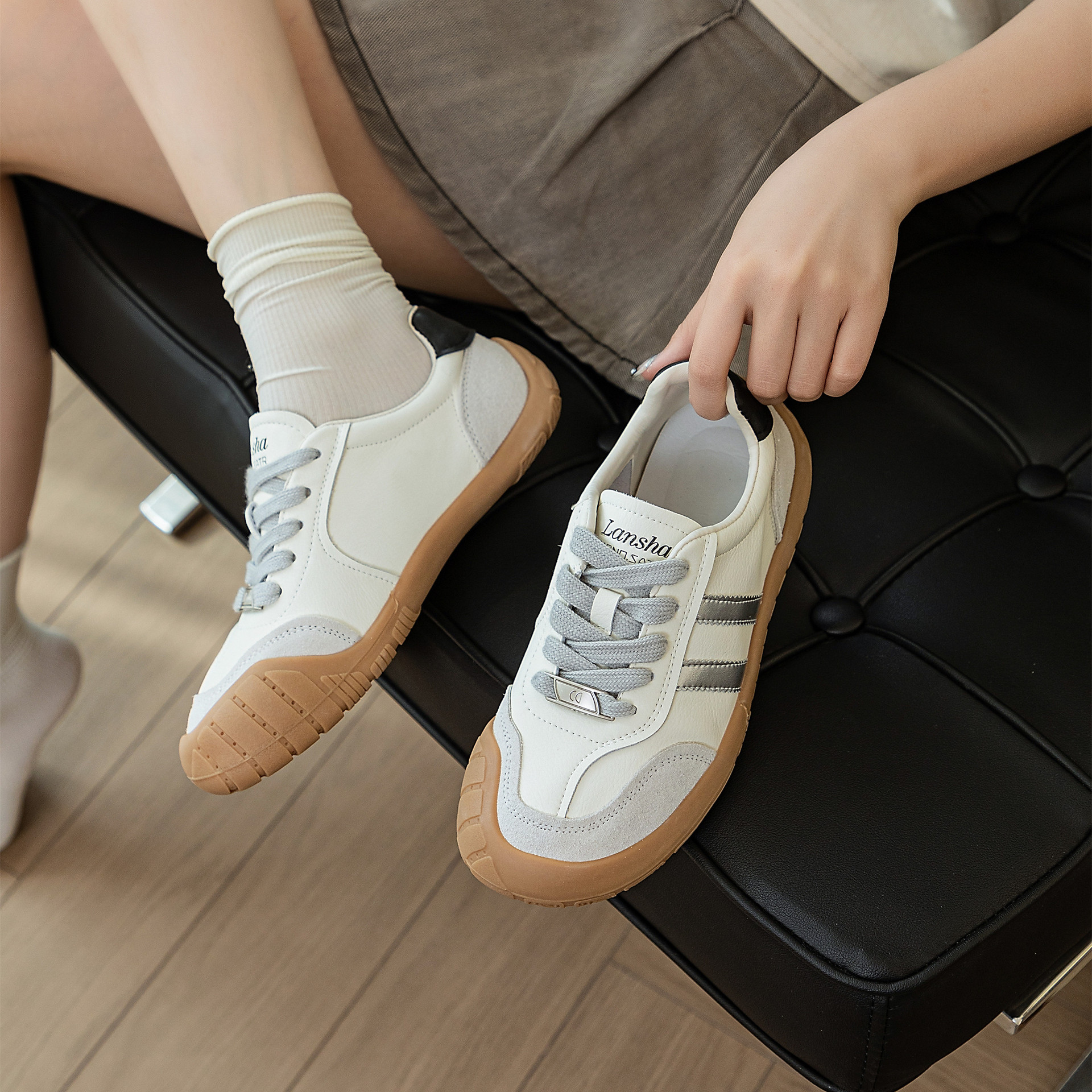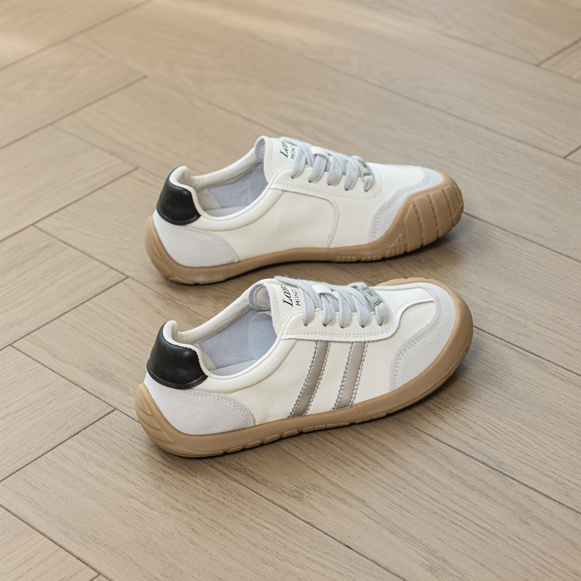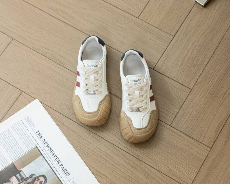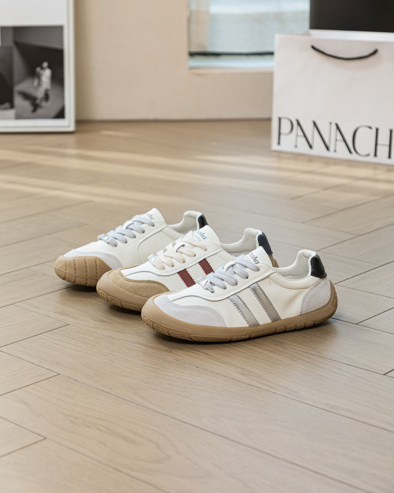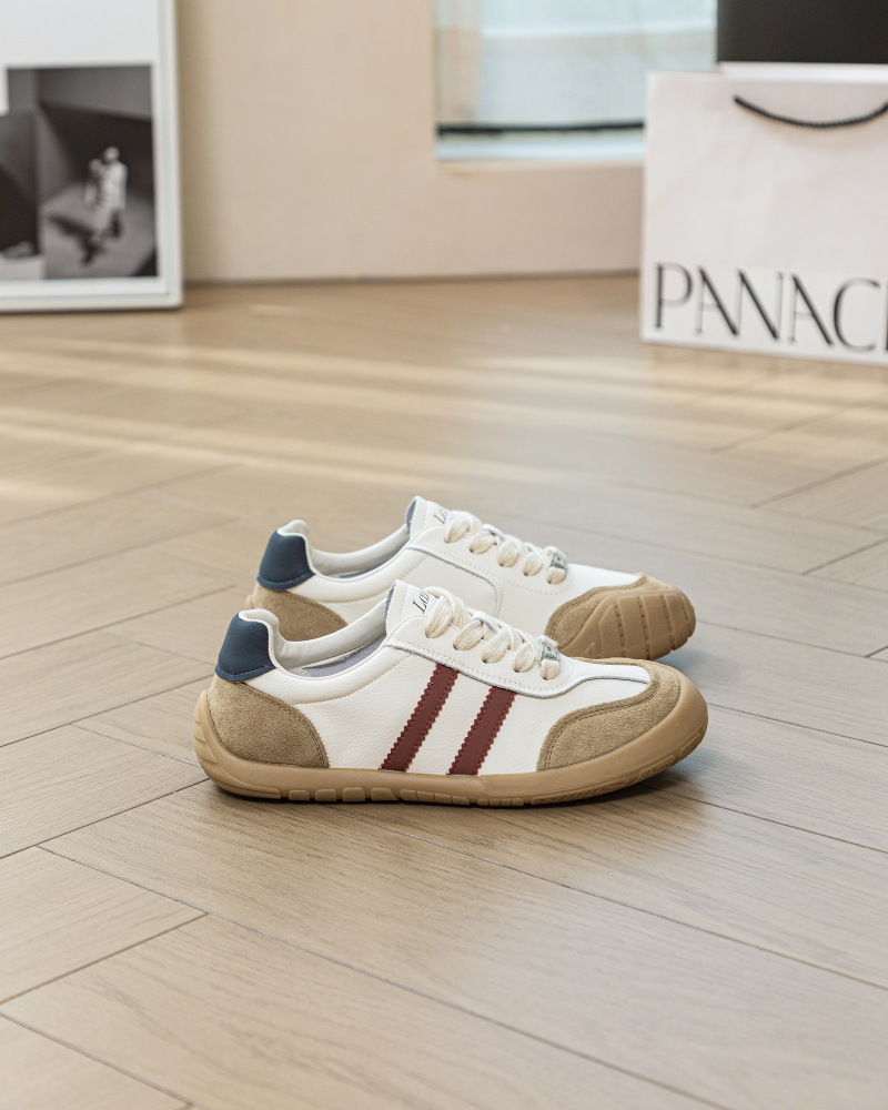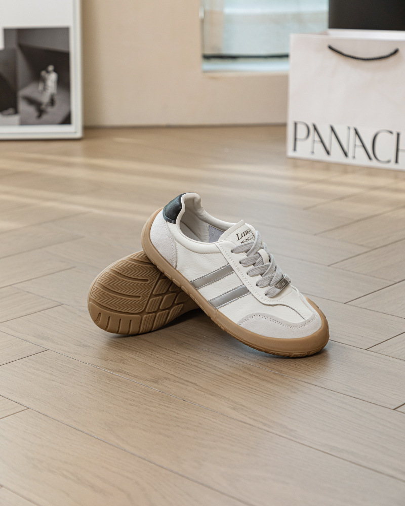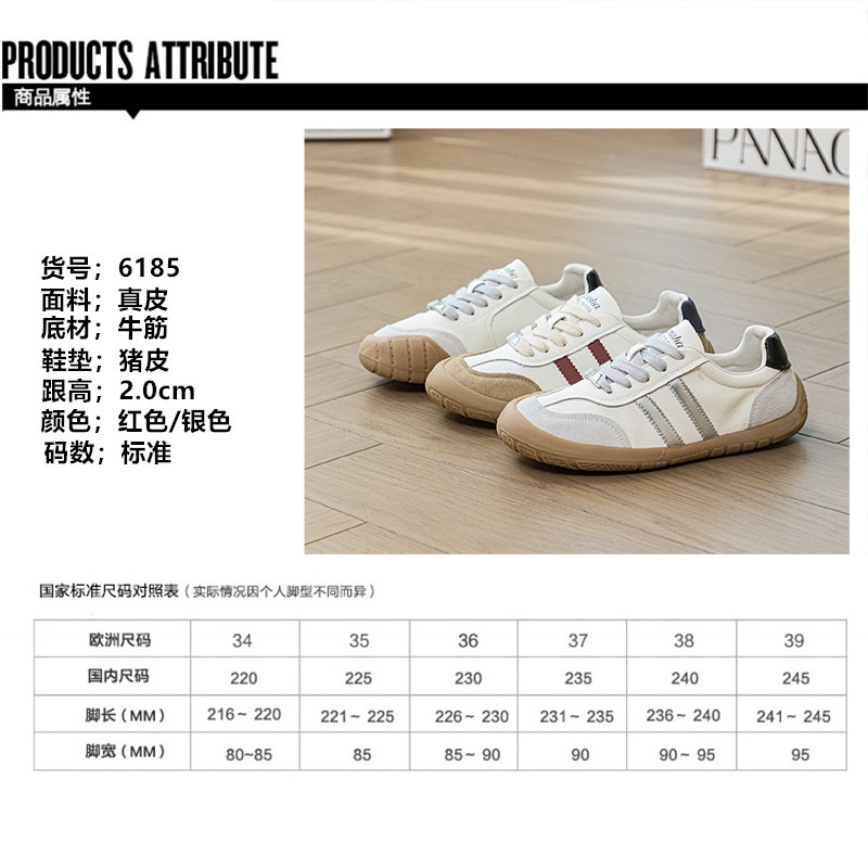 1층 소가죽 독일군 트레이닝 스타일 플랫 힐 스포츠 캐주얼 런닝화 여성용 2025년 신상 만능 아간 스니커즈 화이트 슈즈