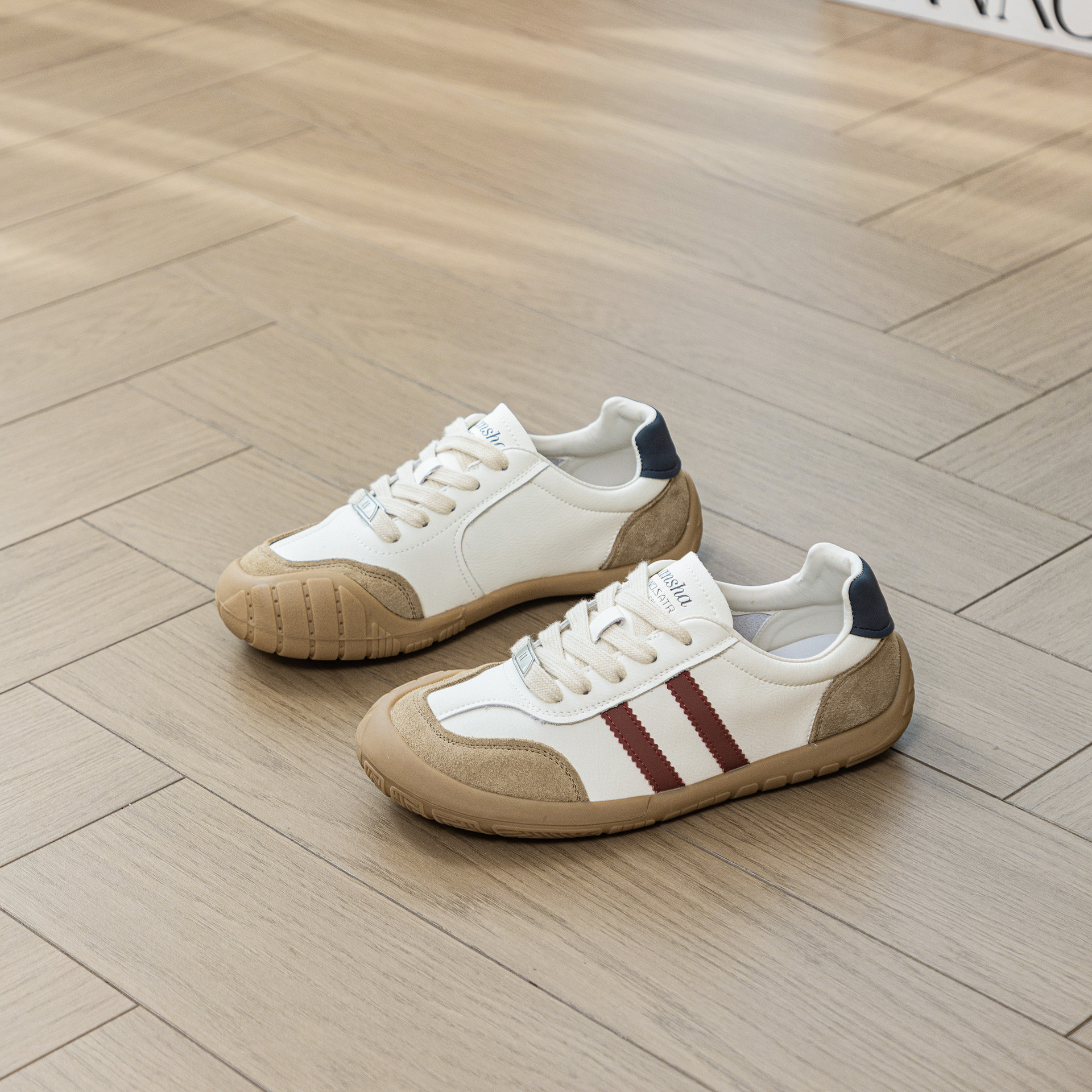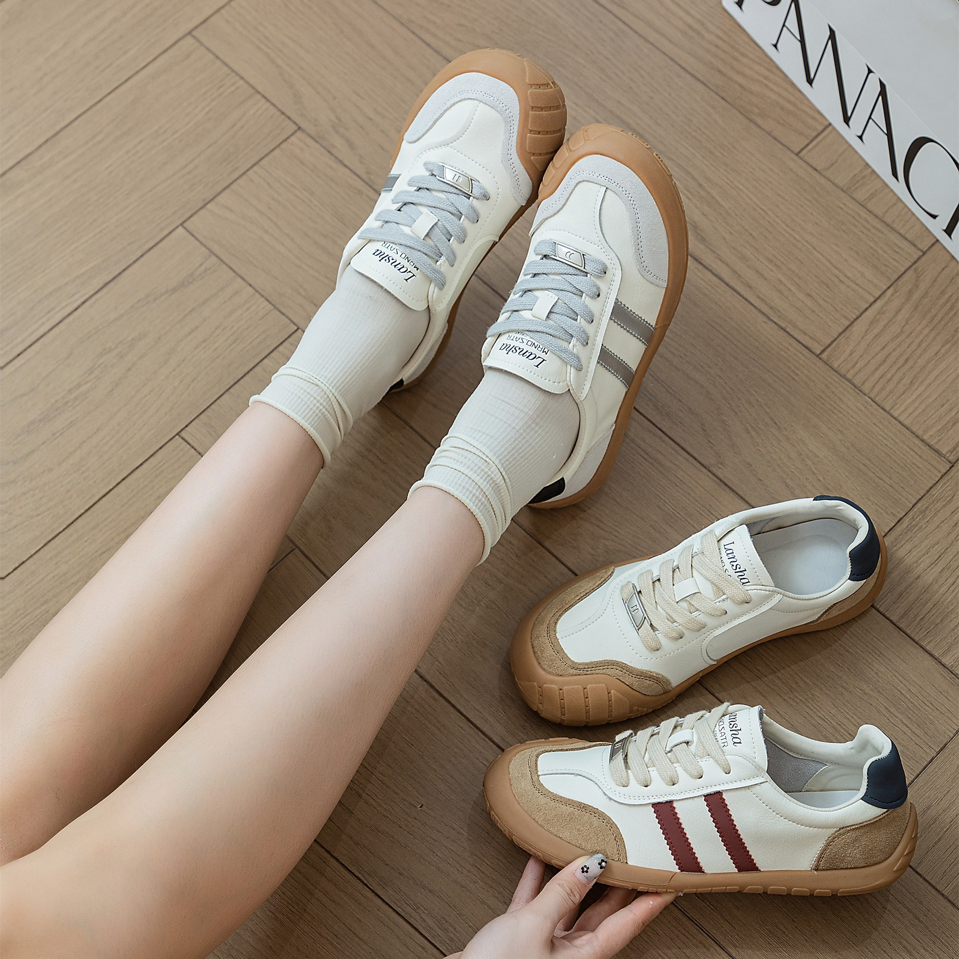 1층 소가죽 독일군 트레이닝 스타일 플랫 힐 스포츠 캐주얼 런닝화 여성용 2025년 신상 만능 아간 스니커즈 화이트 슈즈스토어 가기