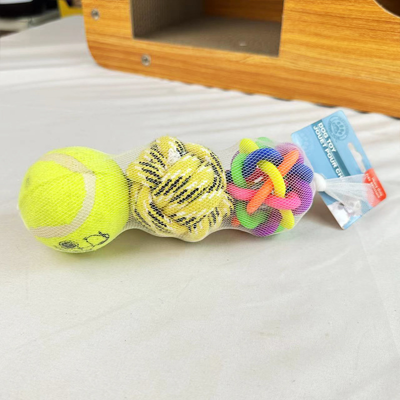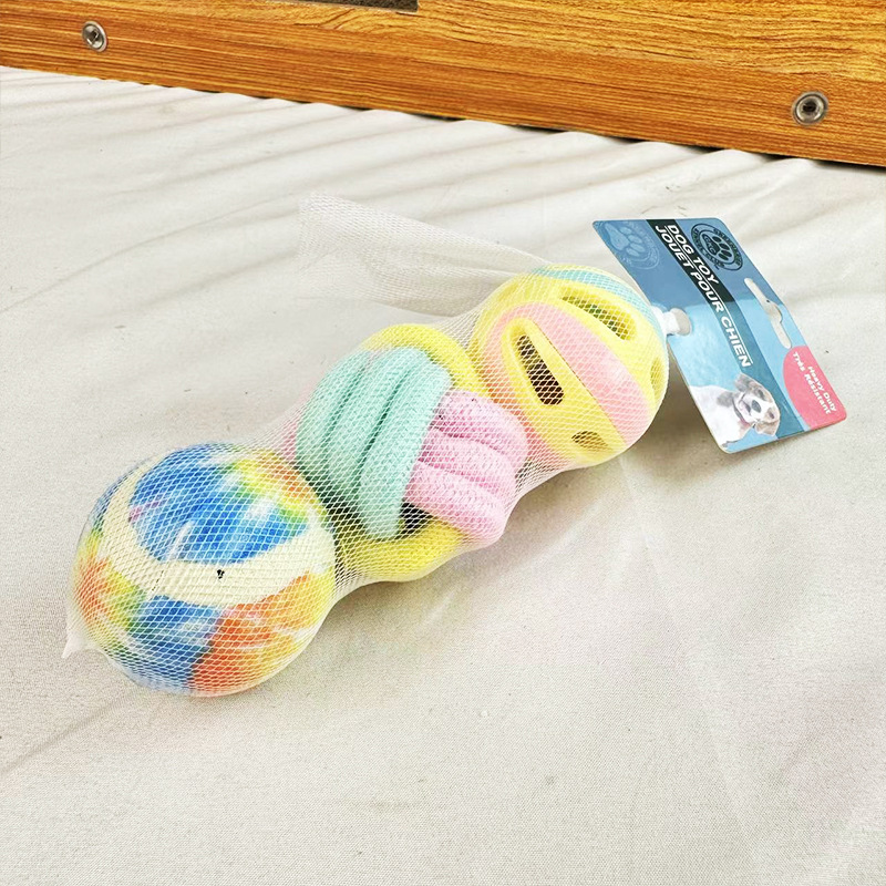 애완 동물 개 장난감 개 제품 조합 세트 물린 방지 코튼 로프 볼 벨 공 자기 구호 애완 동물 공스토어 가기