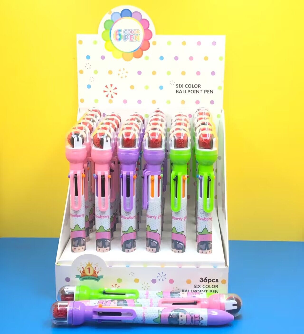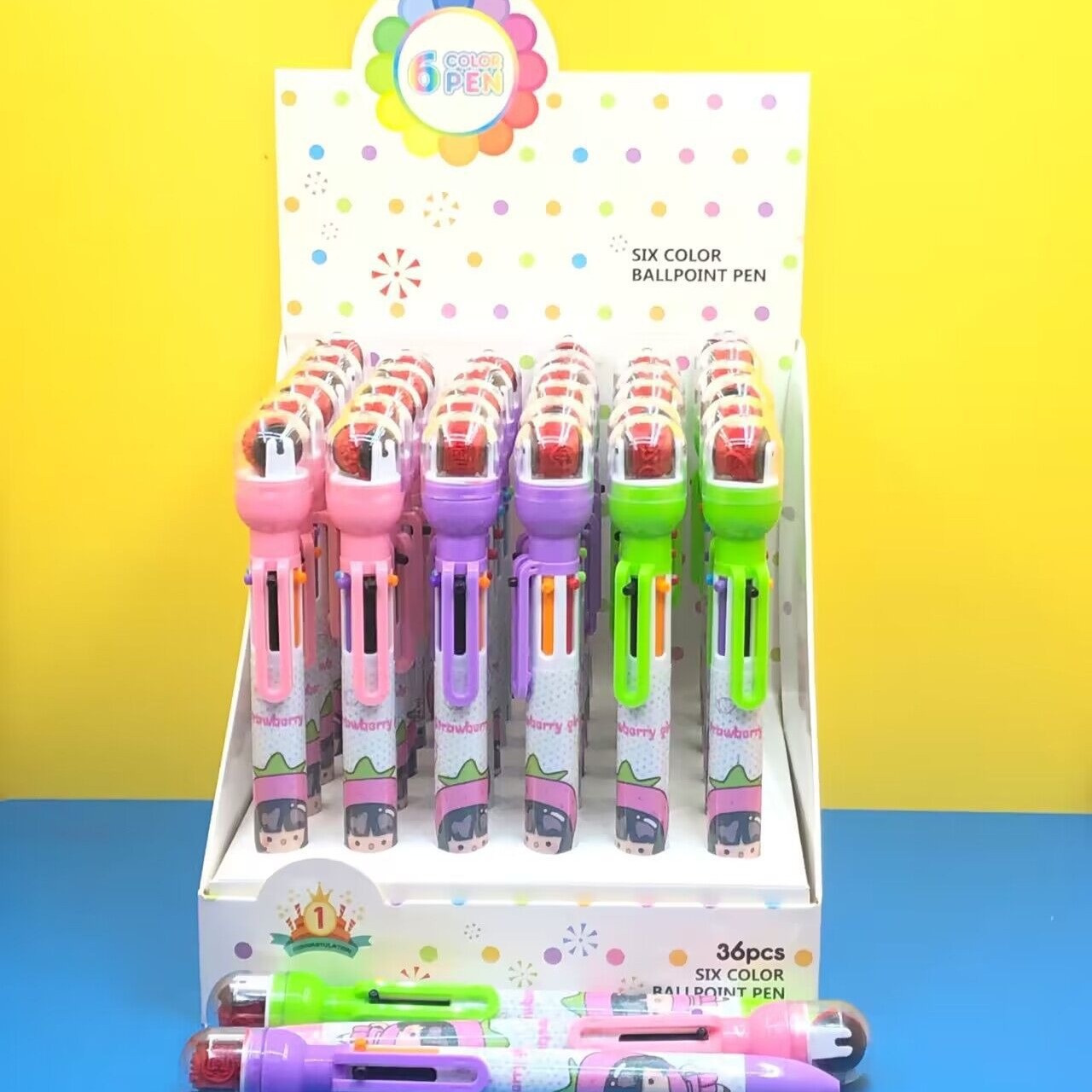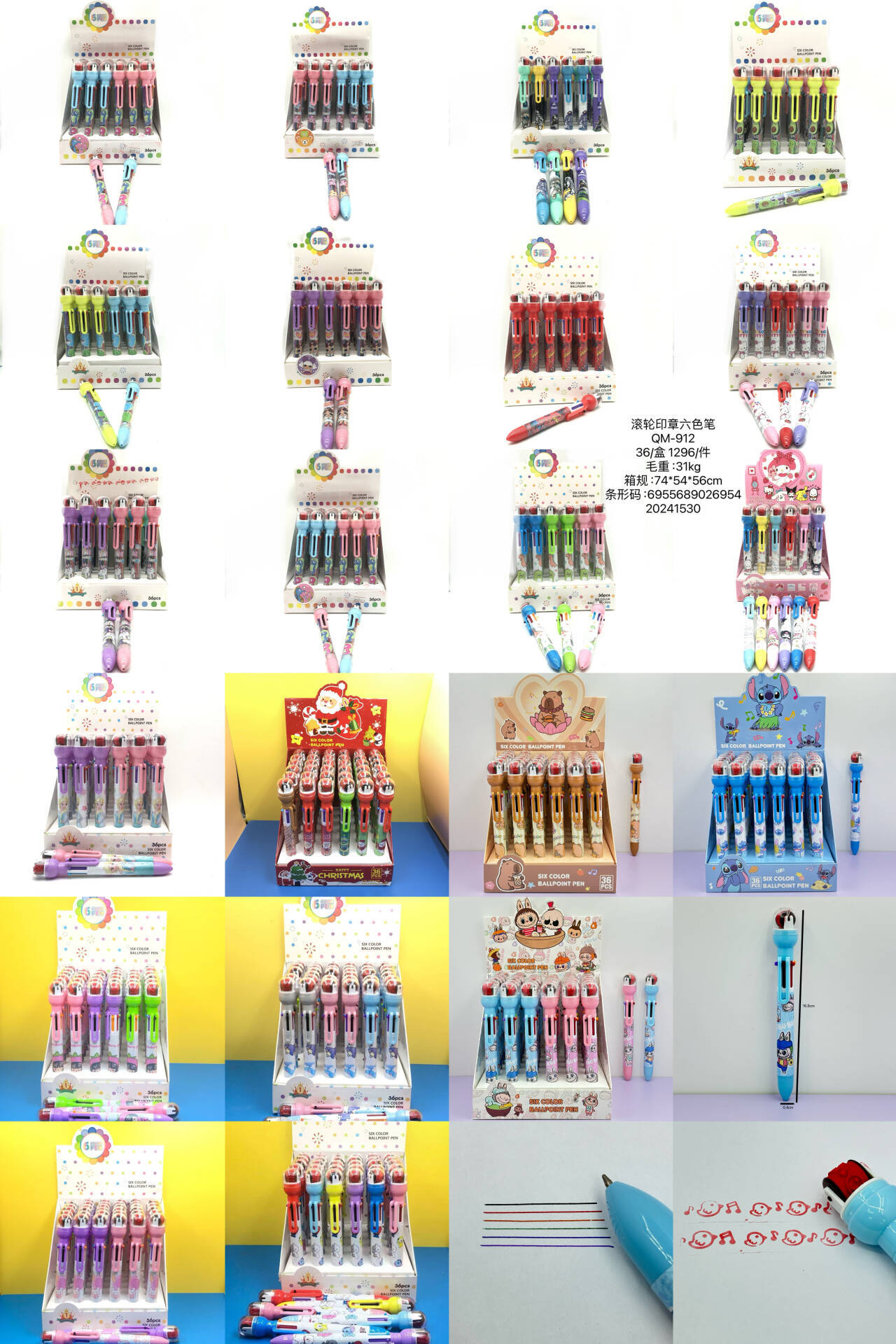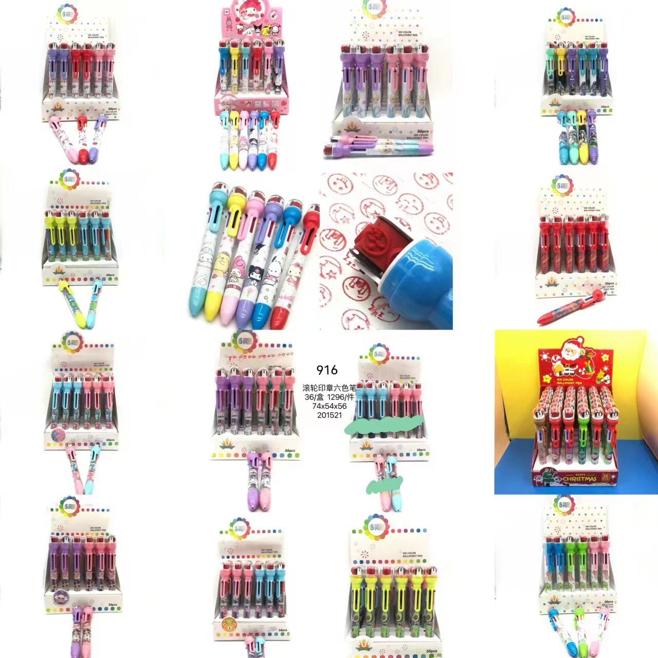 916 새로운 만화 롤러 씰 6 색 볼펜 이중 사용 학생 손 계정 노트 프레스 멀티 컬러 펜스토어 가기