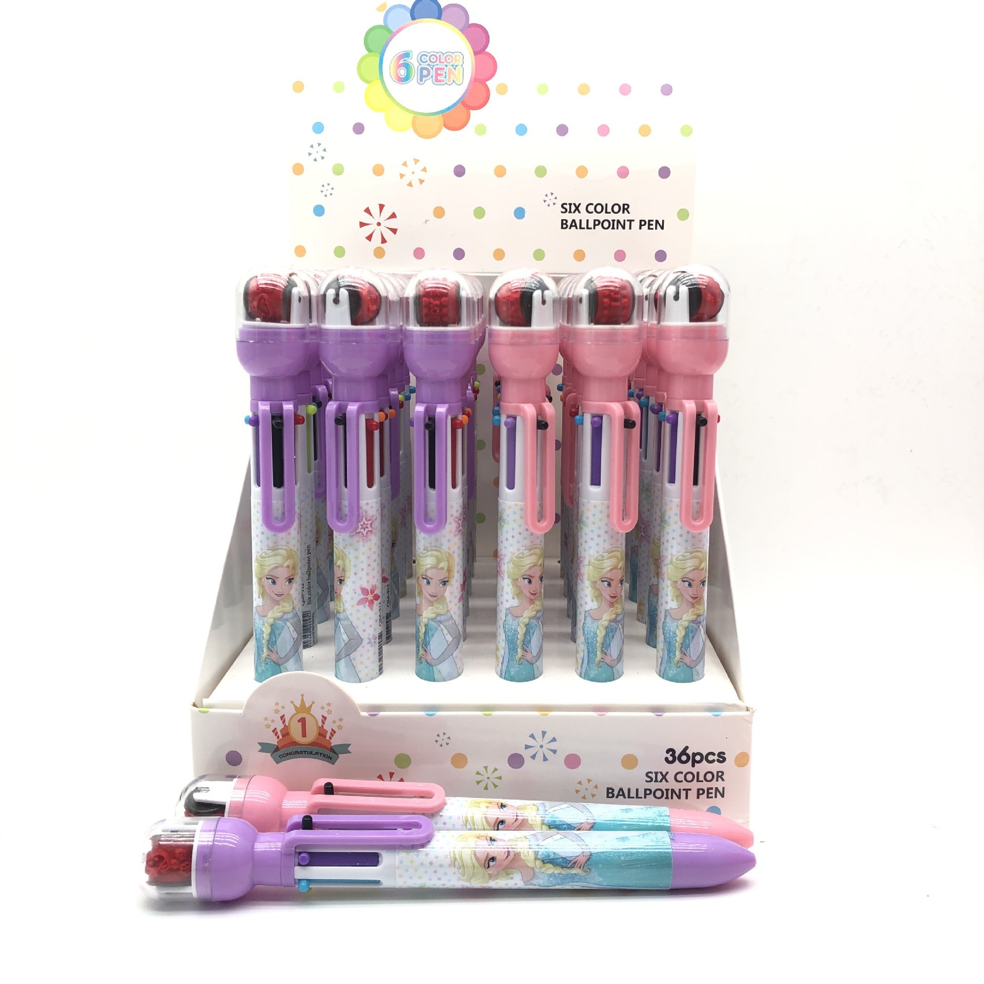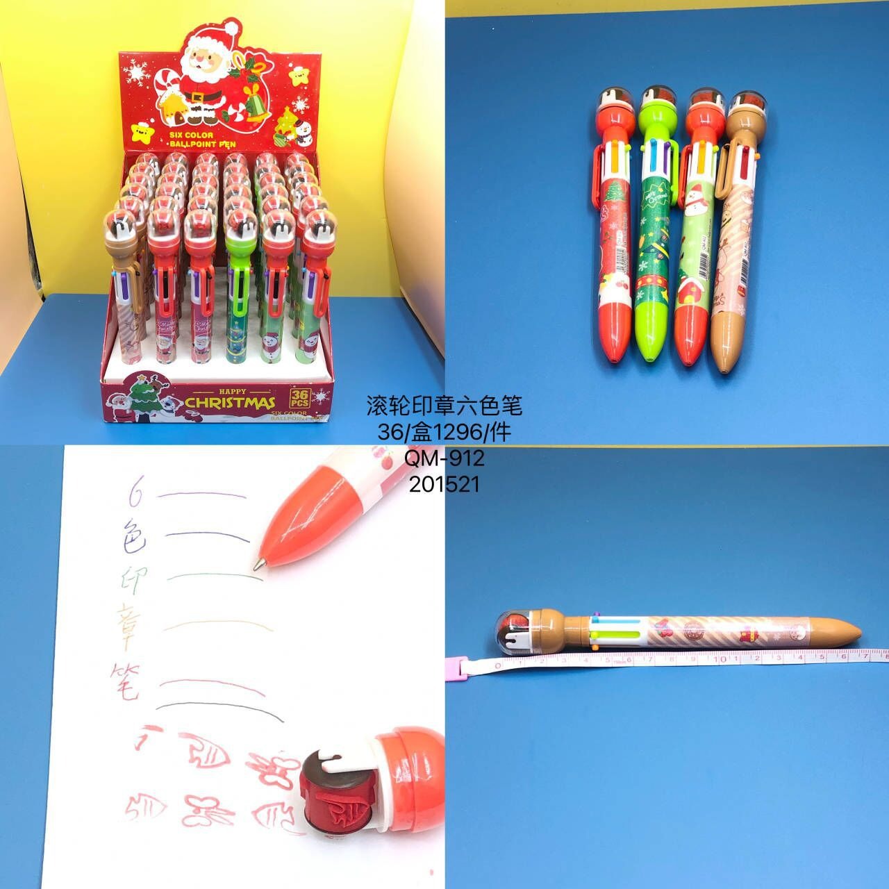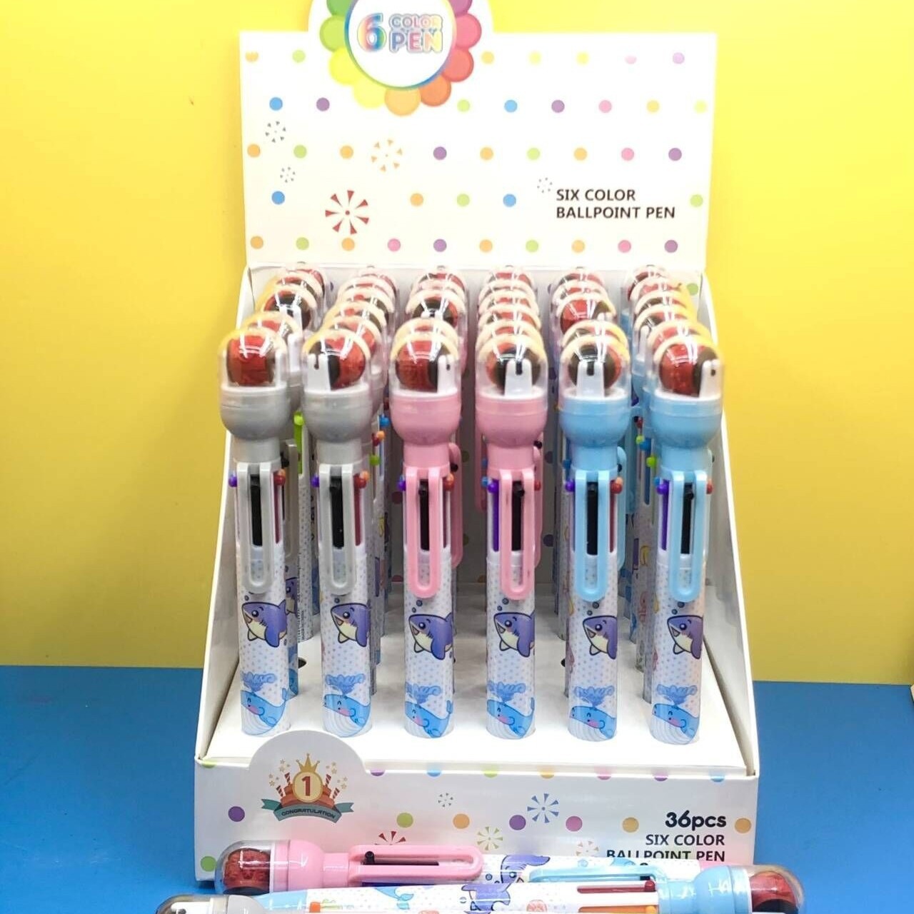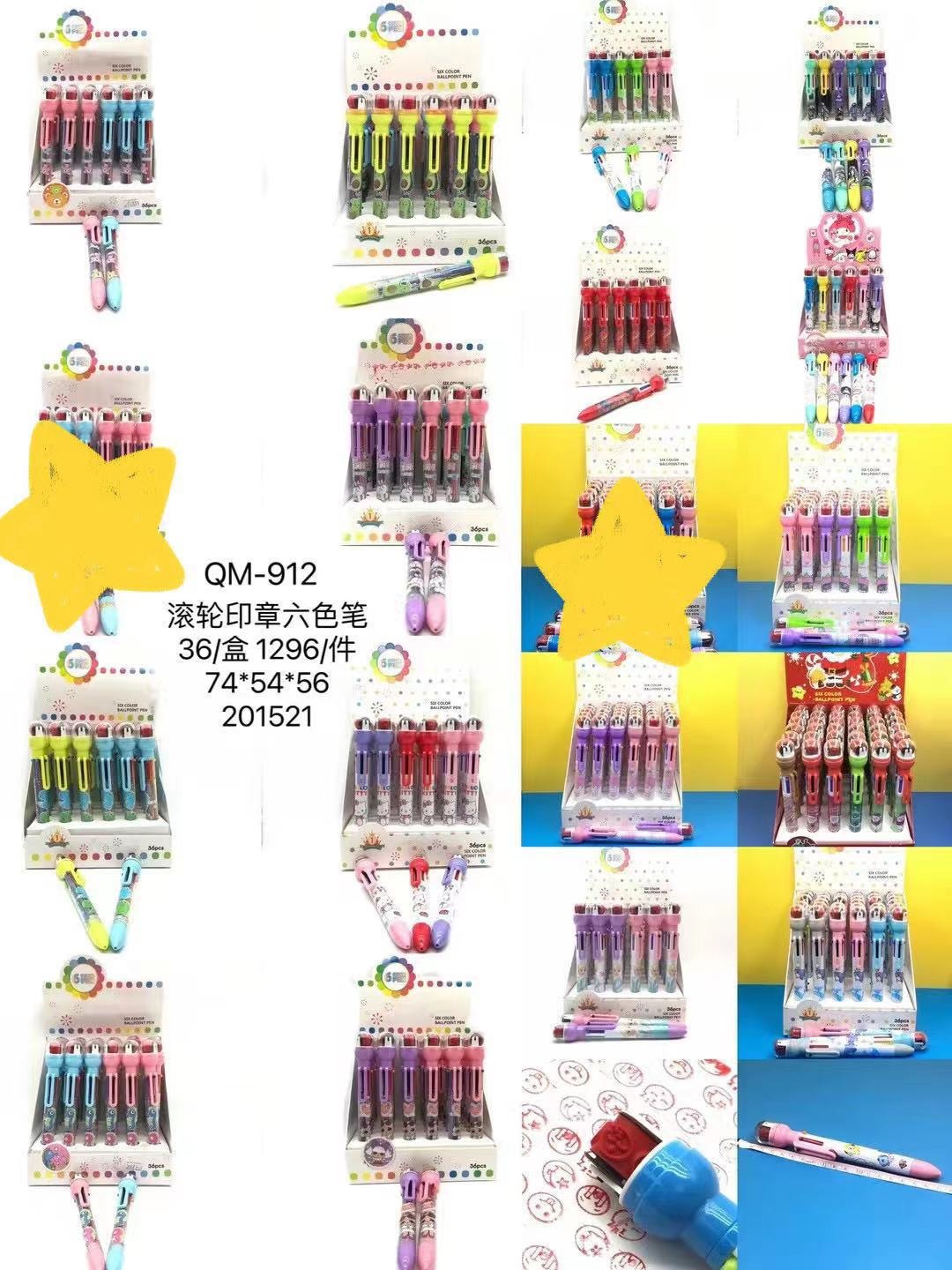 916 새로운 만화 롤러 씰 6 색 볼펜 이중 사용 학생 손 계정 노트 프레스 멀티 컬러 펜