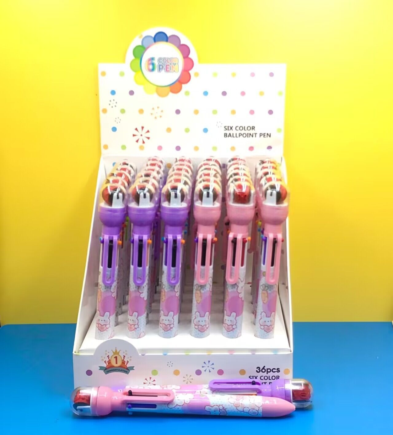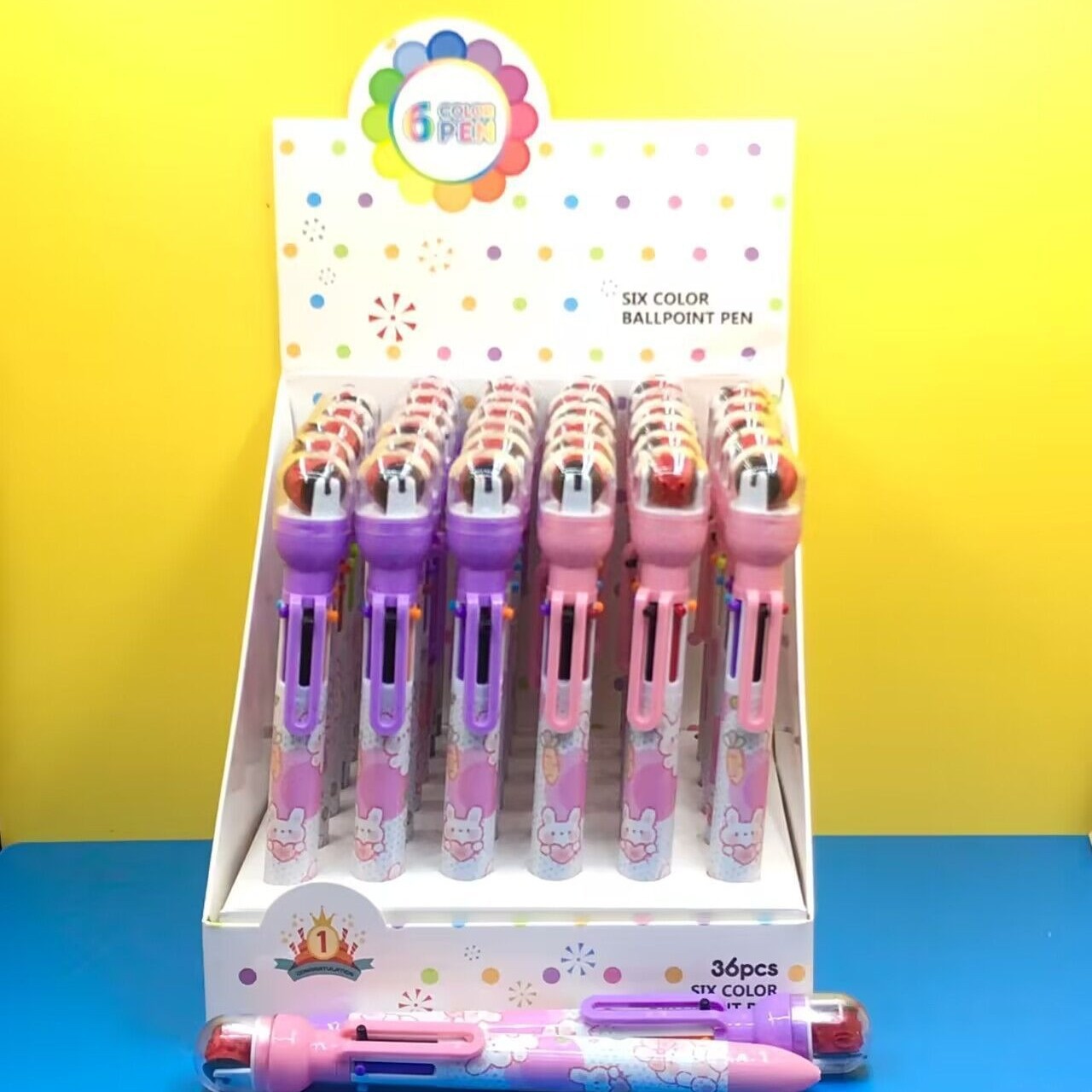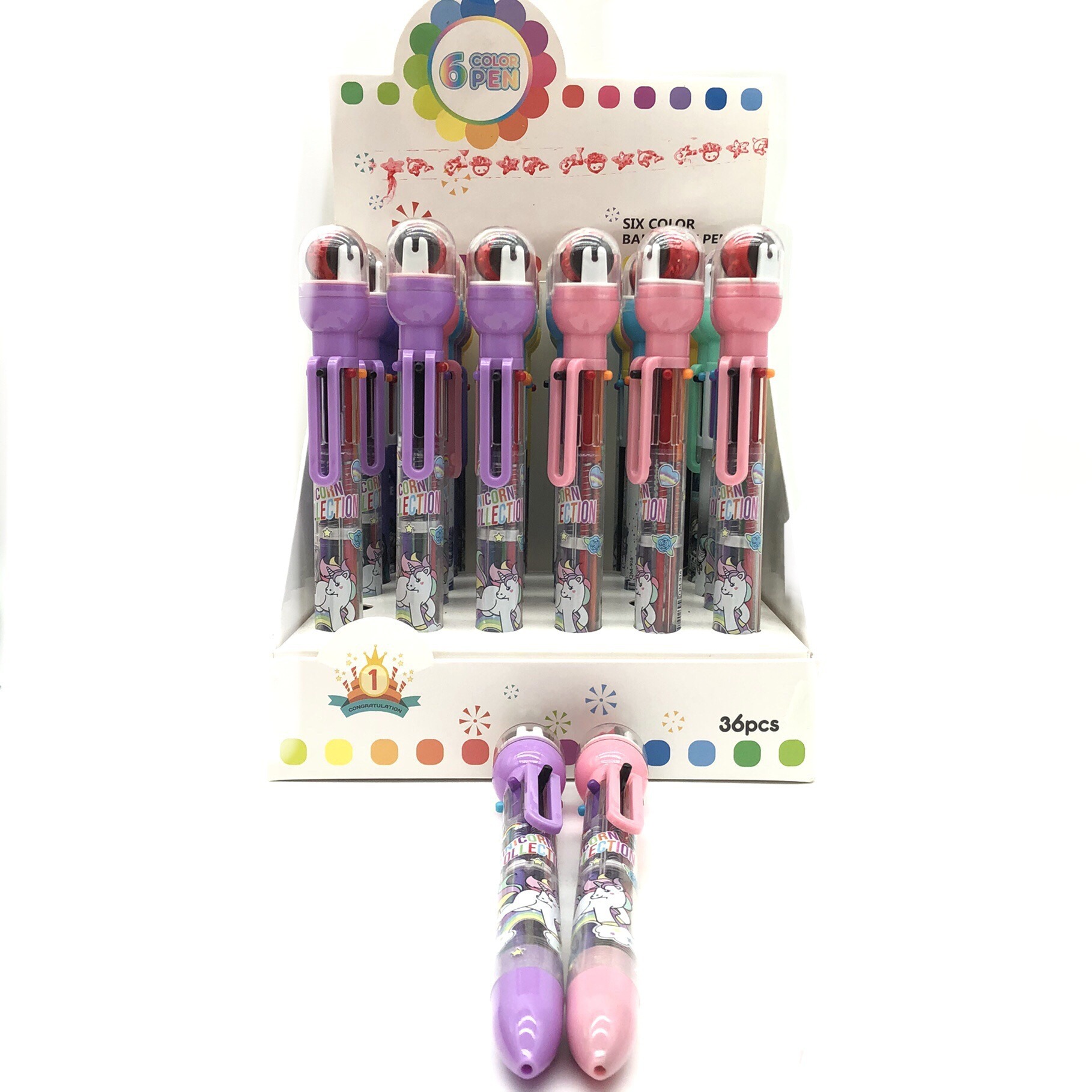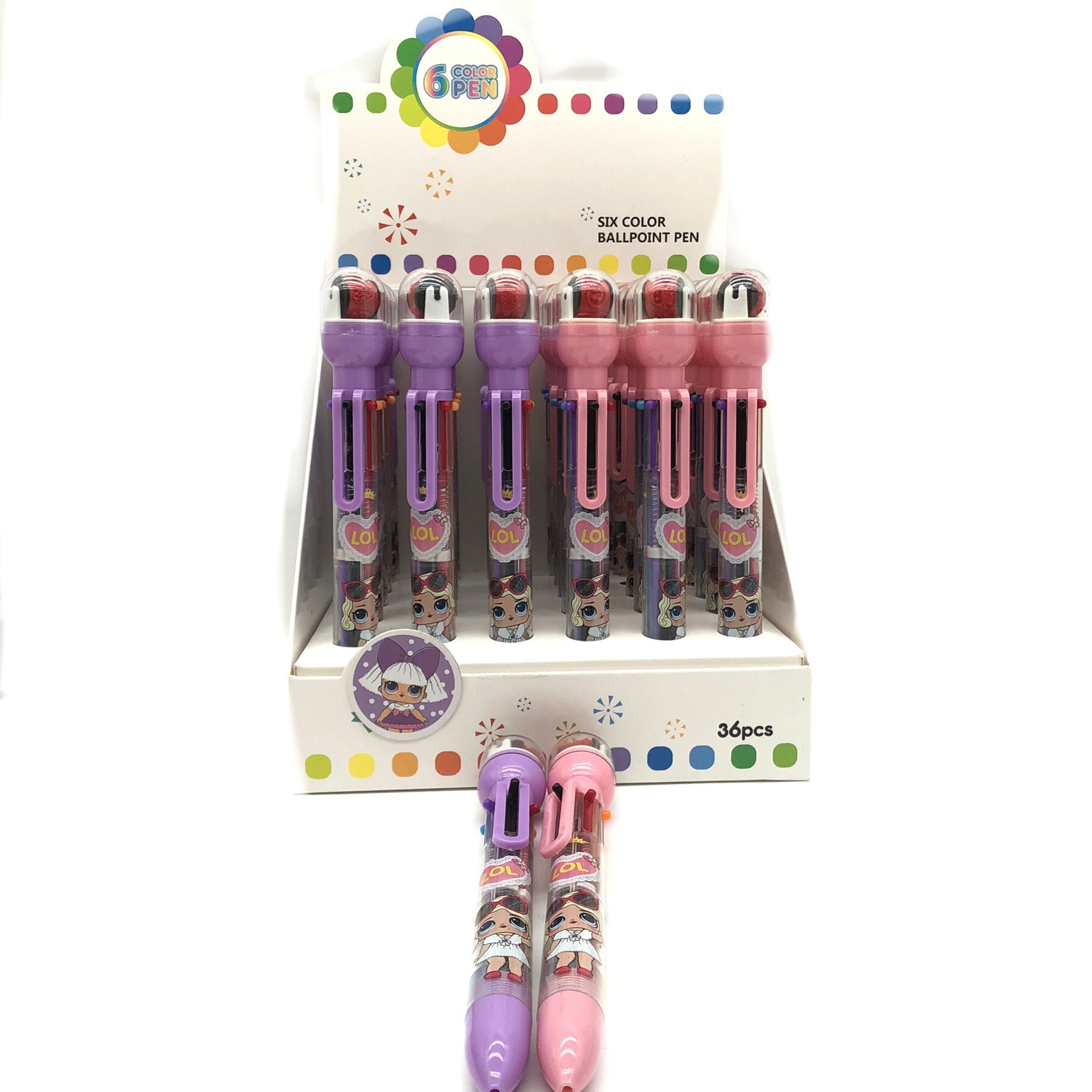 916 새로운 만화 롤러 씰 6 색 볼펜 이중 사용 학생 손 계정 노트 프레스 멀티 컬러 펜