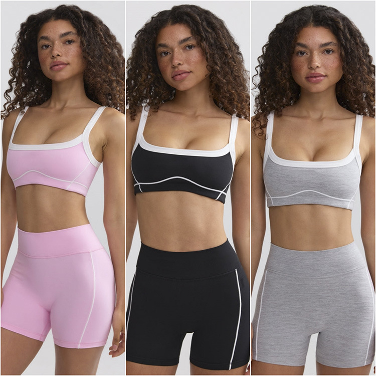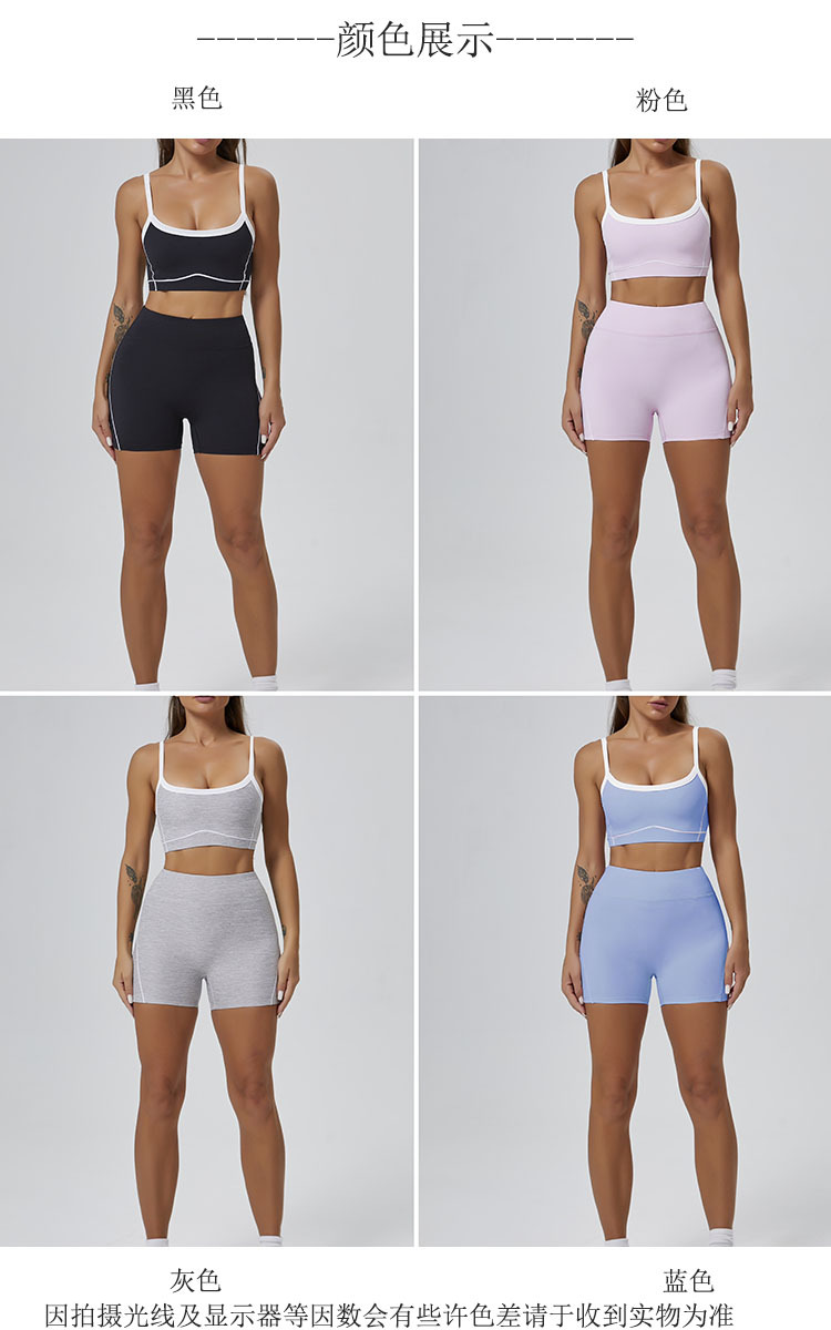 국경을 넘나드는 누드 컬러 대비 아름다운 등 요가 브라 탄력 있고 속건성 스포츠 엉덩이 리프팅 반바지 러닝 피트니스 조끼 세트