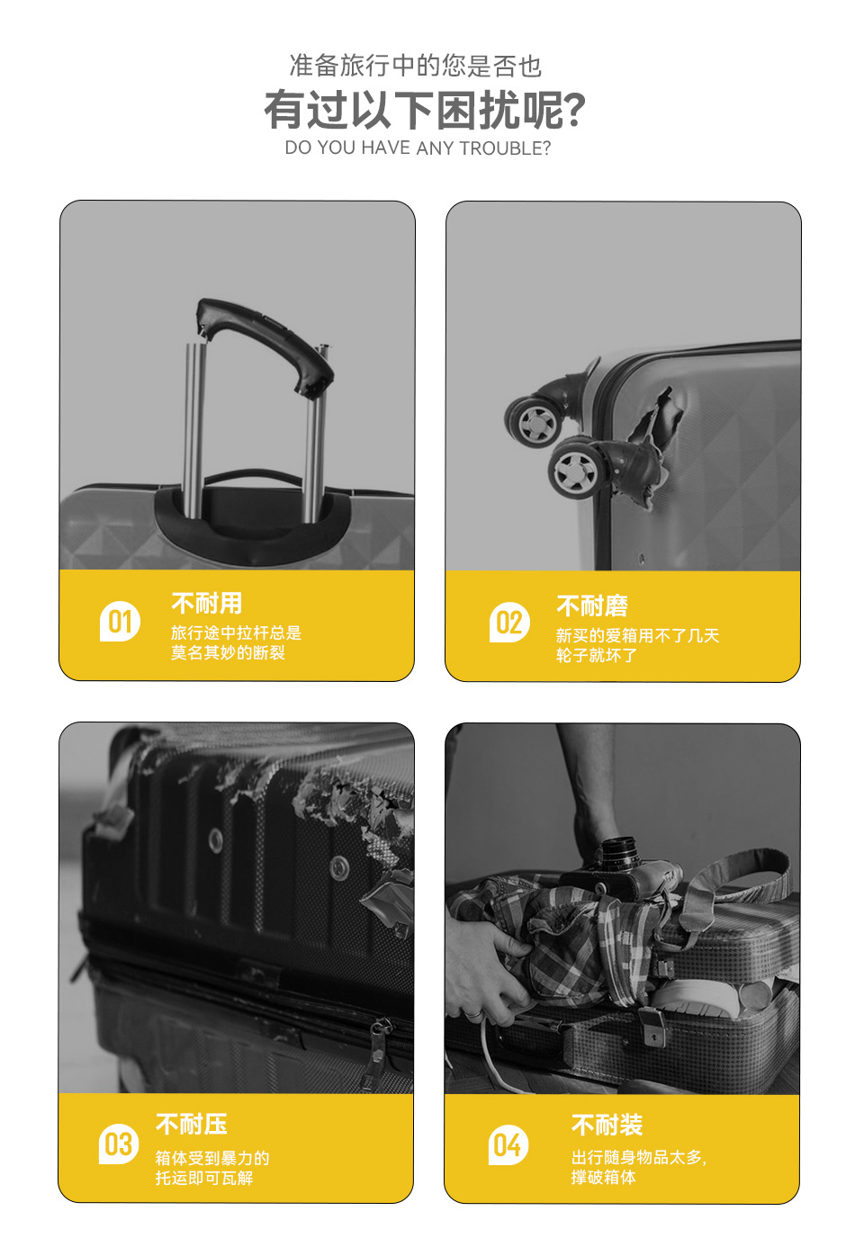 3.本厂承接各种定制箱包,欢迎咨询,材质目前有PP,PC,ABS+PC,铝框,皮质;支持各色图案,Logo定制,提供免费设计