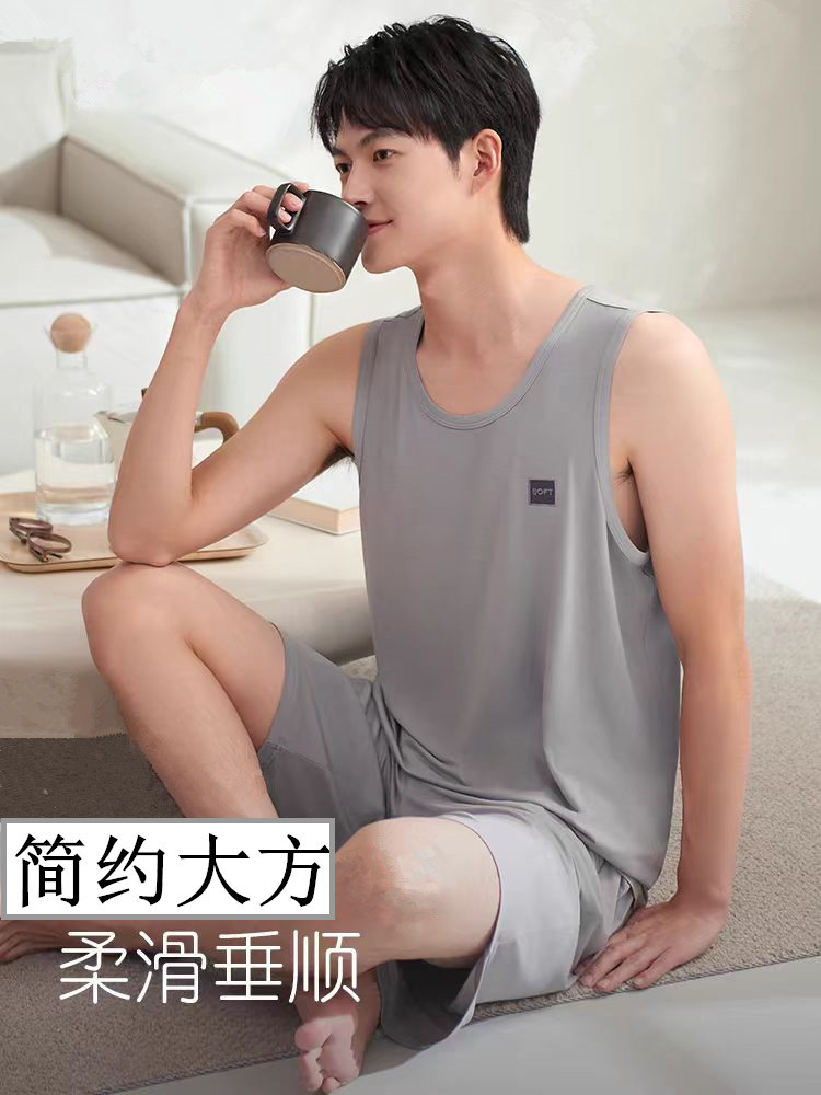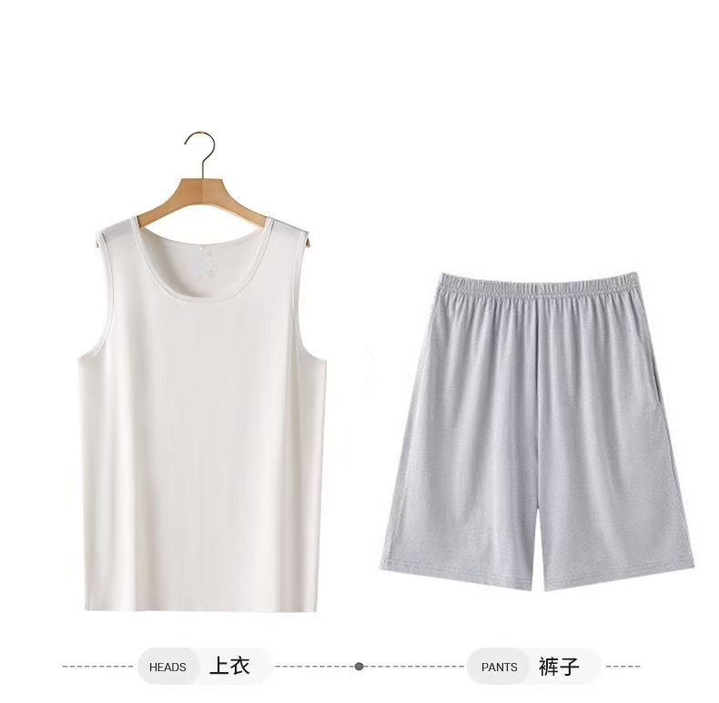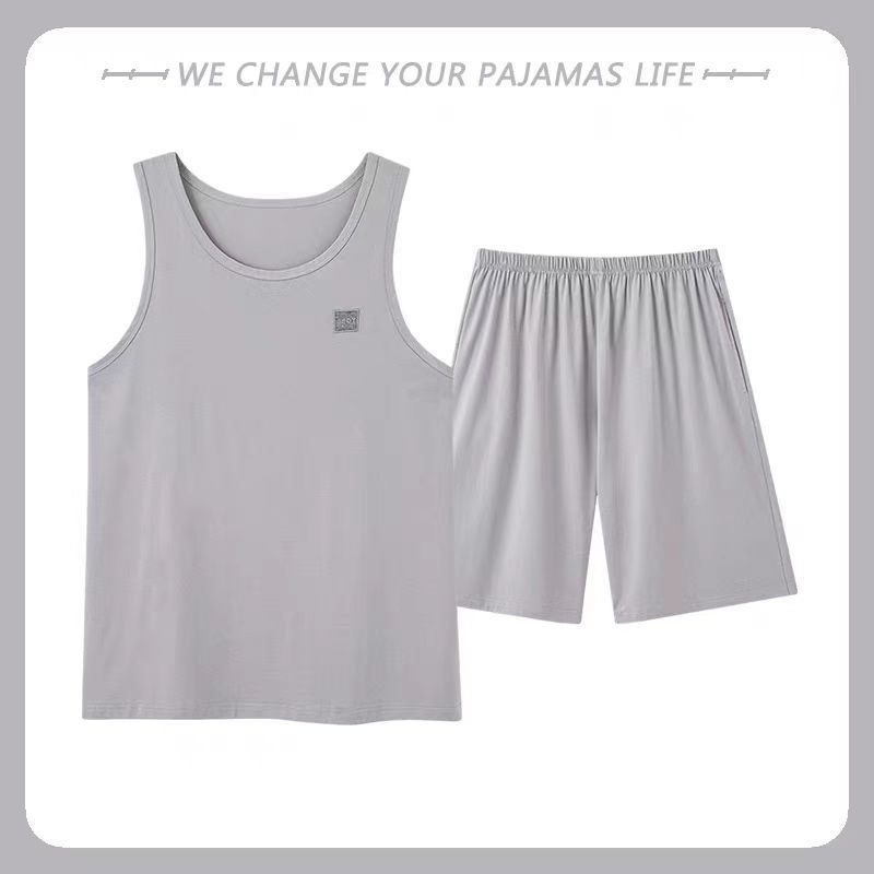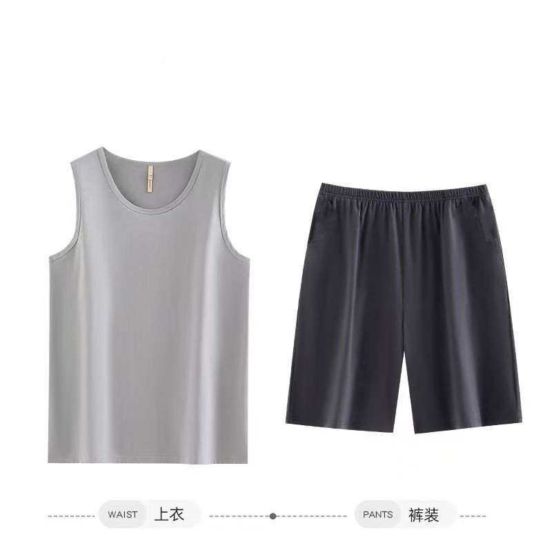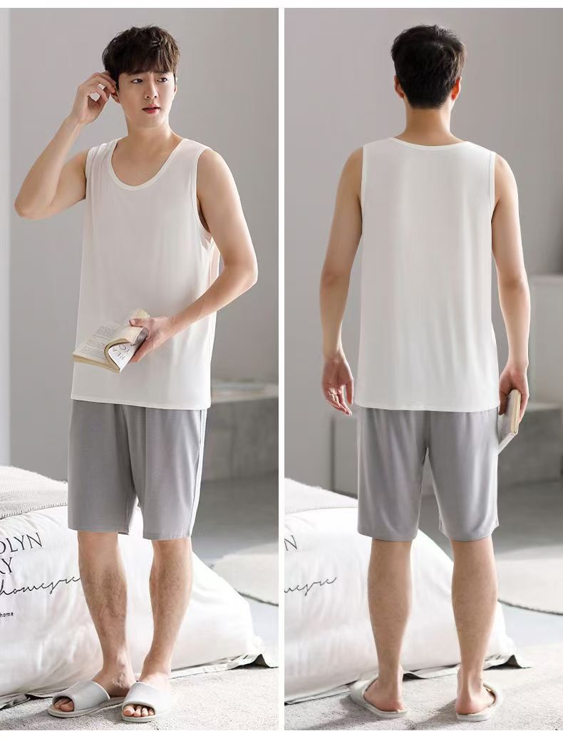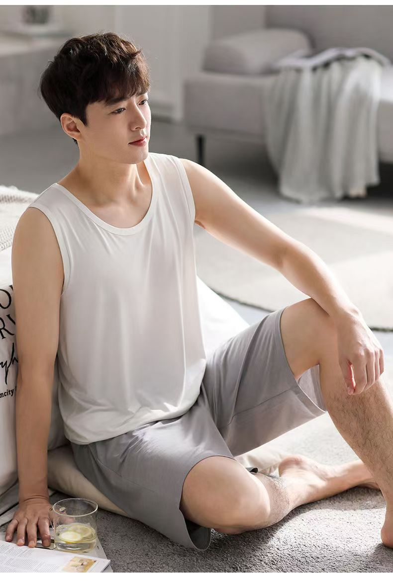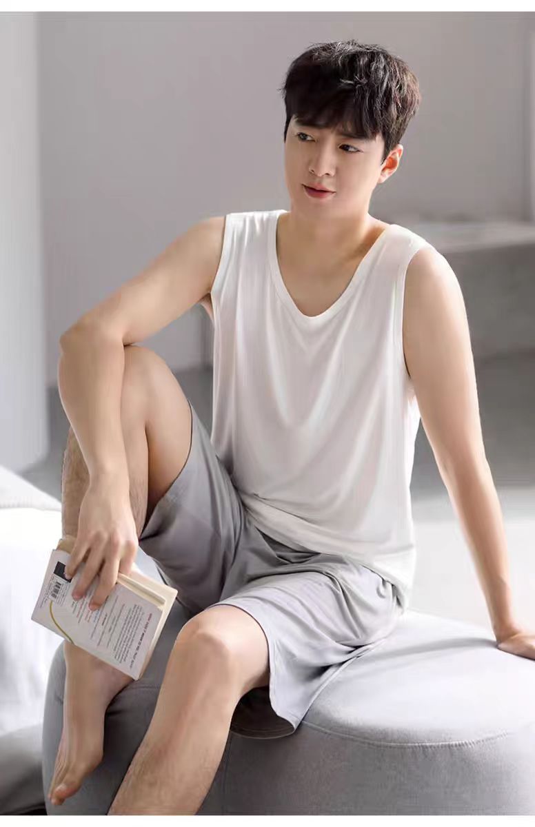 남자 여름 조끼 홈 세트 캐주얼 스포츠 파자마 반바지 면 편안한 청소년 얇은 외부 착용