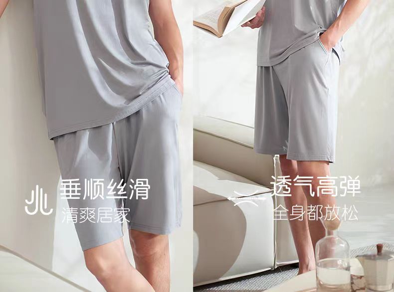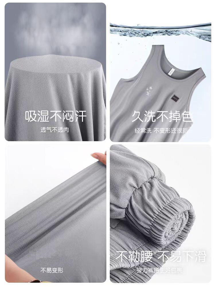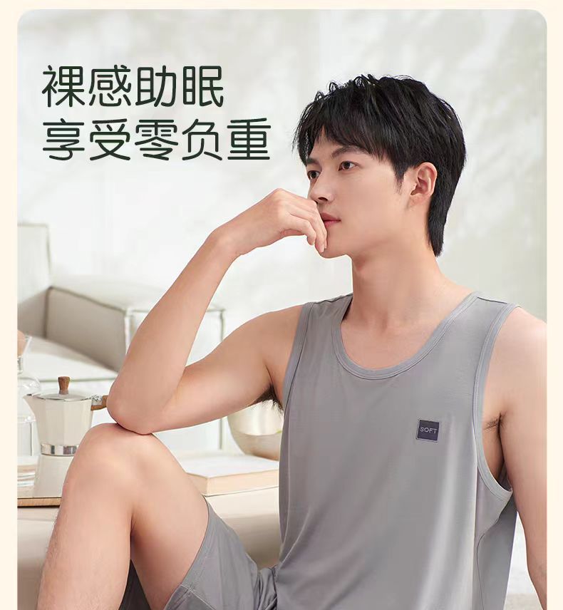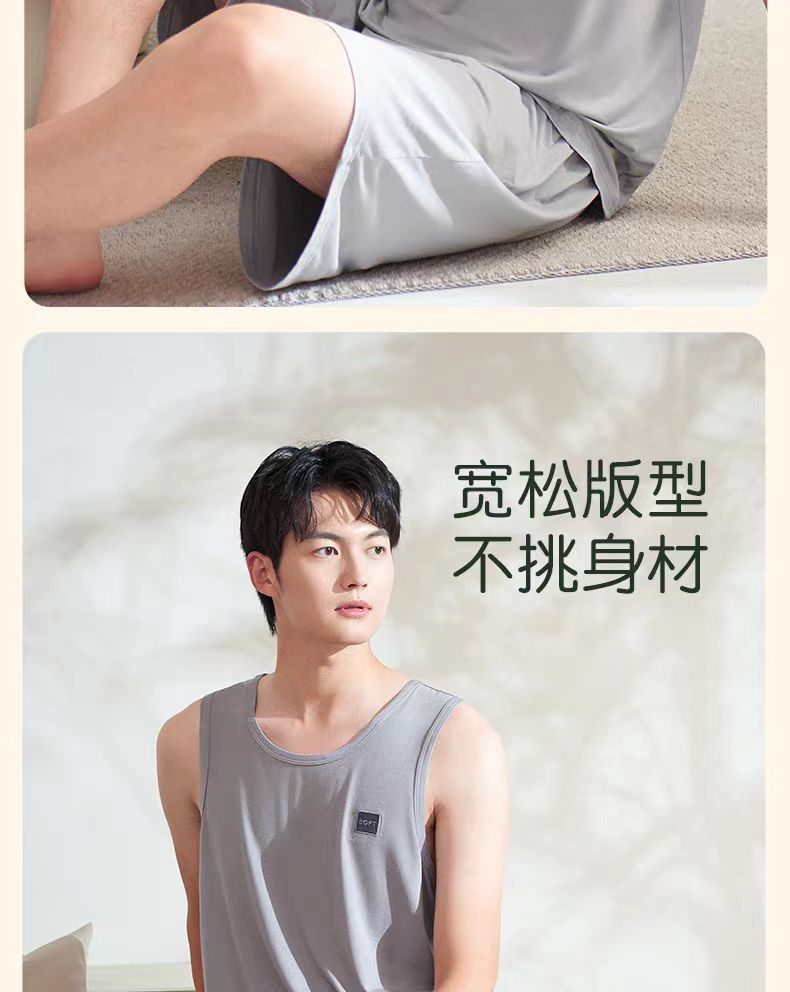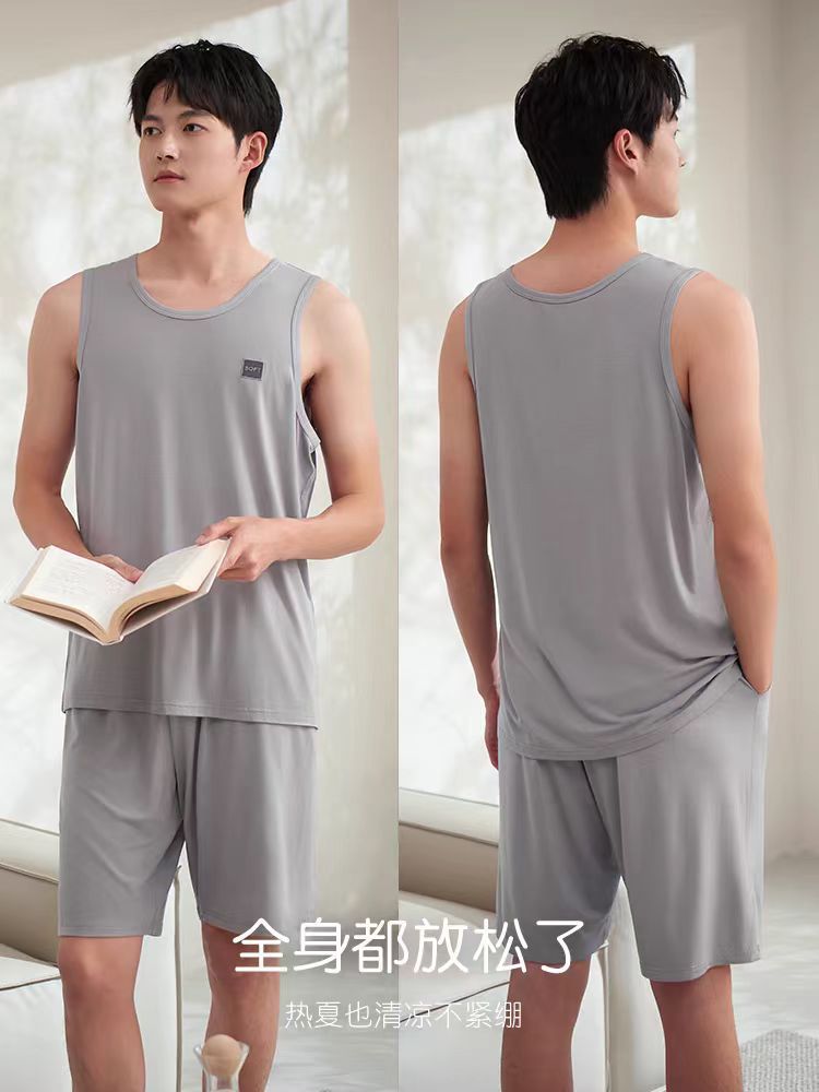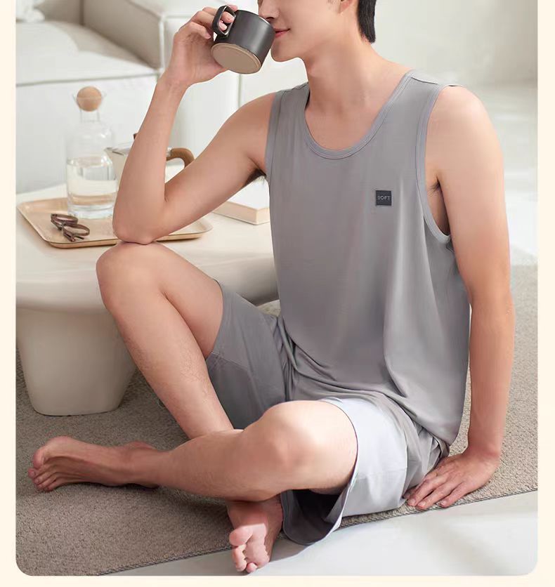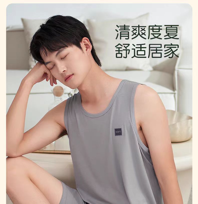 남자 여름 조끼 홈 세트 캐주얼 스포츠 파자마 반바지 면 편안한 청소년 얇은 외부 착용