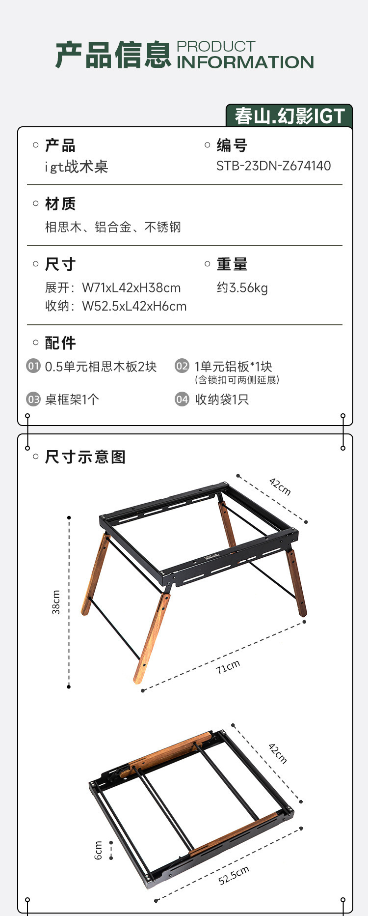 야외 캠핑 IGT 팬텀 전술 테이블 휴대용 알루미늄 접이식 피크닉 테이블 다기능 액세서리 세트스토어 가기