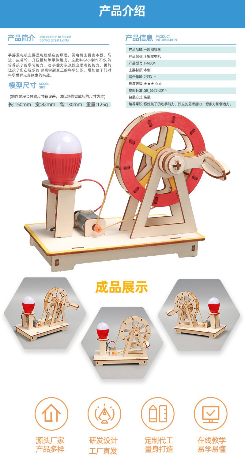 손으로 만든 발전기 기술 작은 생산 과학 실험 수제 DIY 조립 어린이 교육 보조 STEAM 교육 교실