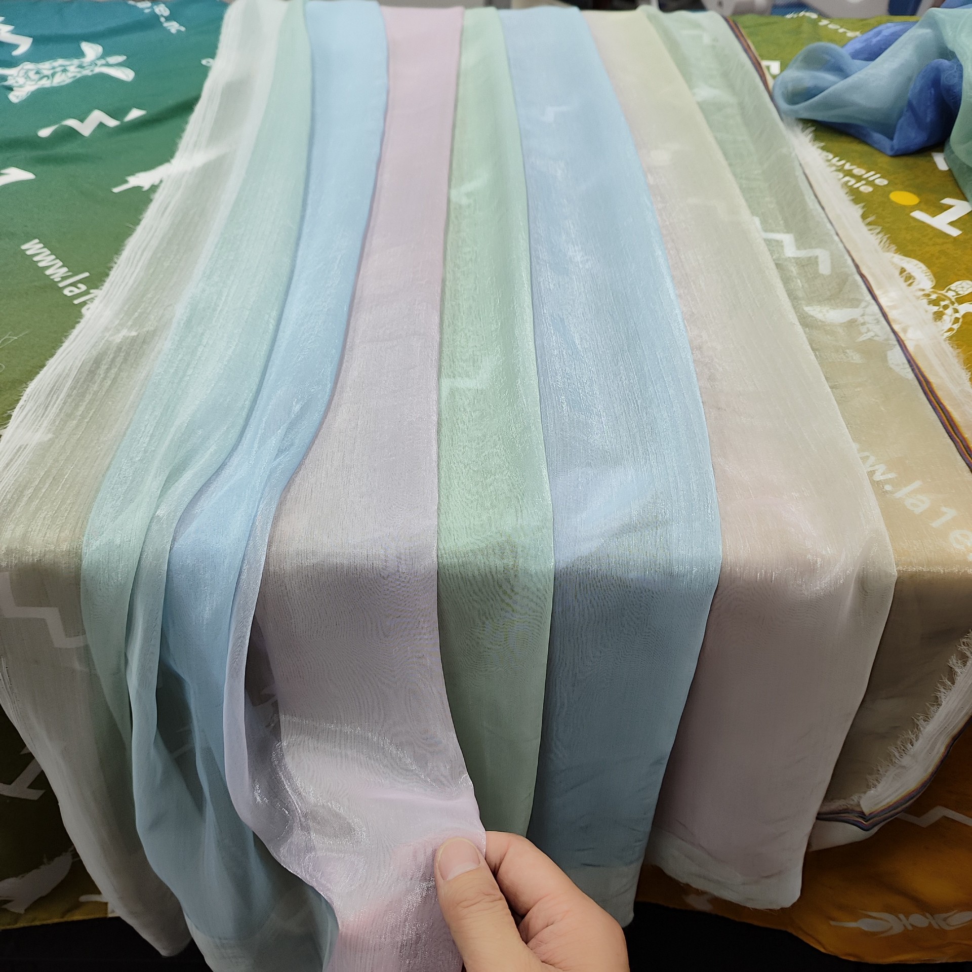 此款为30D锦丝绉渐变印花面料,底布规格及颜色可选择店内现货的颜色,有多种花型可选,请联系客服。也可按客户提供的颜色及花型定做。