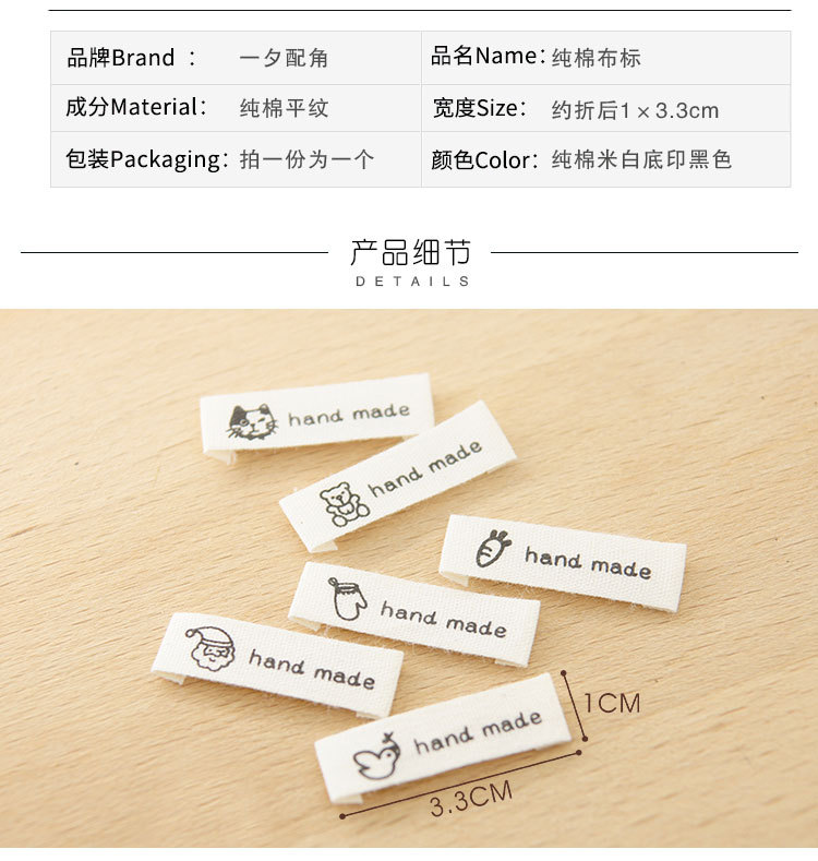 순수한면 수제 인쇄 마크 헴 검은 곰 산타 클로스 당근 장갑 고양이 새 천 라벨 액세서리스토어 가기