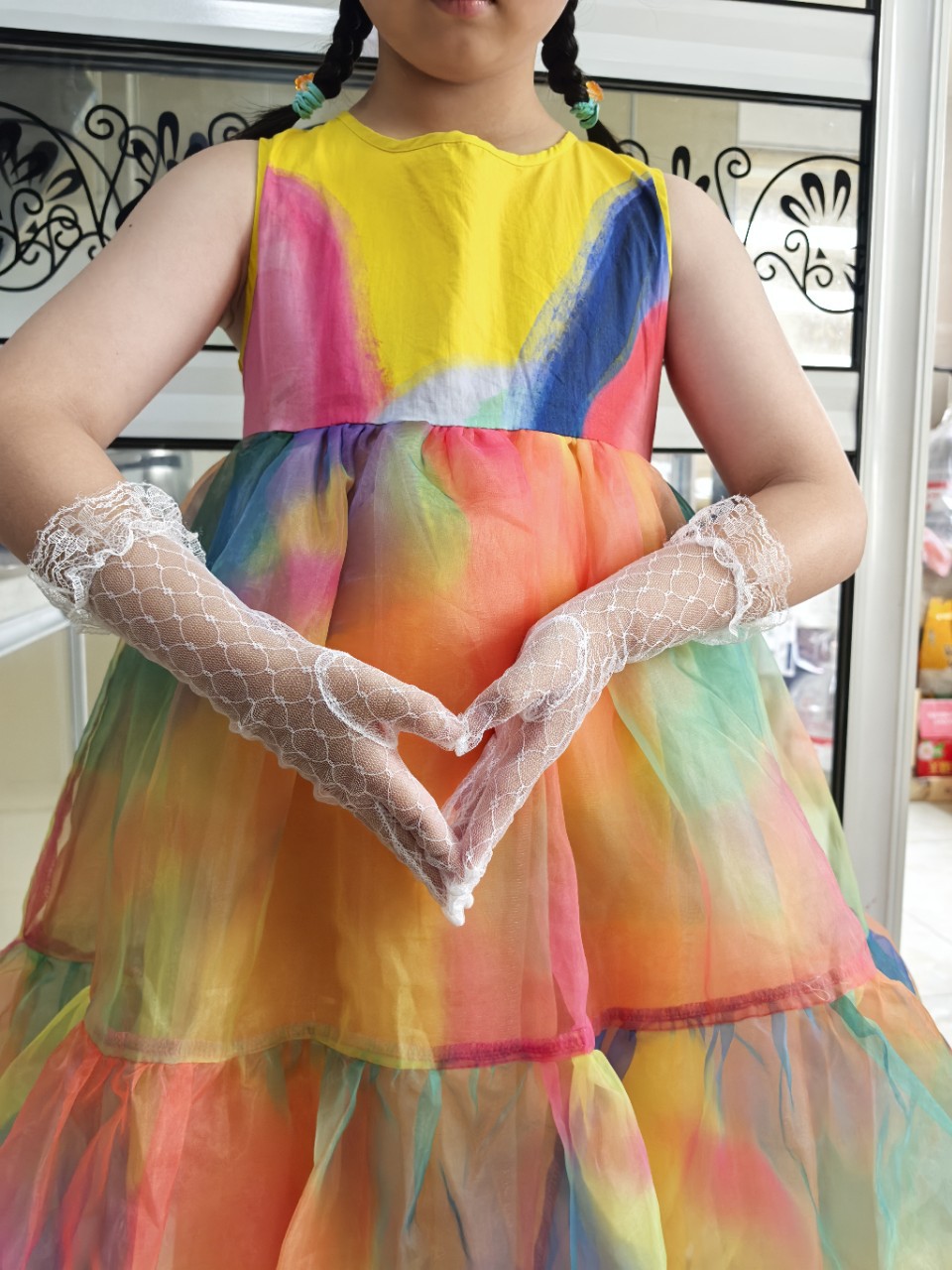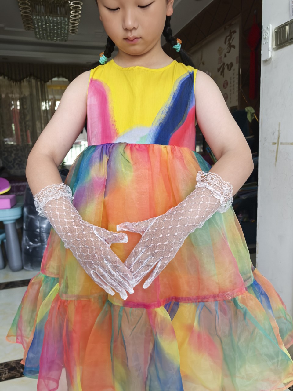 어린이용 장갑, 메쉬 공주 드레스, 한복 액세서리, 니트 레이스 드레스, 레이스 여성용 신상 여름 풀 슬리브스토어 가기