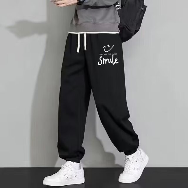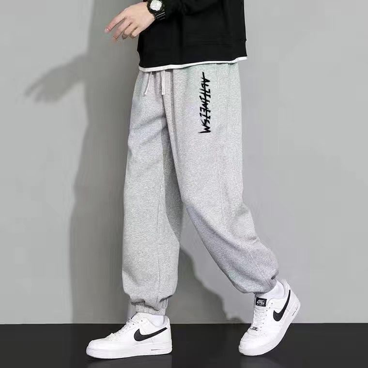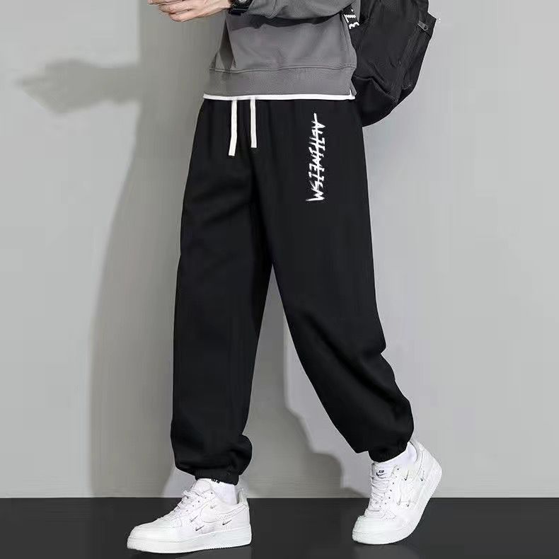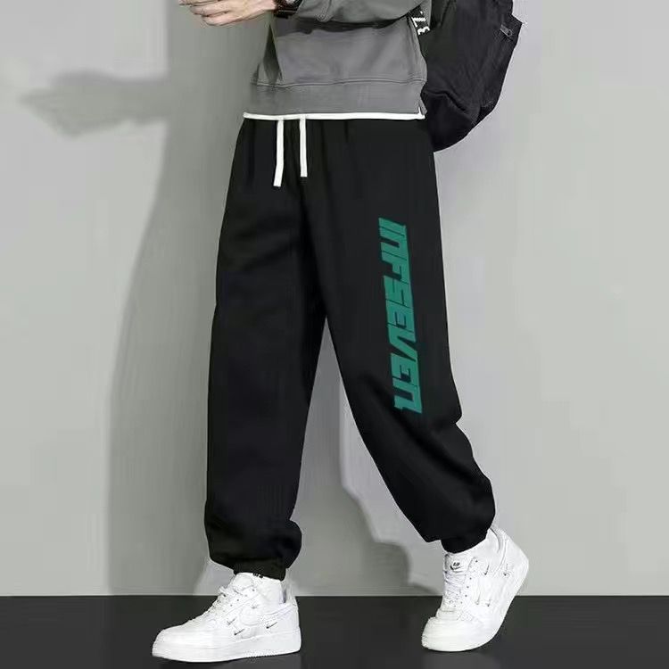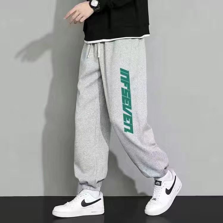 프린트 레터 팬츠 남성용 플러스 사이즈 루즈핏 트렌디 스포츠 레깅스 캐주얼 롱 팬츠 남성용 스웨트팬츠 트렌디 브랜드스토어 가기