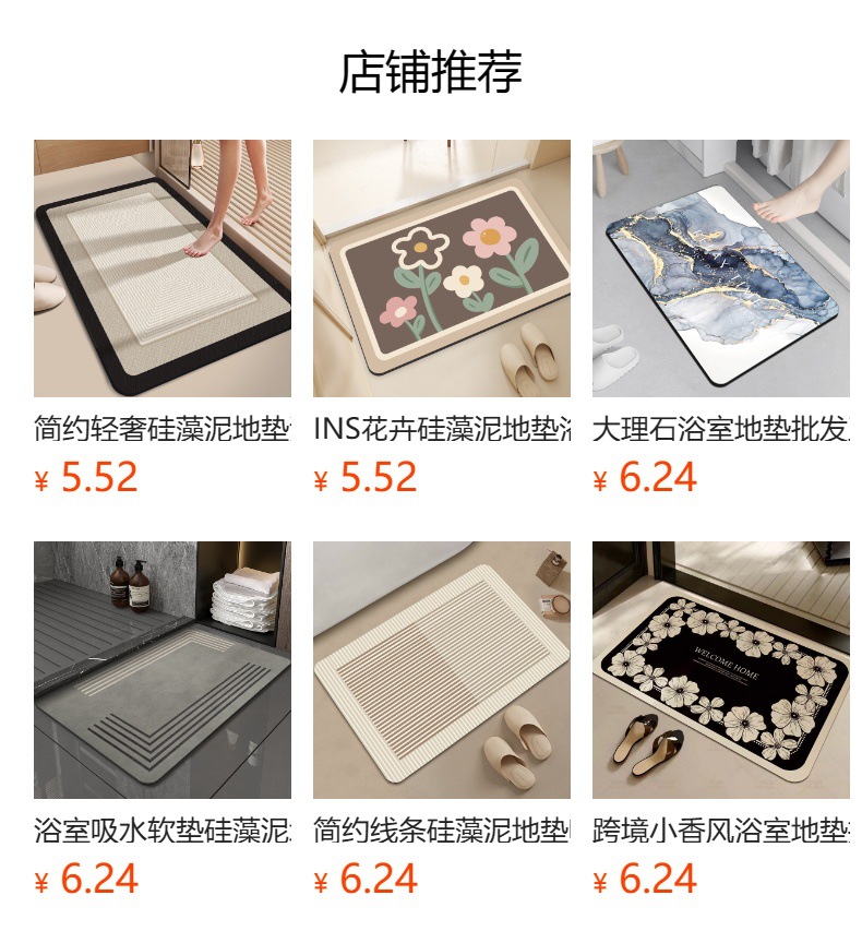 국경 도매 Diatom 진흙 매트 흡수성 먼지 방지 욕실 미끄럼 방지 매트 화장실 문 매트 발 매트스토어 가기