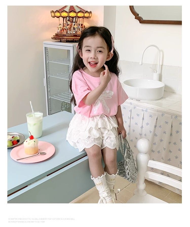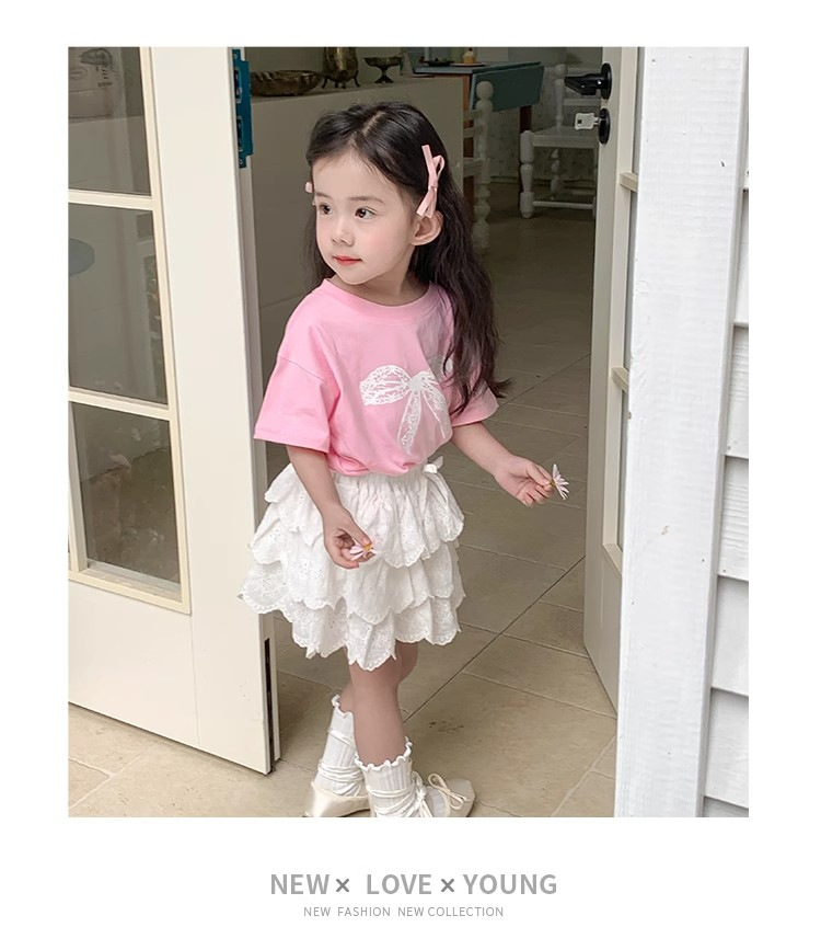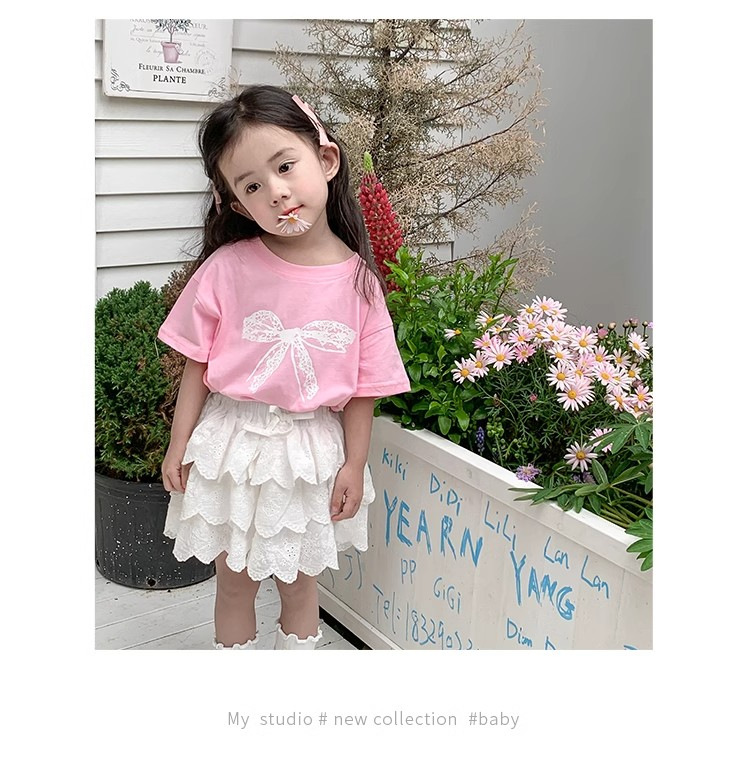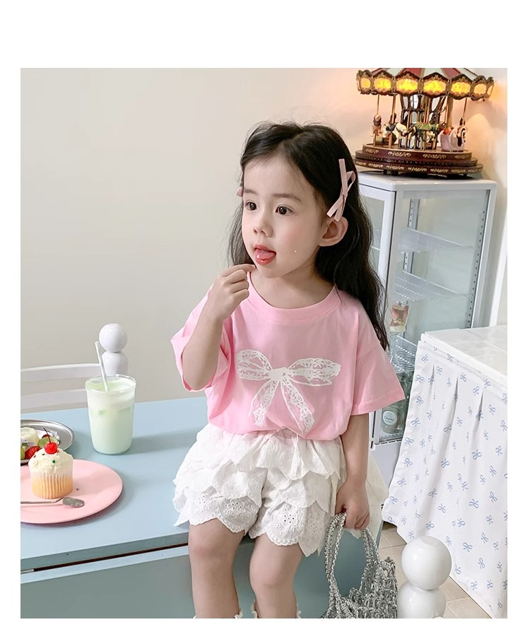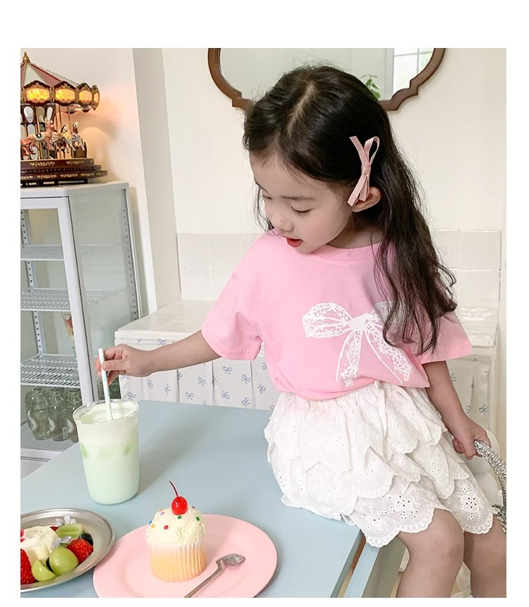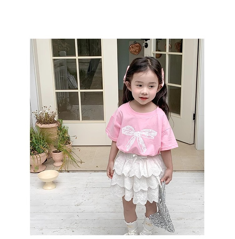 여자 반소매 티셔츠 여름 2024 년 새 어린이 한국식 레이스 활 반소매 여성 여름 탑스토어 가기